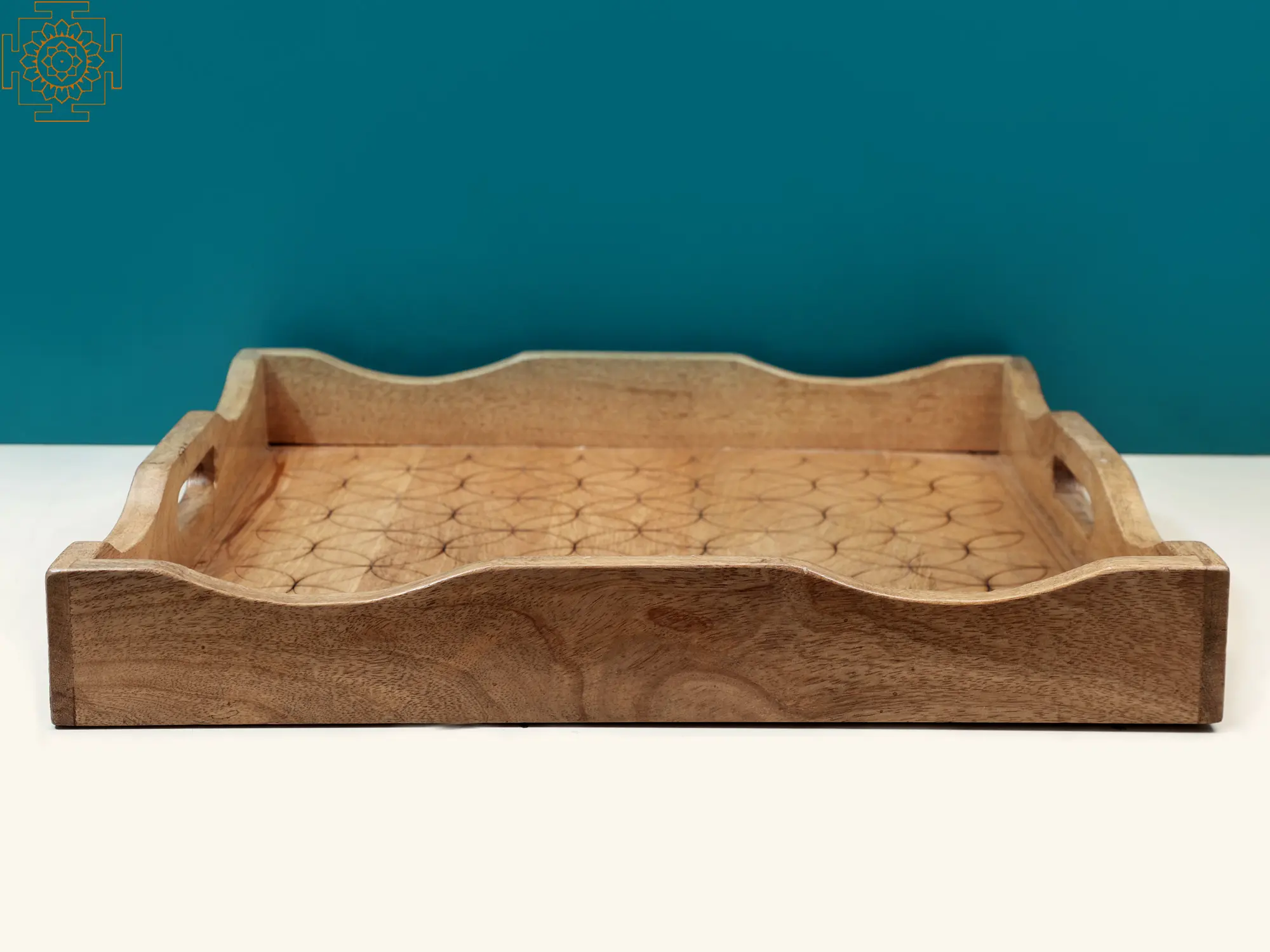 Enveloped in the warm embrace of craftsmanship, this wooden tray emerges as a tribute to artistry, each stroke of creativity etched into its surface. Adorned with intricate designs, it becomes a canvas of whispers, where the hands of a skilled artisan breathe life into the grain.