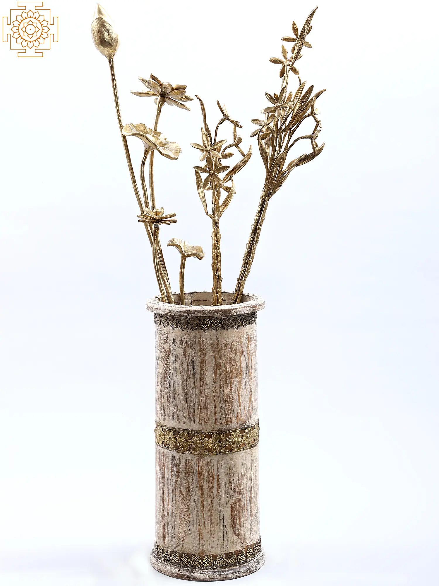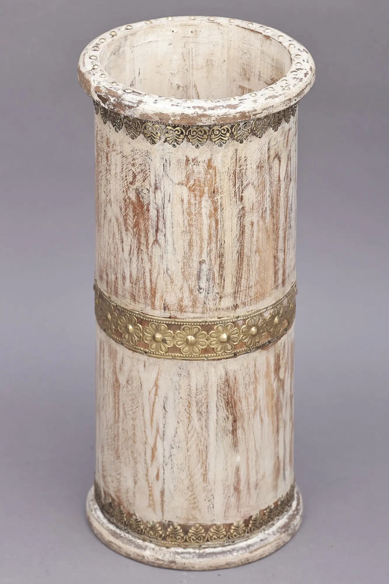 Transform your greenery into a statement with this Flower Planters, meticulously Handmade from Mango Wood. This elegant piece, with a nostalgic allure, boasts a rough white paint that imparts an enchanting old-world charm. Minimalistic in design, the planter features subtle brass embossing, particularly on the rims, adding a touch of regality. The silver finish of the brass detailing elevates the piece, making it a regal vessel for your botanical treasures. As a testament to artistry and simplicity, this planter invites nature into your space with a timeless grace, where every leaf and petal finds a canvas that echoes the beauty of restrained elegance.