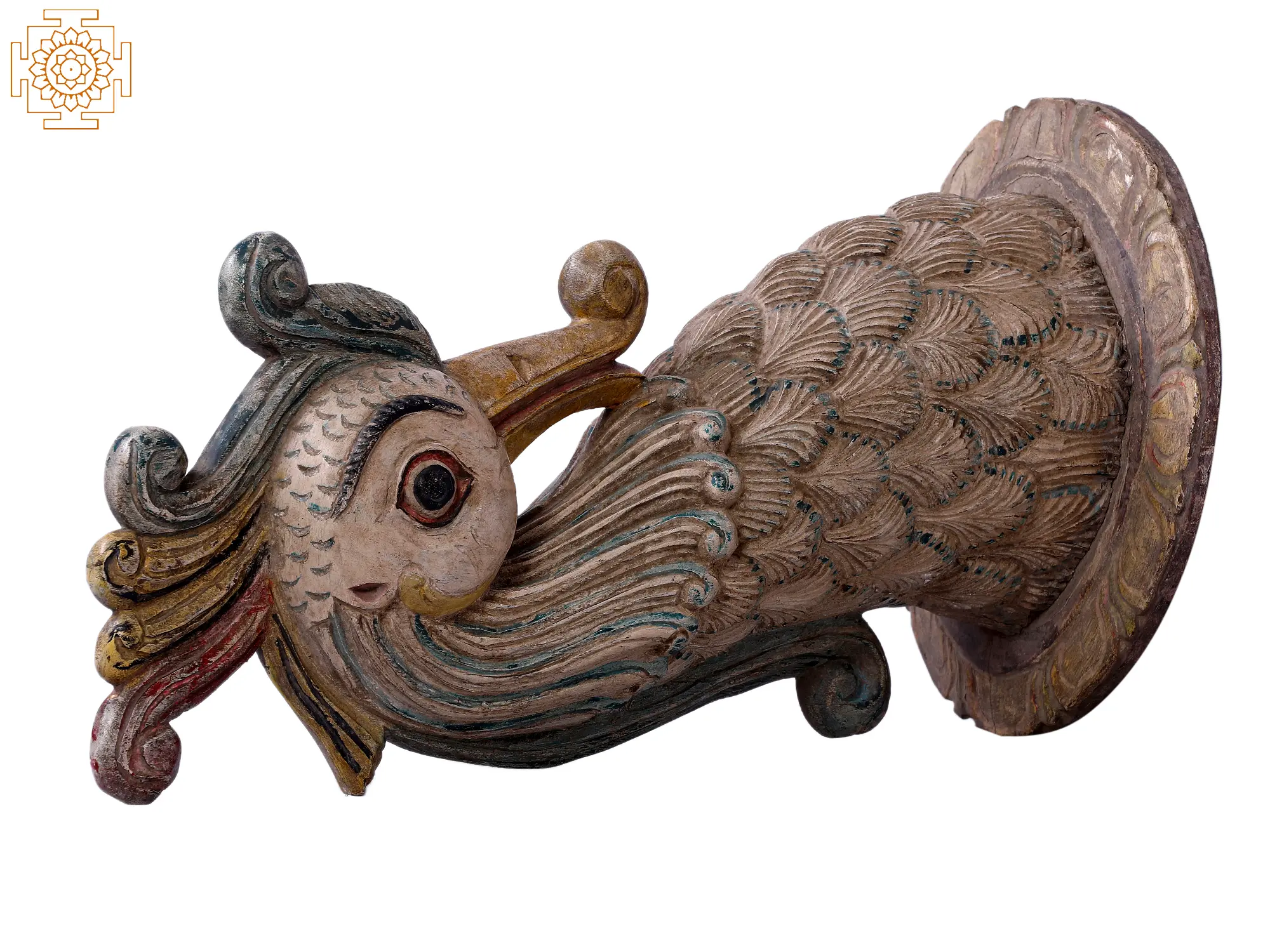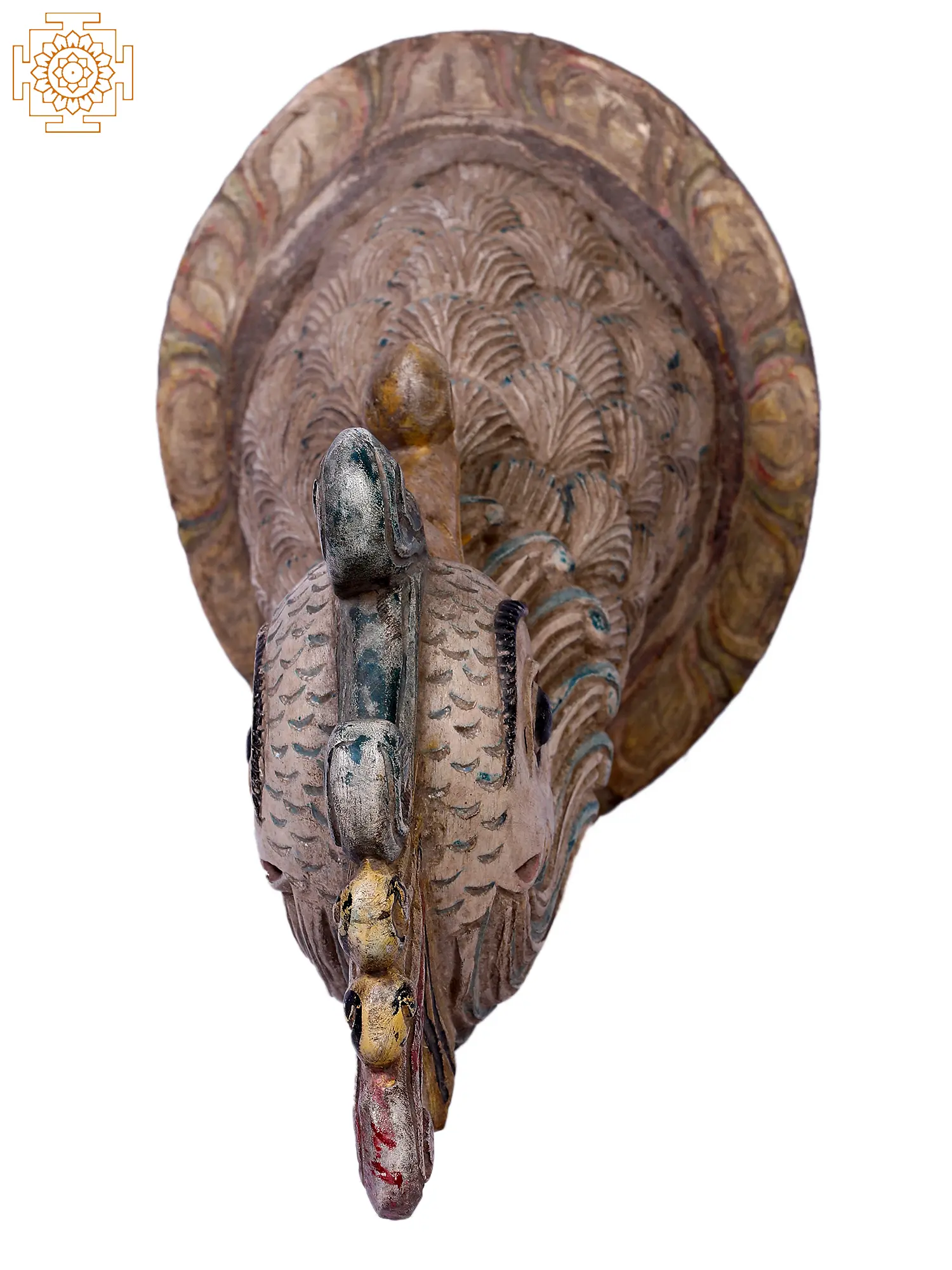 Incorporate this work of art into your living space to infuse it with the essence of Indian tradition, where the peacock stands as a beacon of immortality, resurrection, and good fortune. Sculpted from wood, this wall hanging is more than mere decor; it is an embodiment of eternal grace.