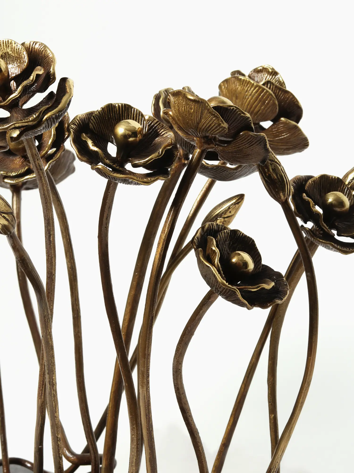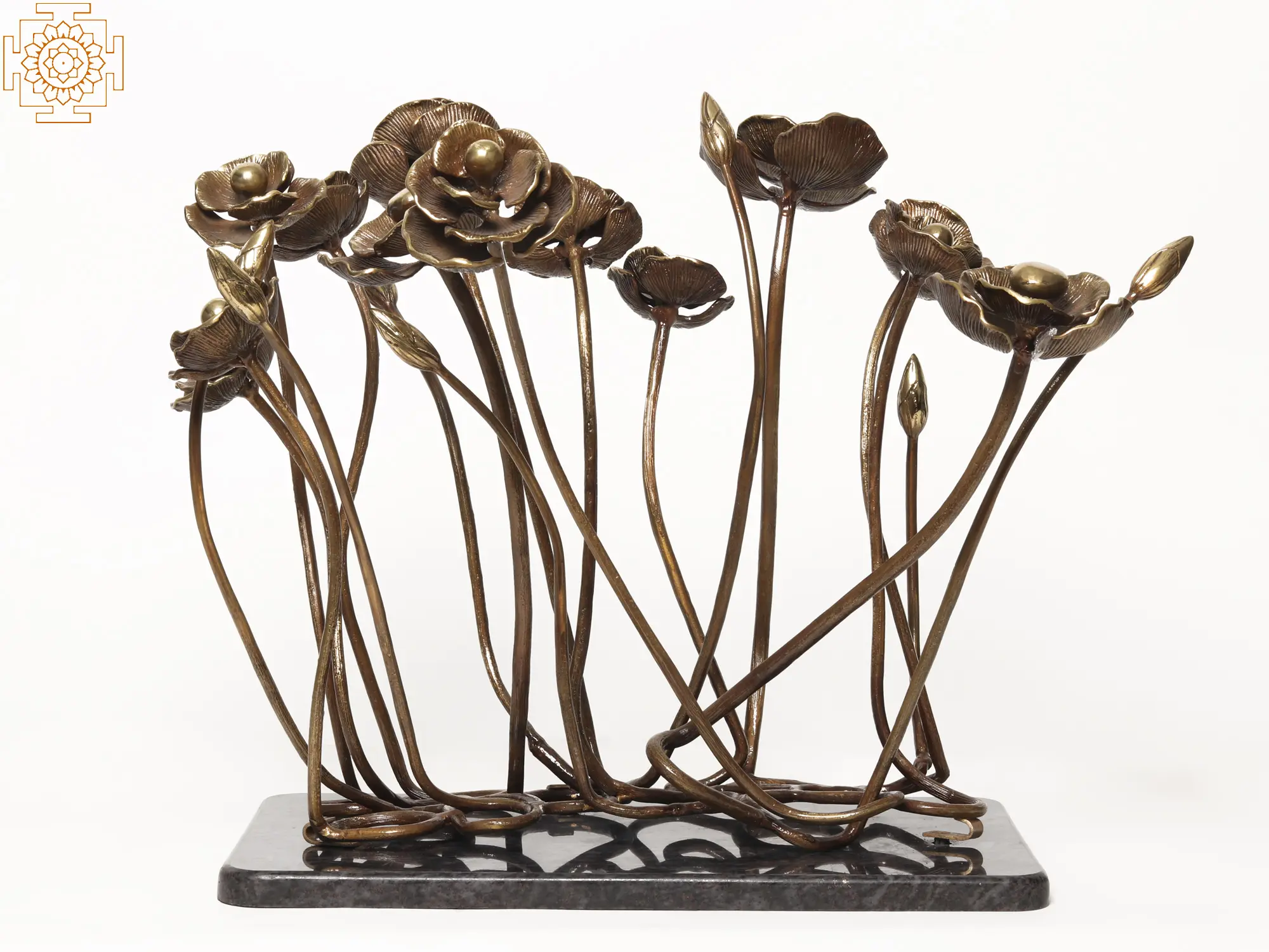 This Bunch of Flowers and Buds on a Granite Base presents a harmonious blend of elegance and uniqueness, making it an exquisite addition to any home decor seeking distinctive pieces. Crafted with meticulous detail, the brass flowers and buds showcase artistic finesse, capturing the beauty of nature in a lasting medium. The choice of a granite base not only adds a touch of sophistication but also grounds the piece with a natural, durable foundation.
