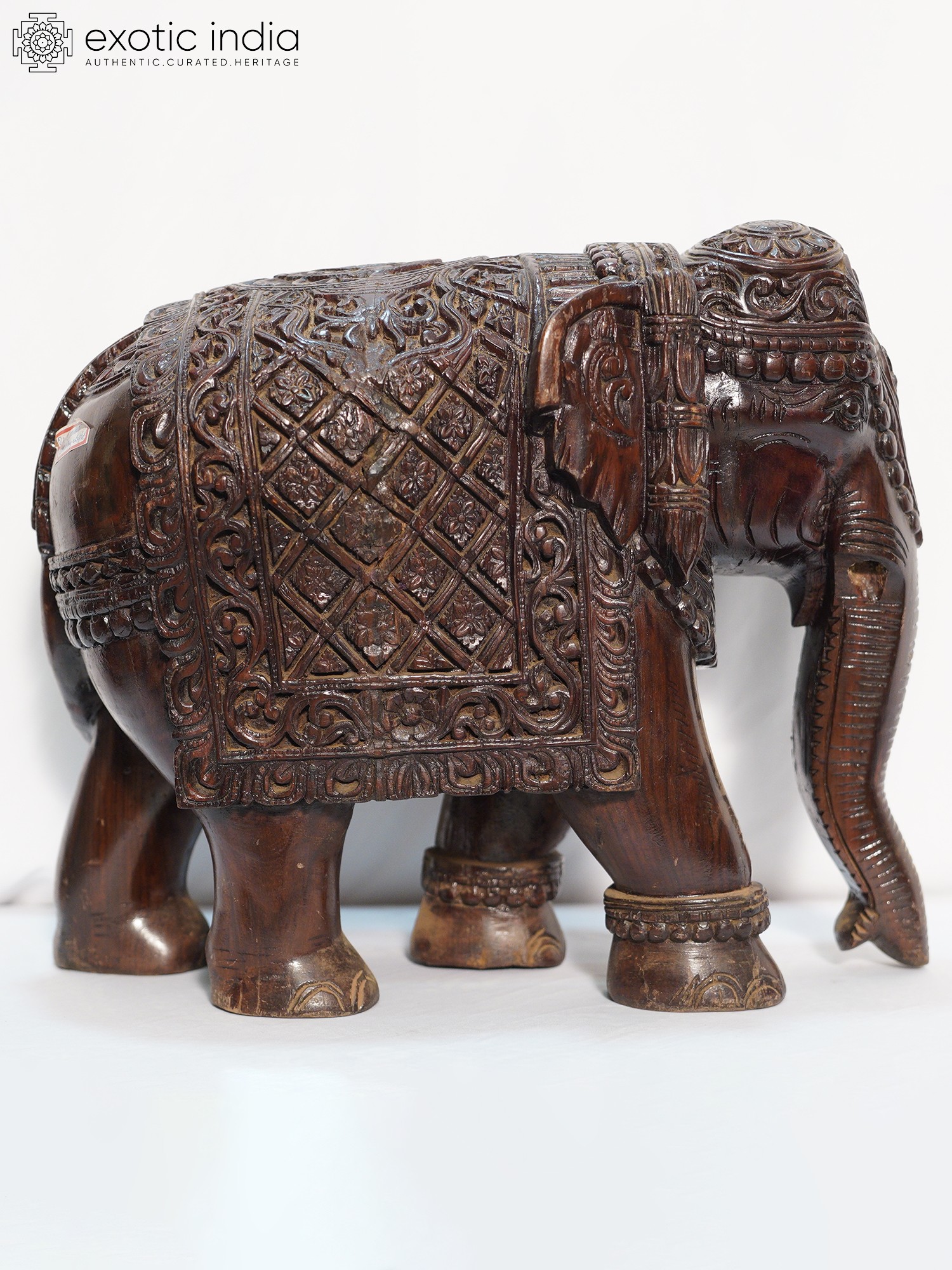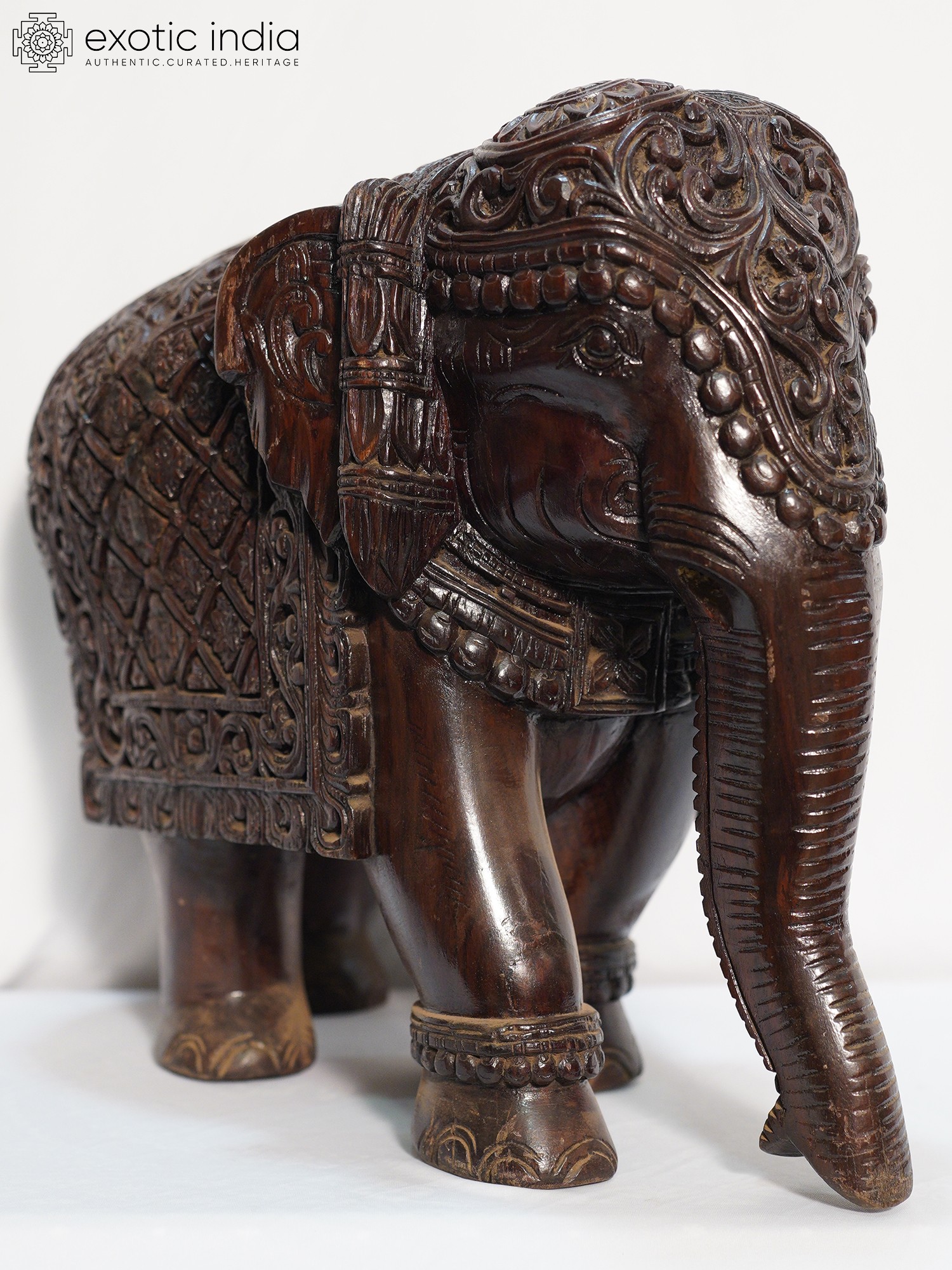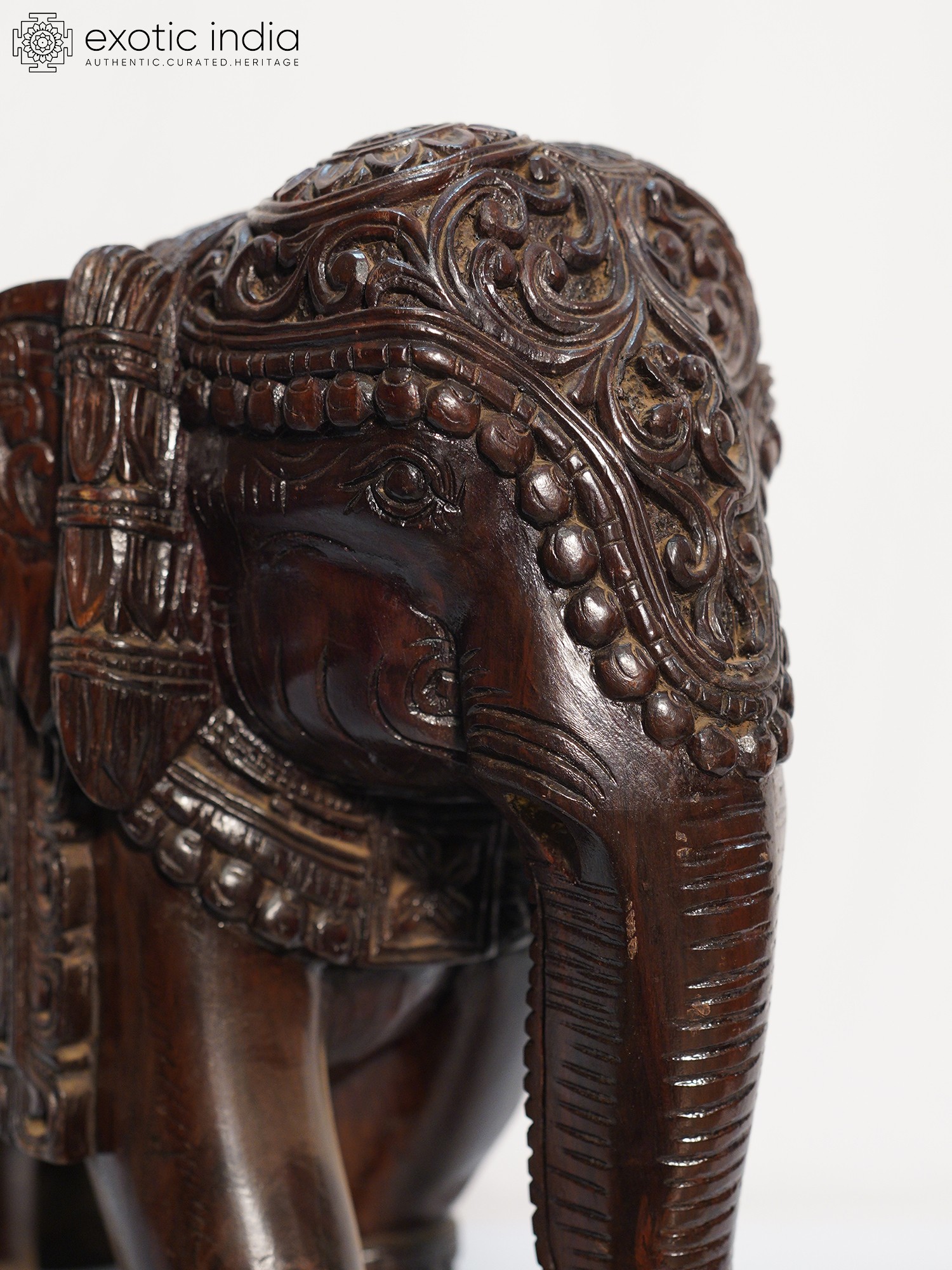 17" Elephant Statue With Golden Inlay Work | Handmade Rosewood Figurine