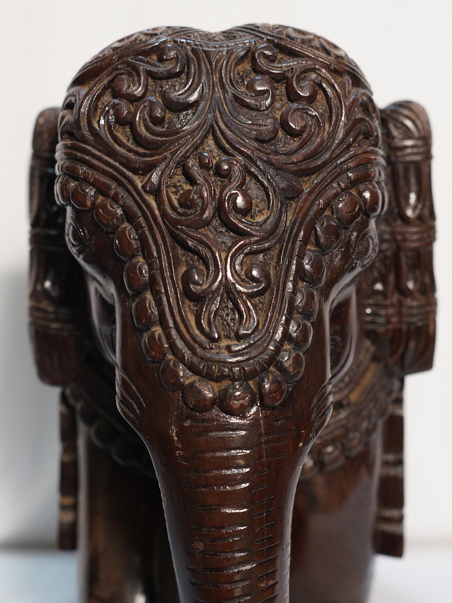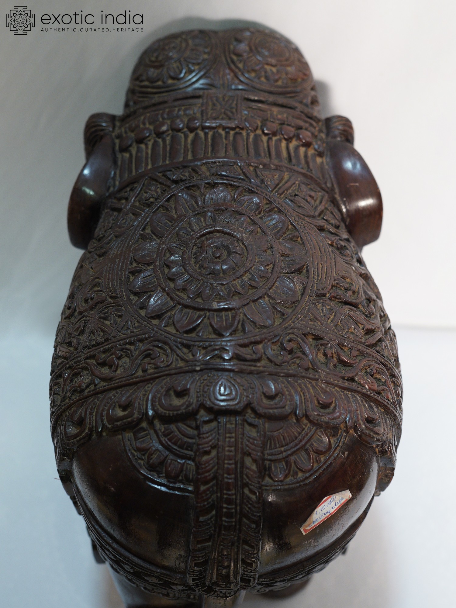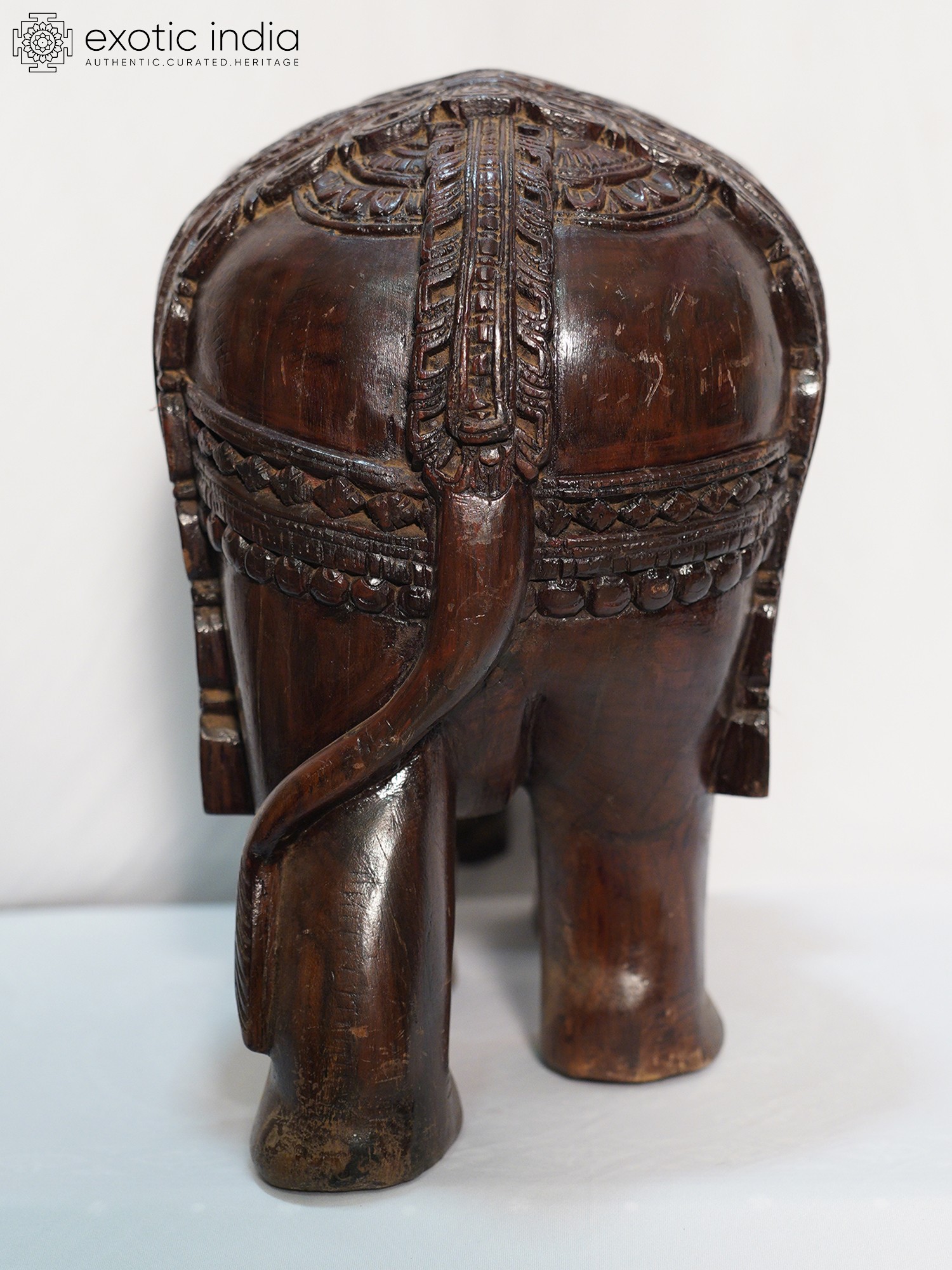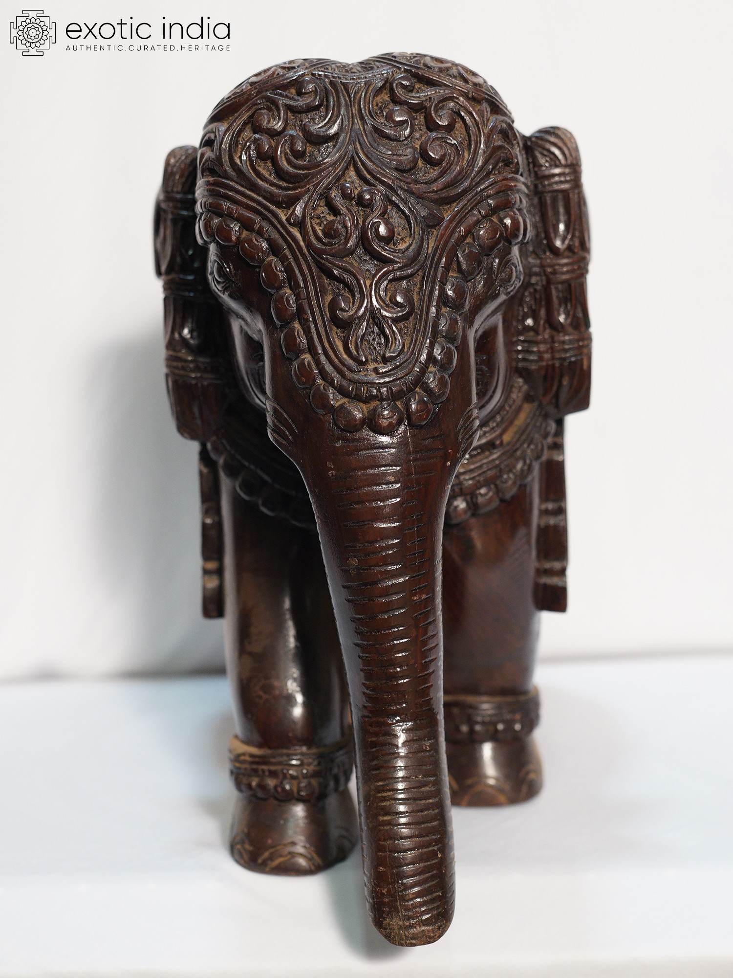 17" Elephant Statue With Golden Inlay Work | Handmade Rosewood Figurine
