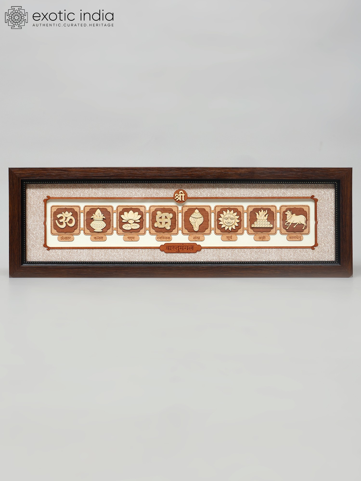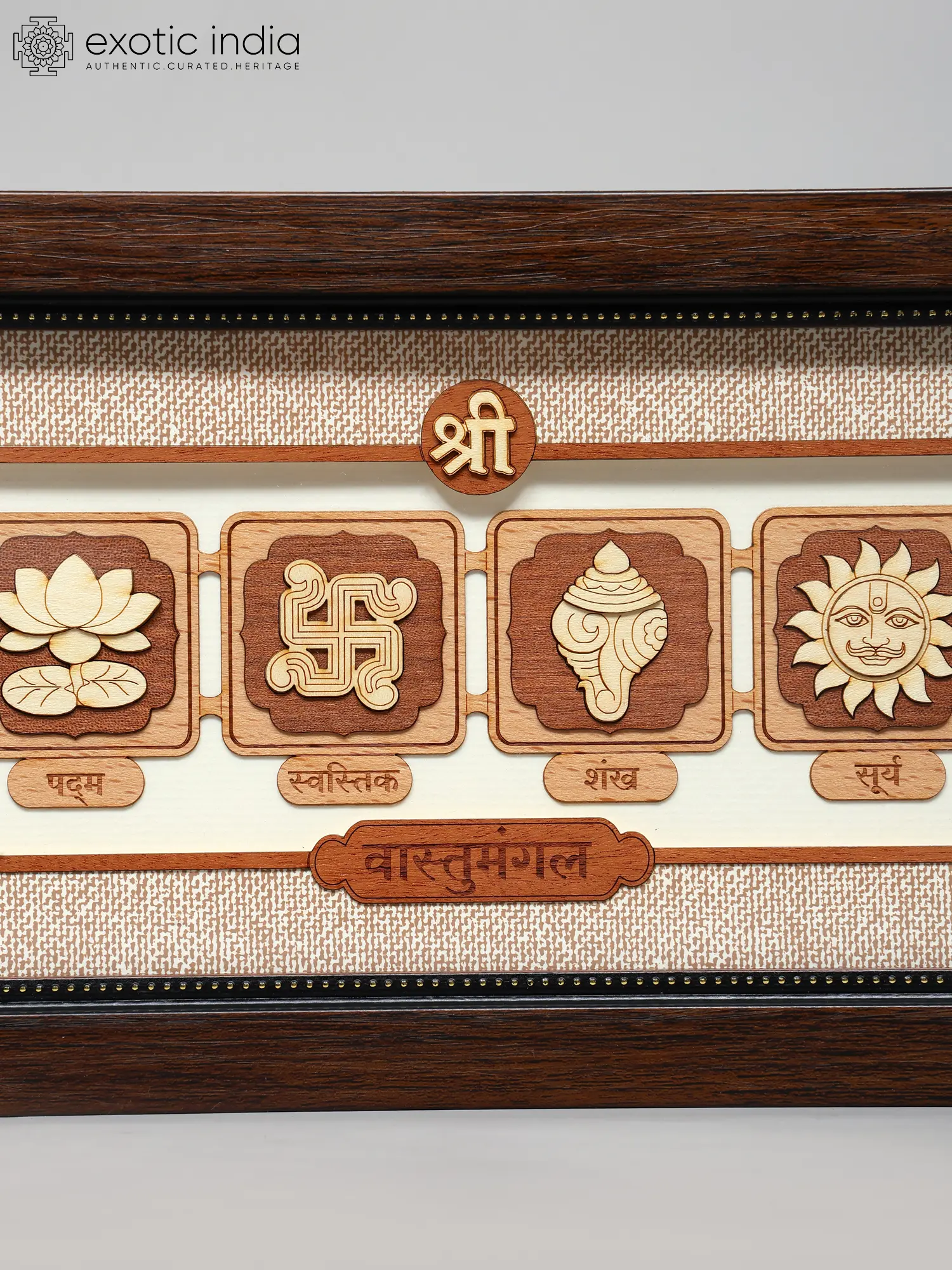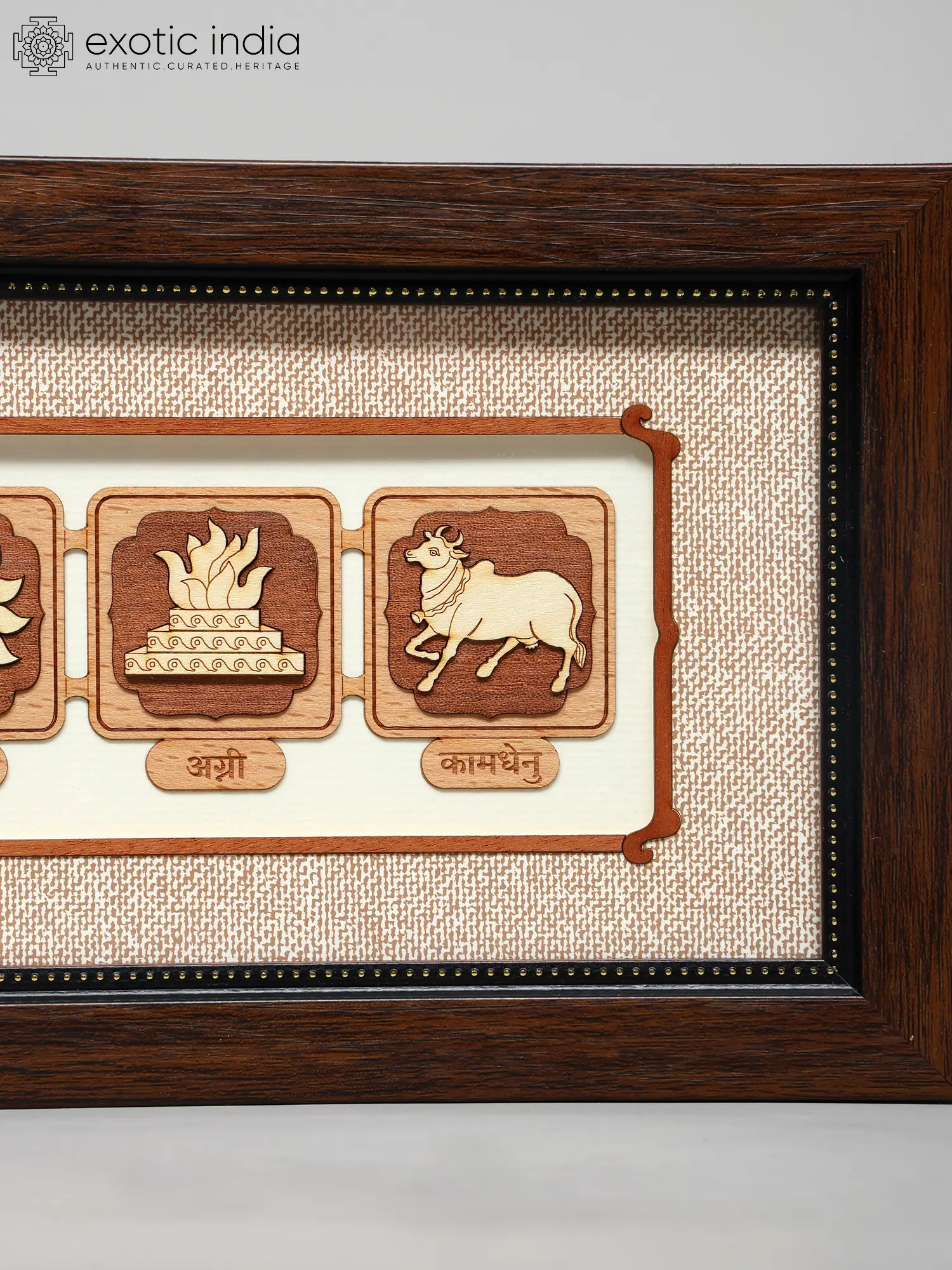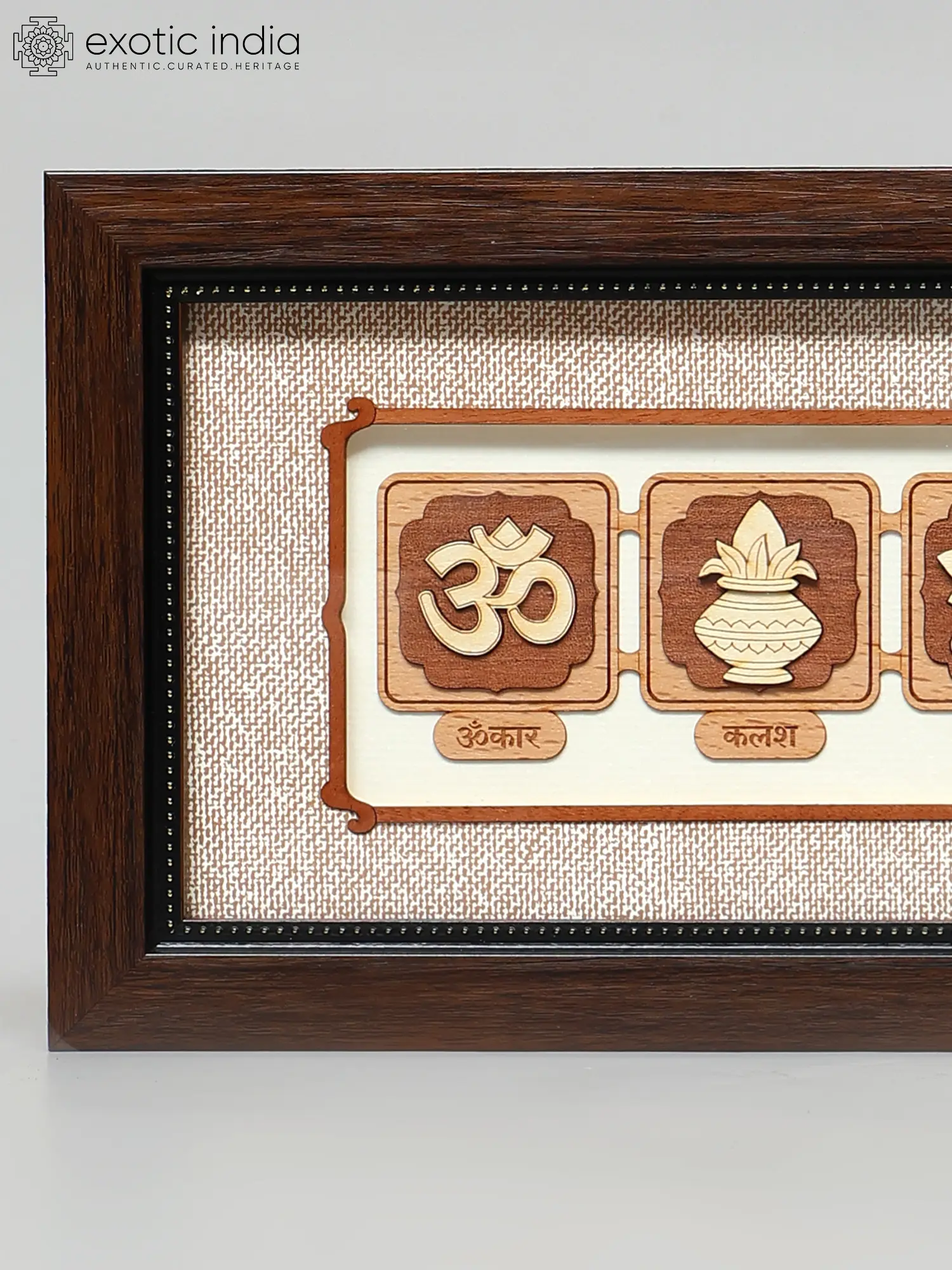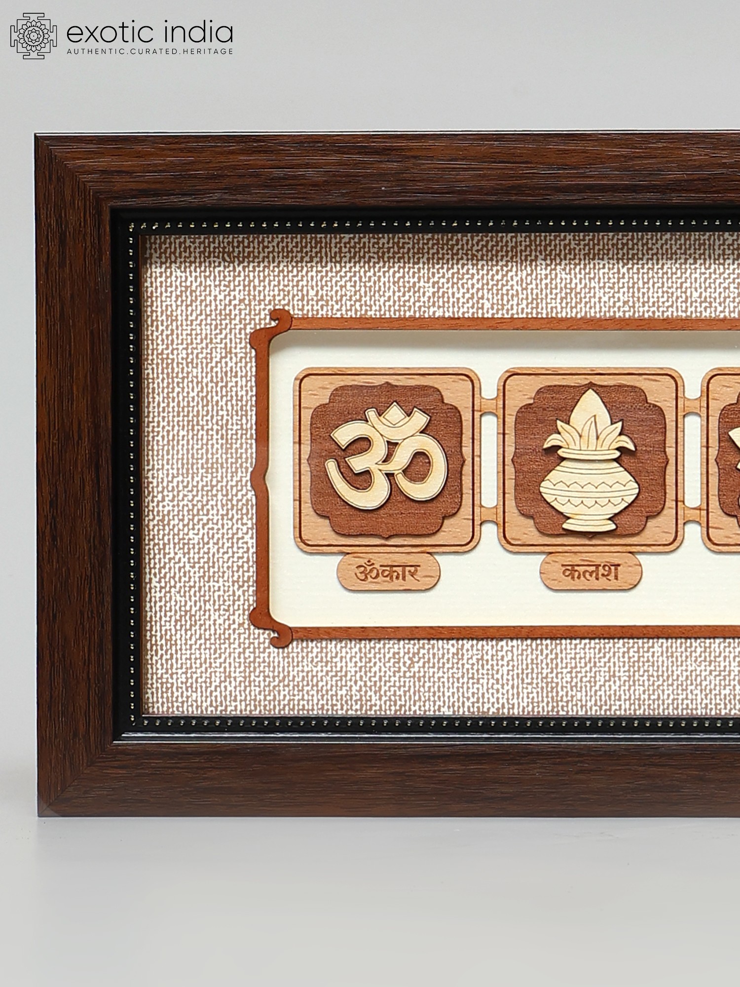 Blessing Lord Ganesha with Auspicious Hindu Symbols | Wood Carved Frame | Wall Hanging