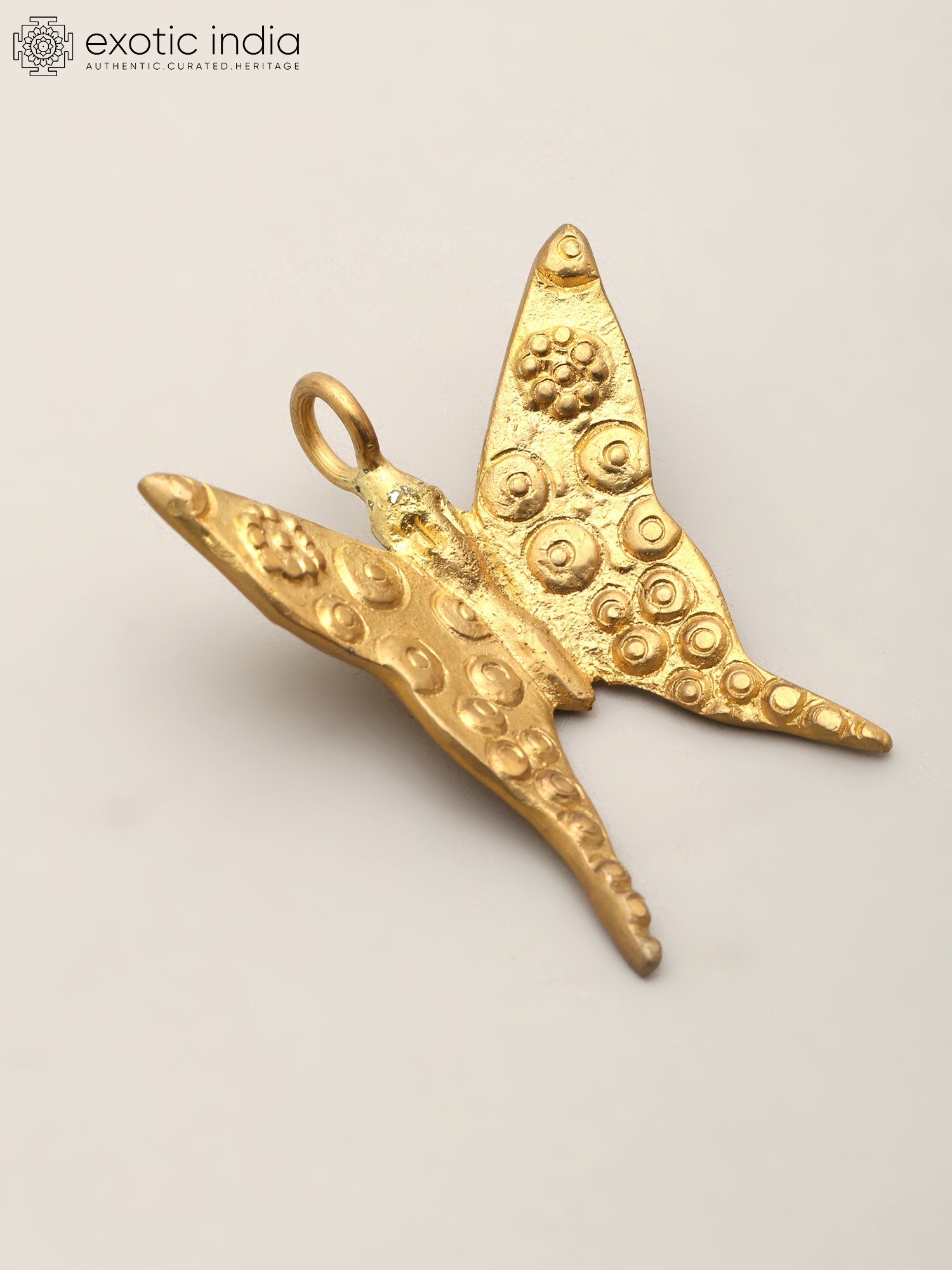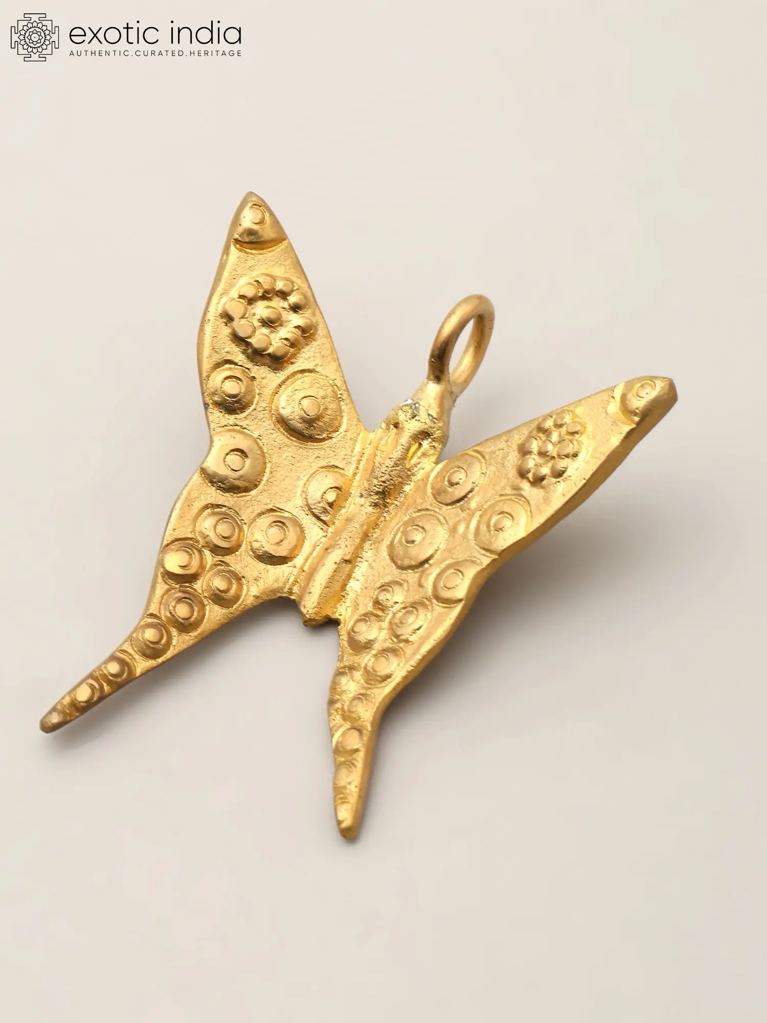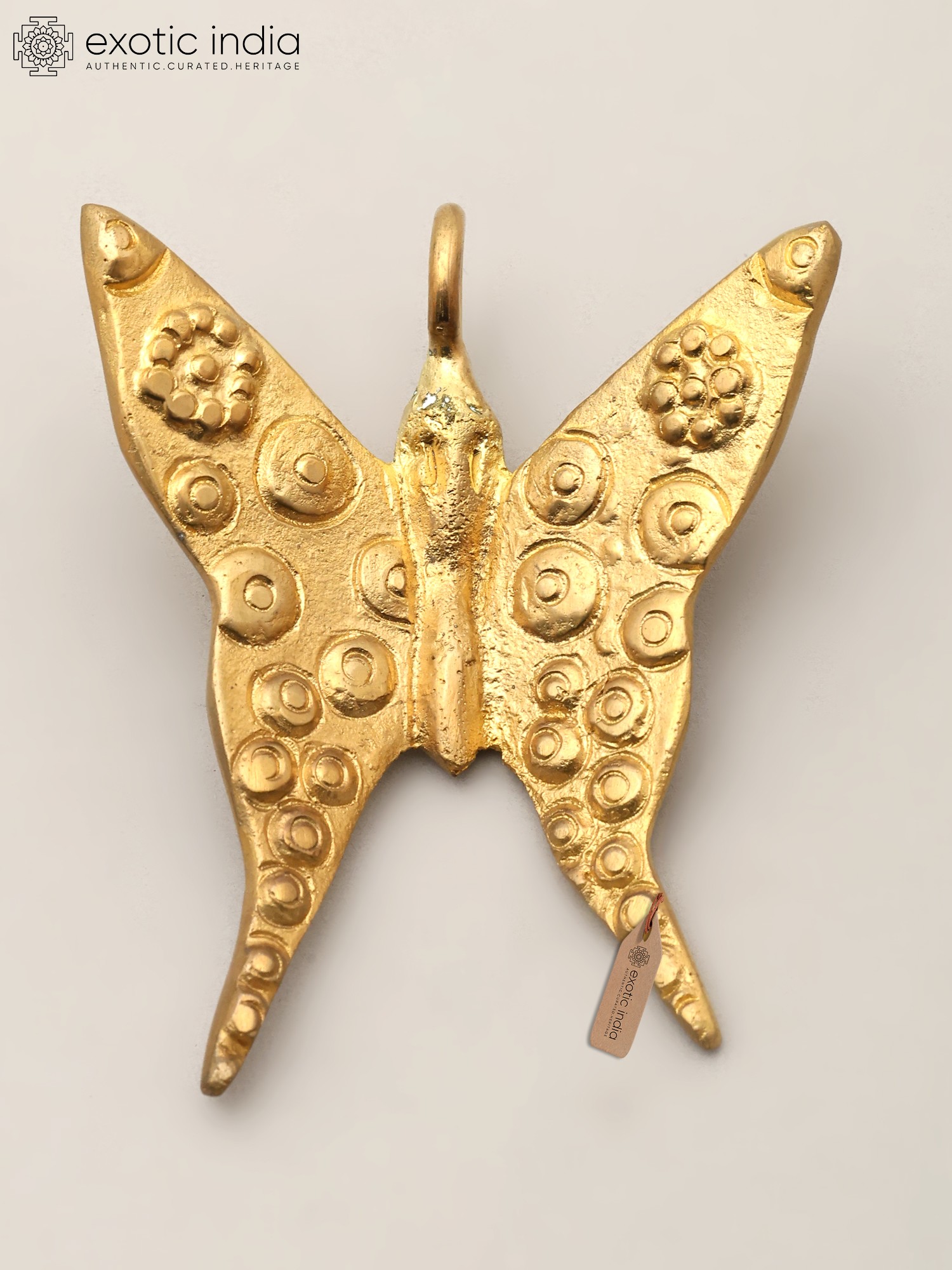 The generous 2.7-inch height and 2.5-inch width create a commanding yet delicate presence. Its wings are adorned with a symphony of raised circular patterns and charming floral motifs, each one thoughtfully placed to mimic the intricate markings found on its living counterpart. The rich brass hue, with its inherent warmth and depth, further enhances its visual appeal, catching the light and casting subtle shadows.