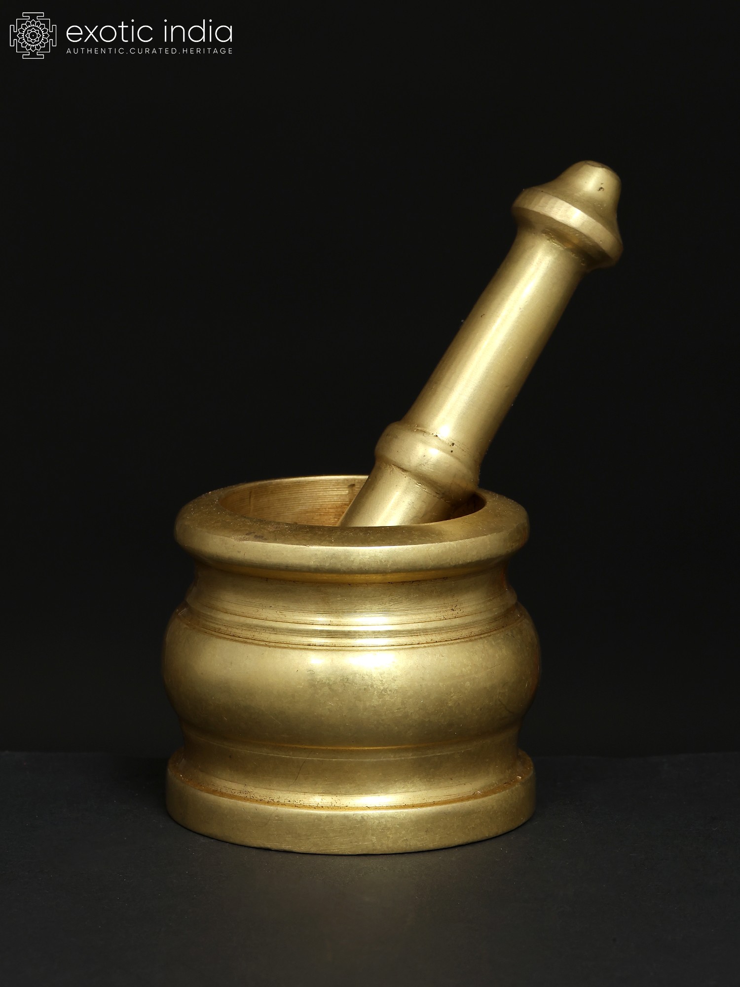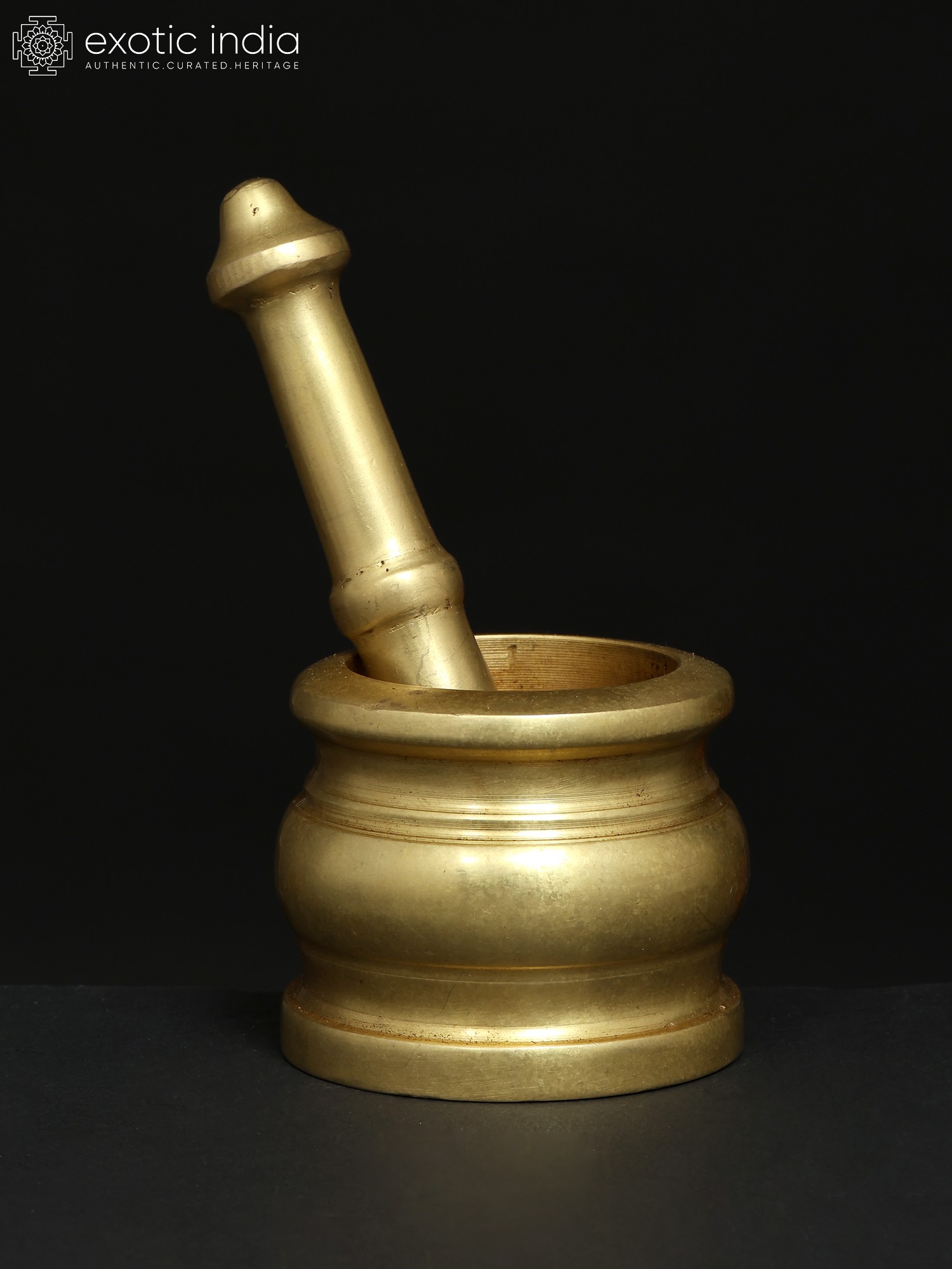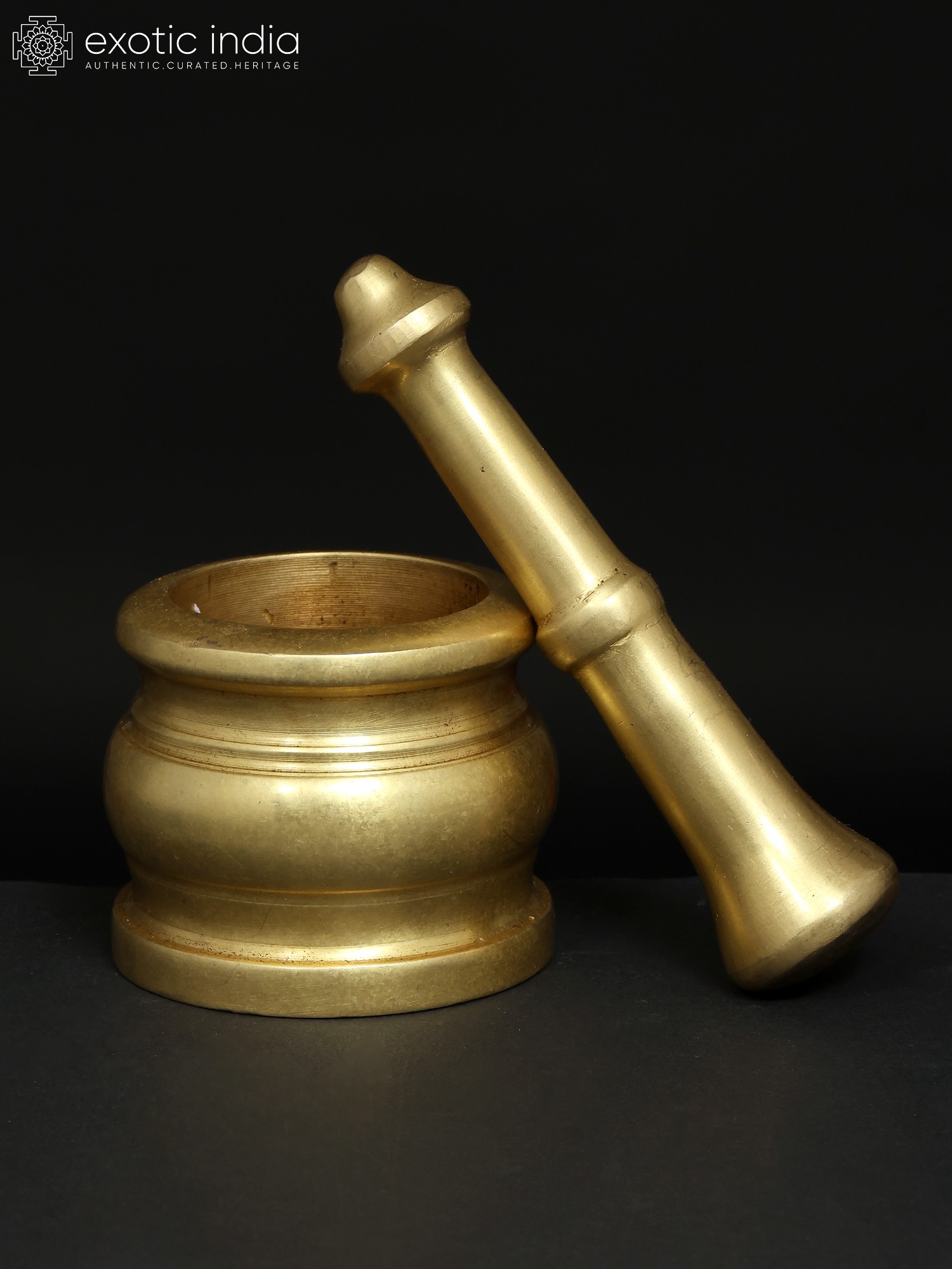 This small mortar and pestle, crafted from brass, holds immense significance in both daily life and the ancient practice of Ayurveda. In everyday cooking, it plays a vital role in grinding and blending spices, herbs, and condiments, enhancing the flavors of countless dishes. Beyond the kitchen, it's a symbol of tradition and heritage, connecting generations through the art of food preparation.