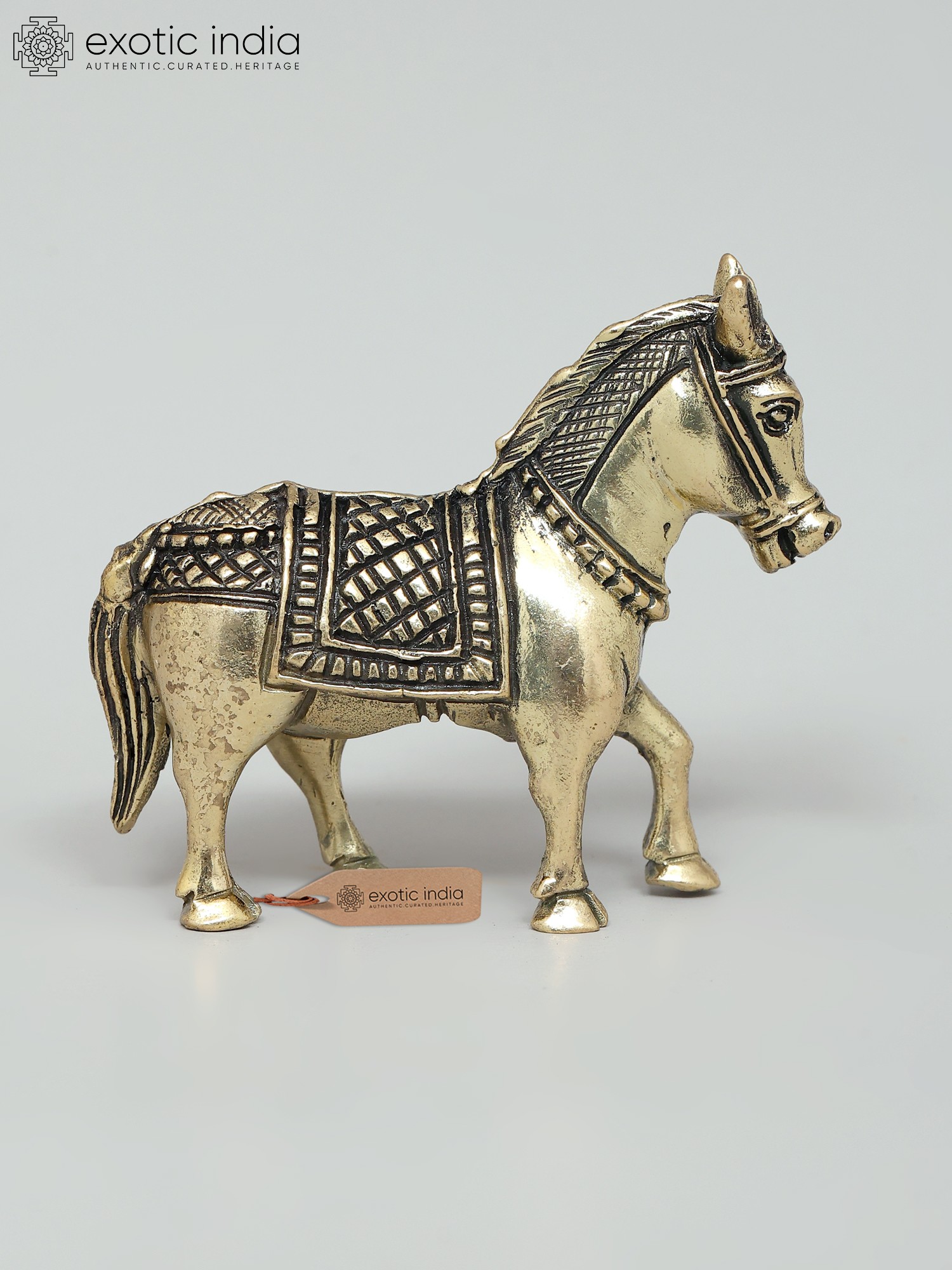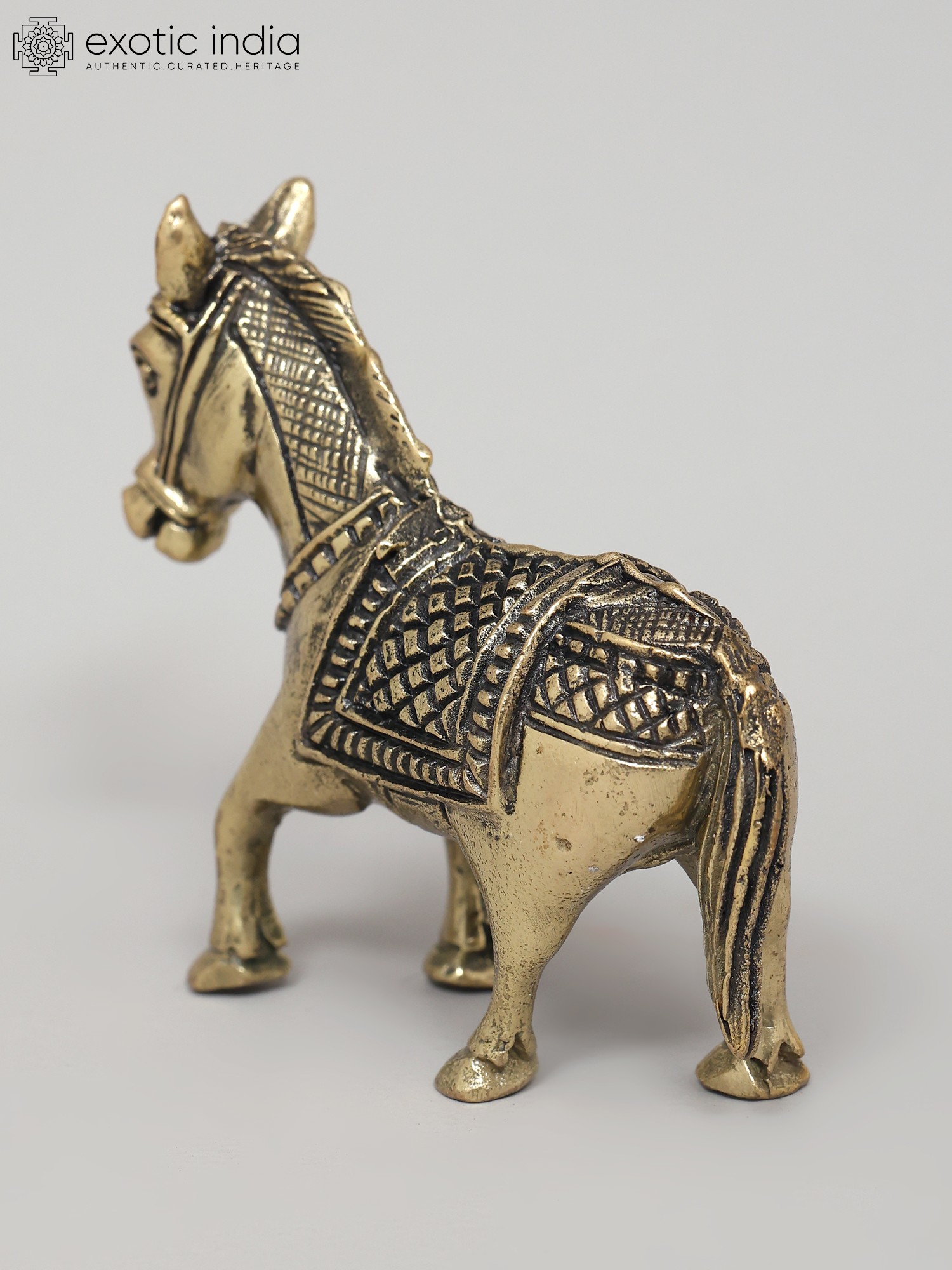 4'' Small Horse Standing On Two Legs | Gold-Plated Brass