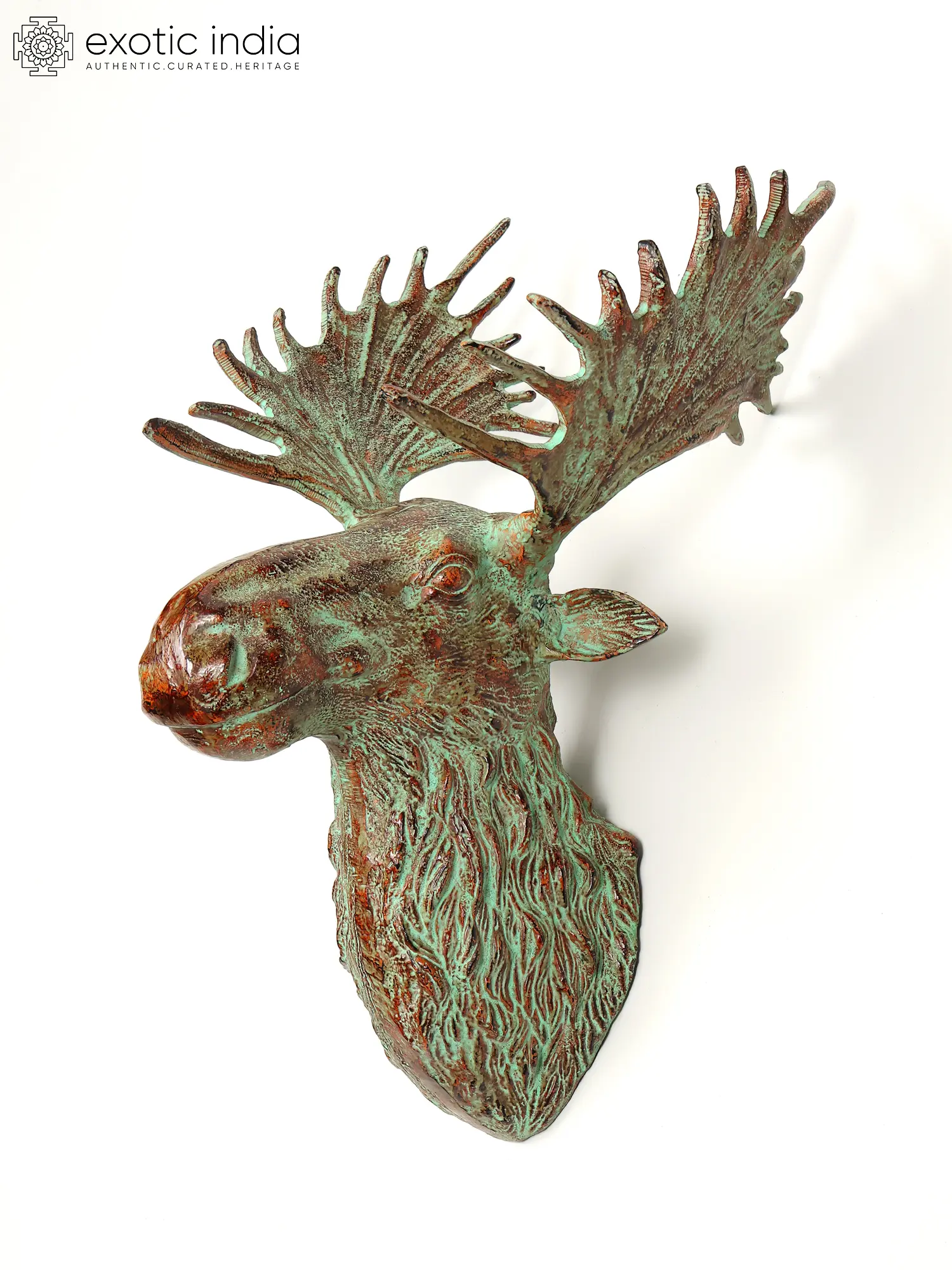 Bring the charm of the wilderness into your home with this exquisite 20" brass moose head wall hanging. Handcrafted with meticulous detail, this stunning piece is more than just a decoration; it's a statement. The rich, earthy tones of the brass, accented with a beautiful patina of greens and browns, create a captivating, antique-inspired look that will be the focal point of any room. Its imposing size commands attention, adding a touch of rustic elegance to your living space. This moose head is the perfect blend of rugged charm and sophisticated design, ideal for those who appreciate unique and high-quality home décor.