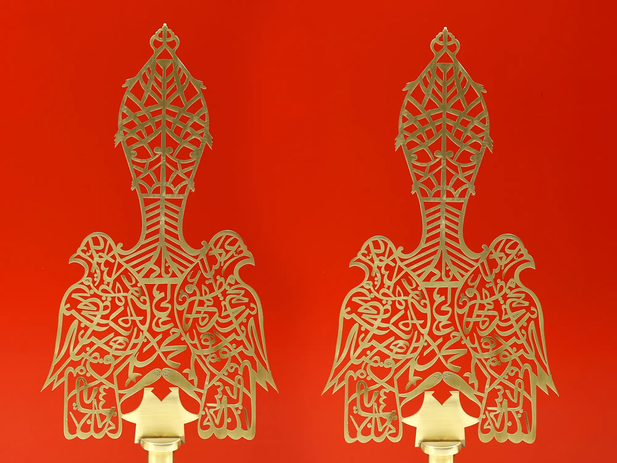 34" Brass Deccan Engraved Alam (Pair) | Handmade