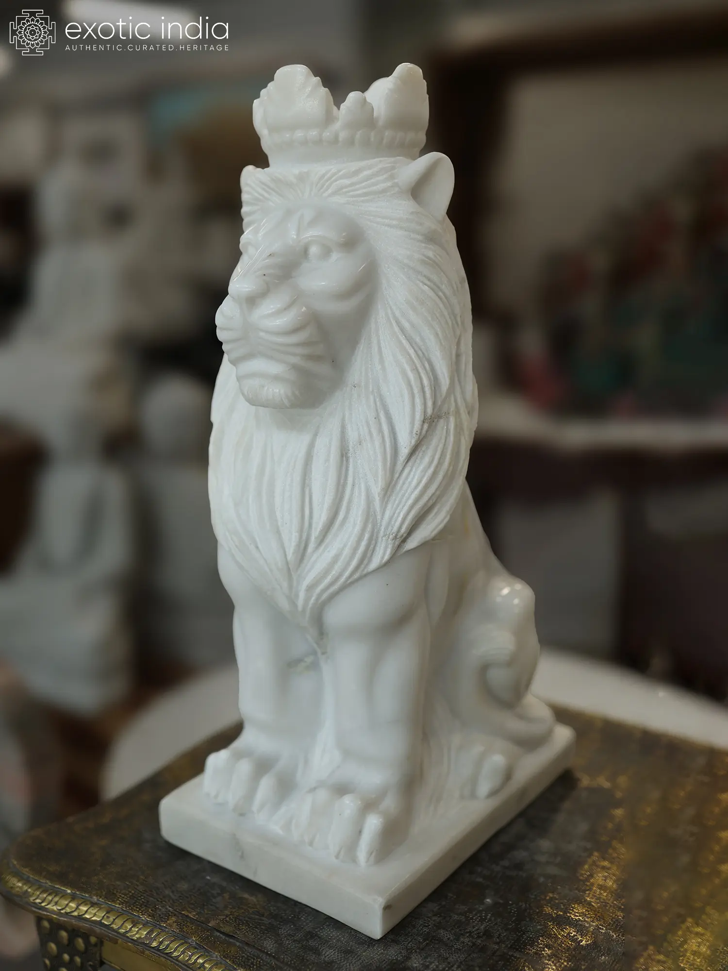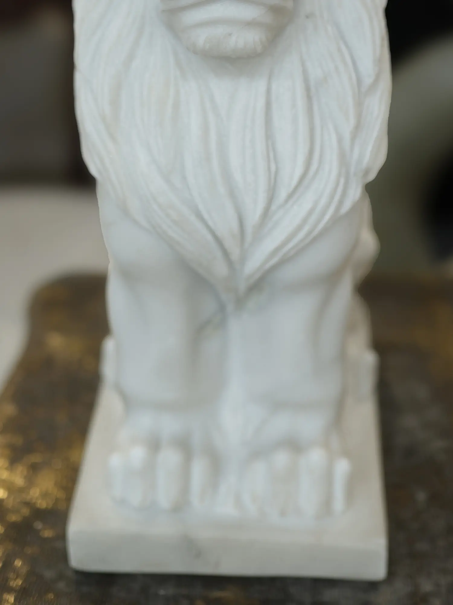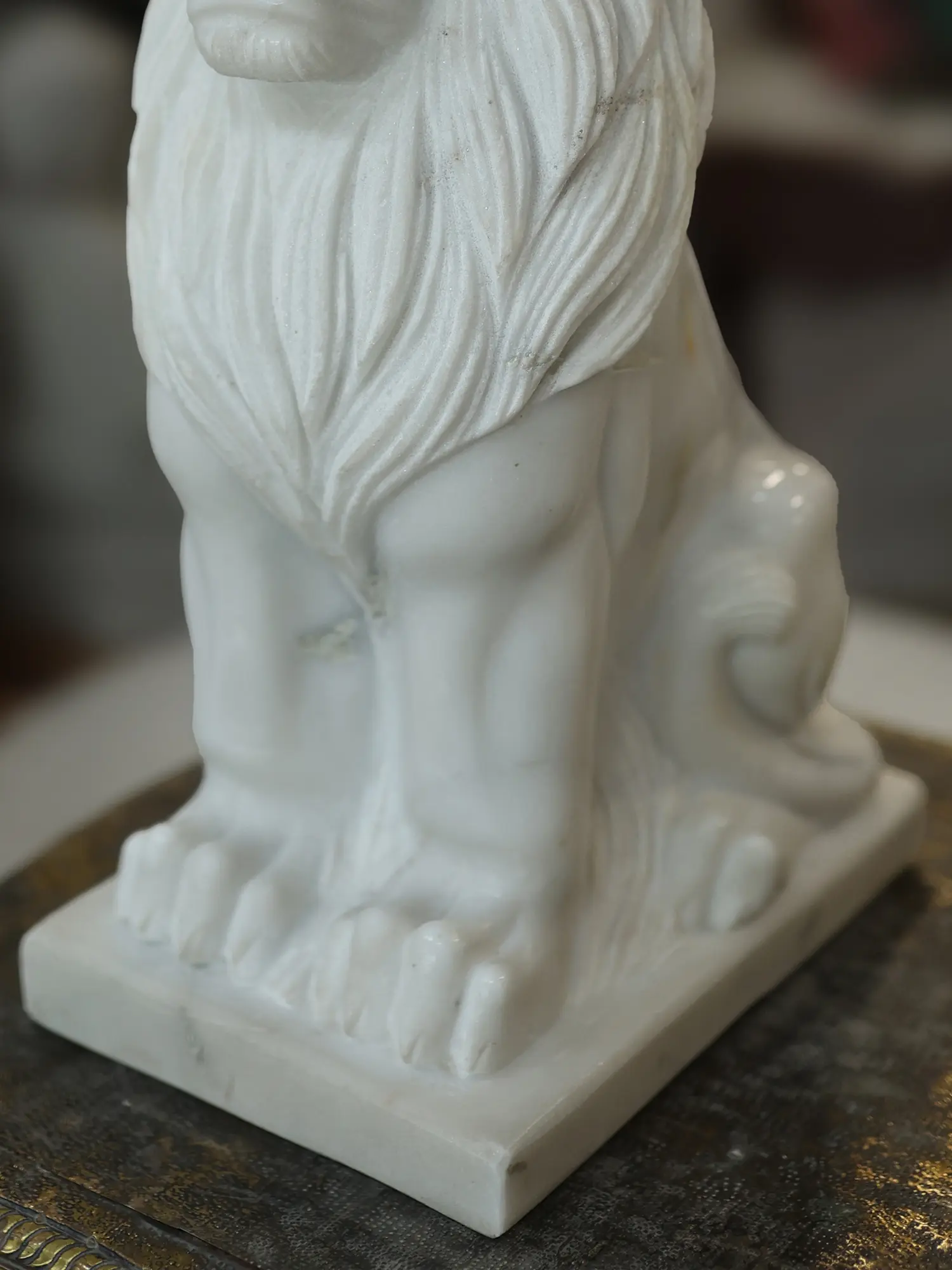 Experience the pinnacle of artisanal craftsmanship with this magnificent creation, meticulously hand-carved from the finest white marble. Skilled artisans have poured their dedication into every detail, from the majestic mane to the stoic expression, ensuring a unique work of art that speaks of passion and precision. The cool, smooth surface of the marble invites touch, showcasing the depth and richness that only natural stone can provide.