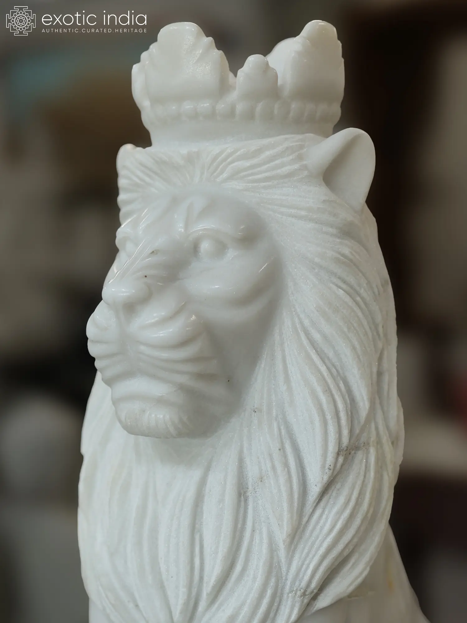 When Power Meets Itself | Lion Pair Statue | White Marble | Exquisite Indian Art