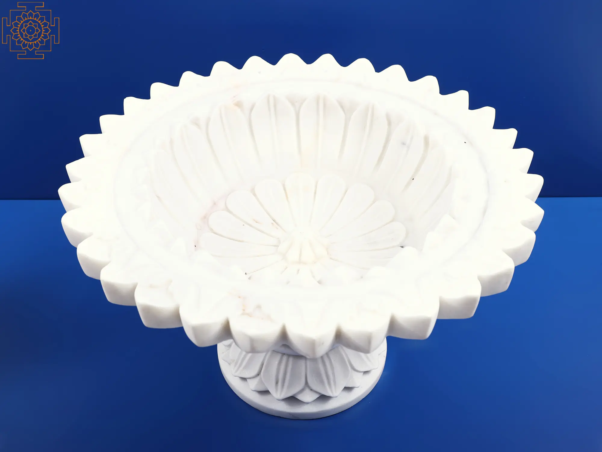 This amazingly crafted Urli provides the ultimate-classic look to any interior decor. It is made with pure marble and the skilled artisans have given it a perfect finish that will add elegance and sheerness to your residence. It exudes a graceful vibe to any space where it is kept. It comes with a base that supports the bowl which is in the shape of a multiple-petaled flower. The double conical base also has an intriguing pattern. When filled with different flowers floating on water, this Urli illustrates the feelings of tranquility, royalty, and relaxation, all at the same time.
