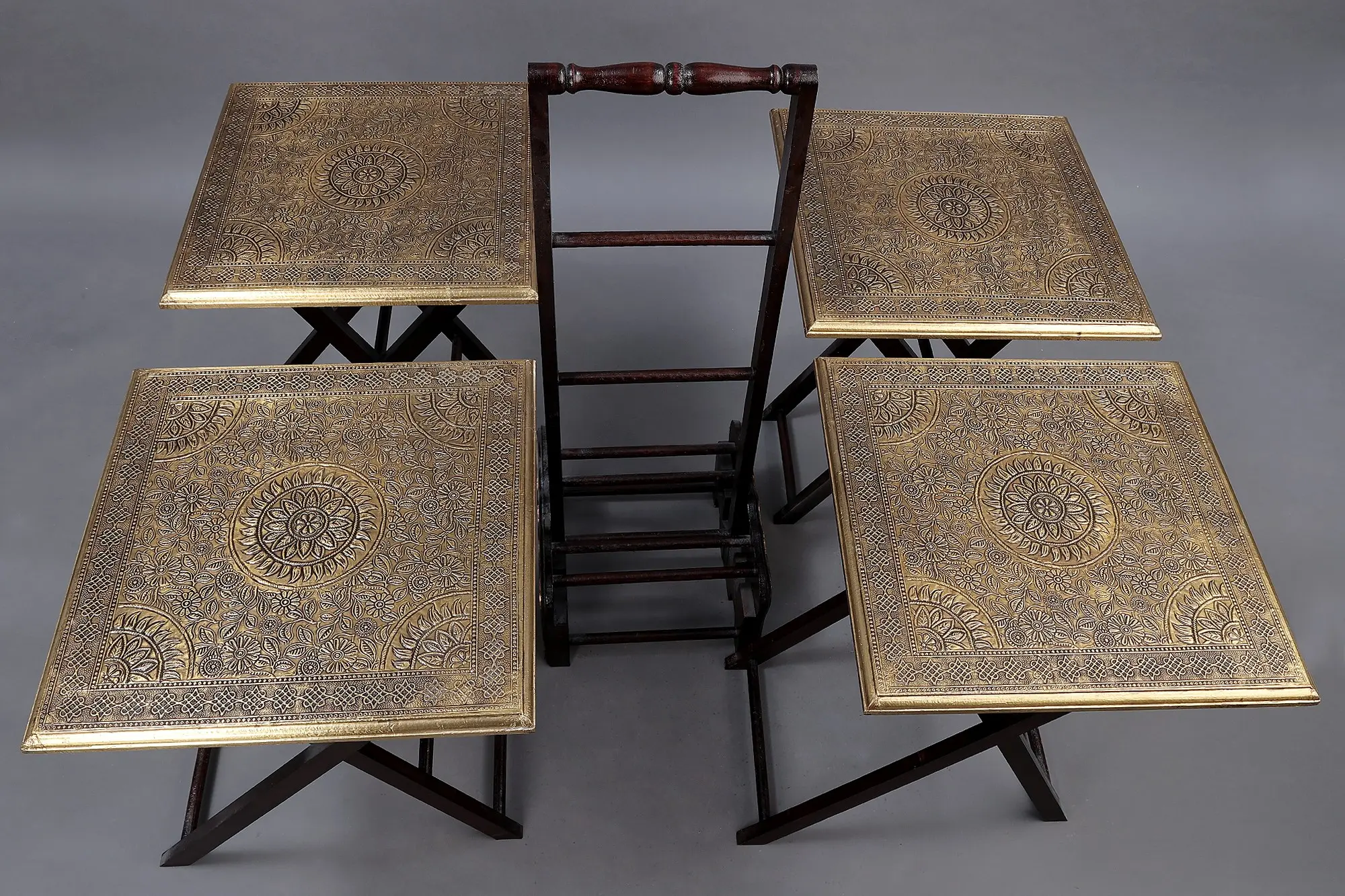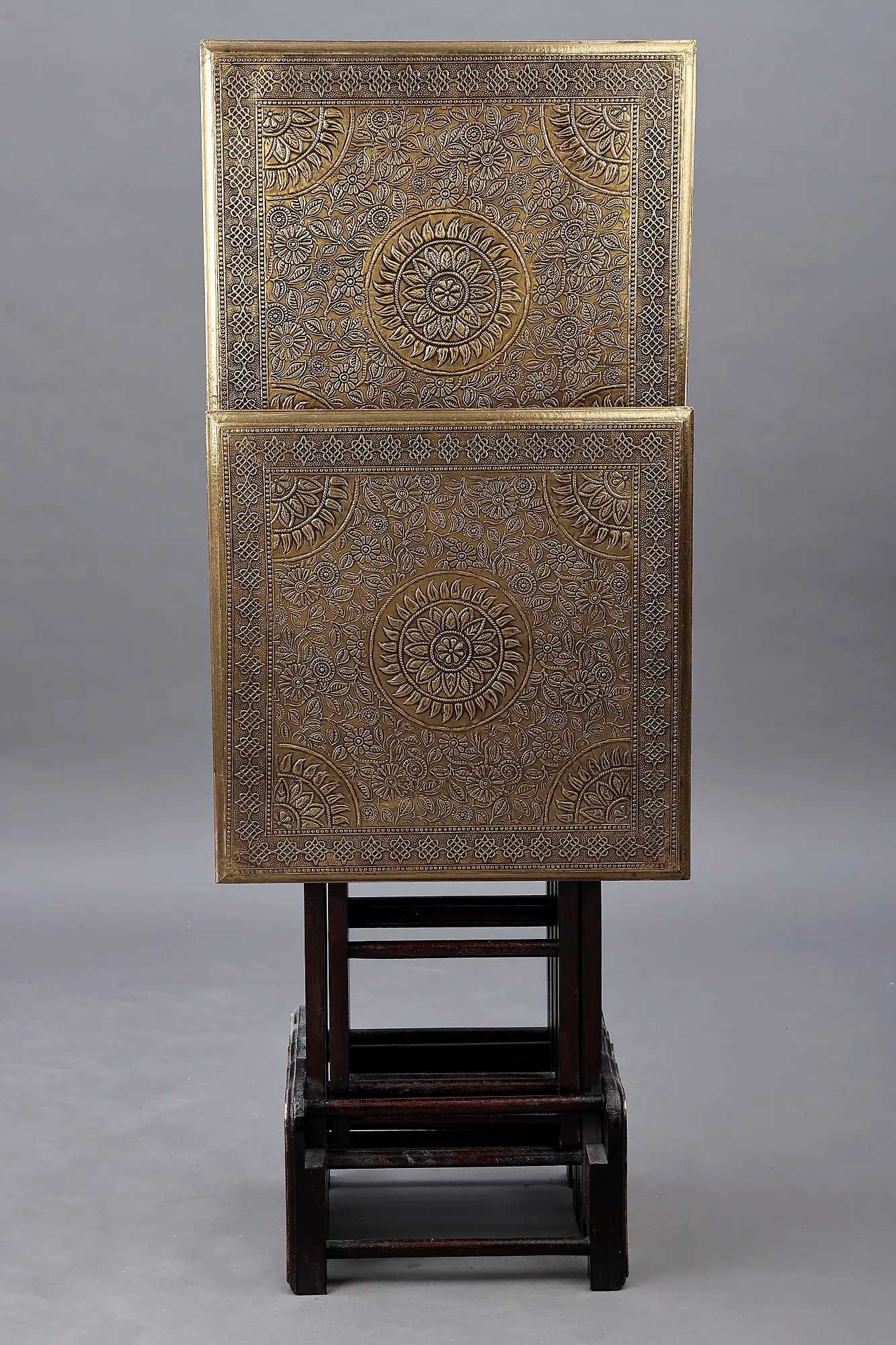 These tables are proudly made in India, drawing inspiration from the country's rich artistic heritage. The brass sheet work is reminiscent of traditional Indian metalwork, adding a touch of cultural flair to your home. By purchasing these tables, you're not only acquiring a beautiful piece of furniture but also supporting the livelihoods of skilled artisans and preserving traditional crafts. Bring the warmth and elegance of India into your home with these exquisite tables.