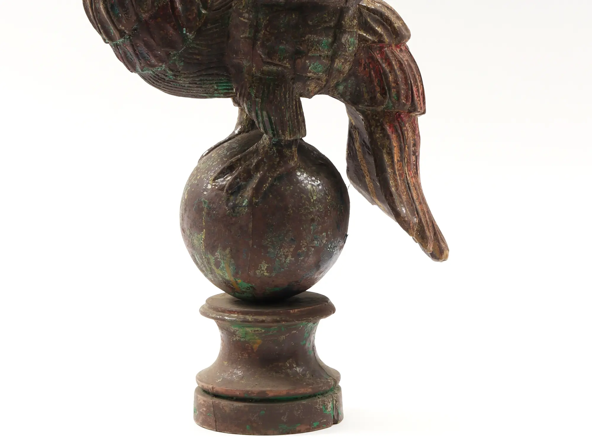 This Decorative Wooden Eagle sitting on a Ball is an Eagle Lectern inspired by the 18th century Venetian Lecterns. The Lecterns are sacred objects used for placing the bible and other sacred texts in holy places. The use of the image of an Eagle is very significant as the bird is believed to be able to fly near heaven, hence the closest to God. Perched in majestic stillness, the Decorative Wooden Eagle sits regally on a sphere of crafted perfection, it is also a symbol of strength and freedom.
