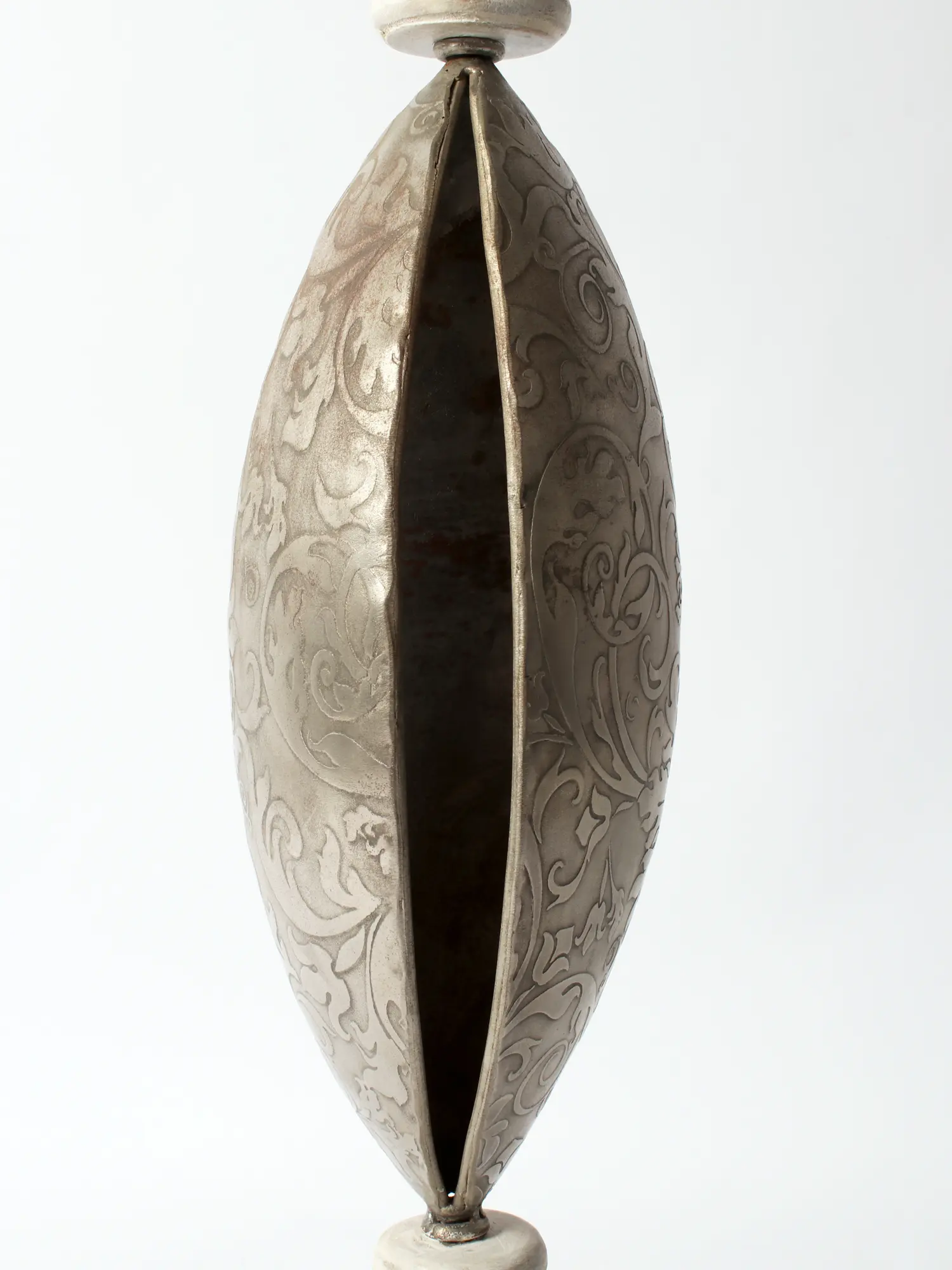 The centerpiece of this remarkable holder is its captivating iron detailing. Encased within the sculpted wooden frame is a delicate, elongated oval of wrought iron. This metal component is a canvas for intricate, swirling patterns that speak of artisanal craftsmanship. The detailed etching and embossing on the iron create a mesmerizing visual texture, catching the light and adding a touch of sophisticated grandeur. This interplay between the rustic charm of the wood and the detailed elegance of the iron creates a unique and balanced visual appeal. Whether displaying a flickering pillar candle or standing as a standalone decorative item, this candle holder promises to be a focal point in any room. It's an ideal choice for creating a warm and inviting atmosphere for intimate dinners, relaxing evenings, or festive gatherings.