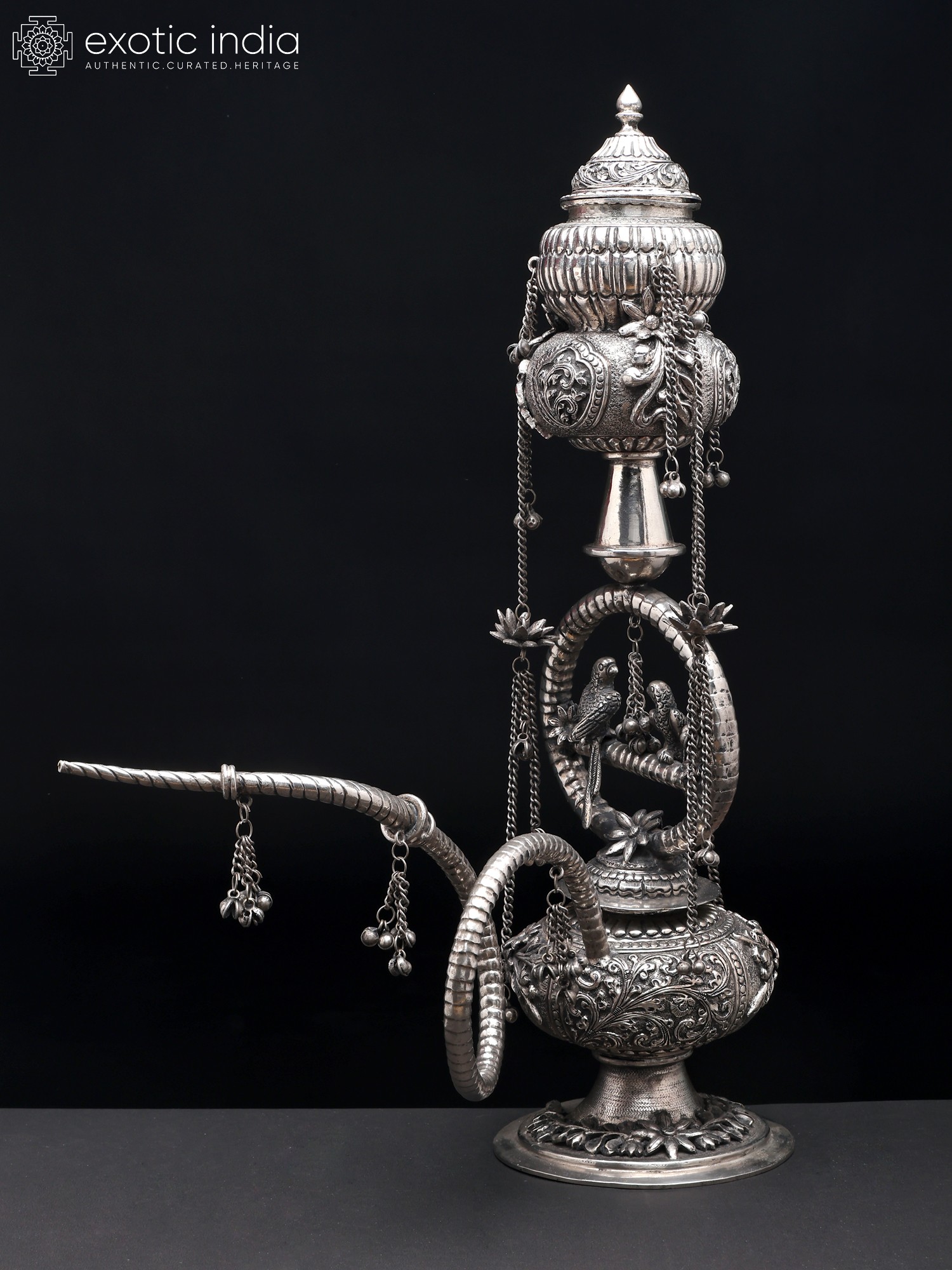 30" Large Kashmiri Man Smoking Hookah | Walnut Wood Sculpture | Home Decor
