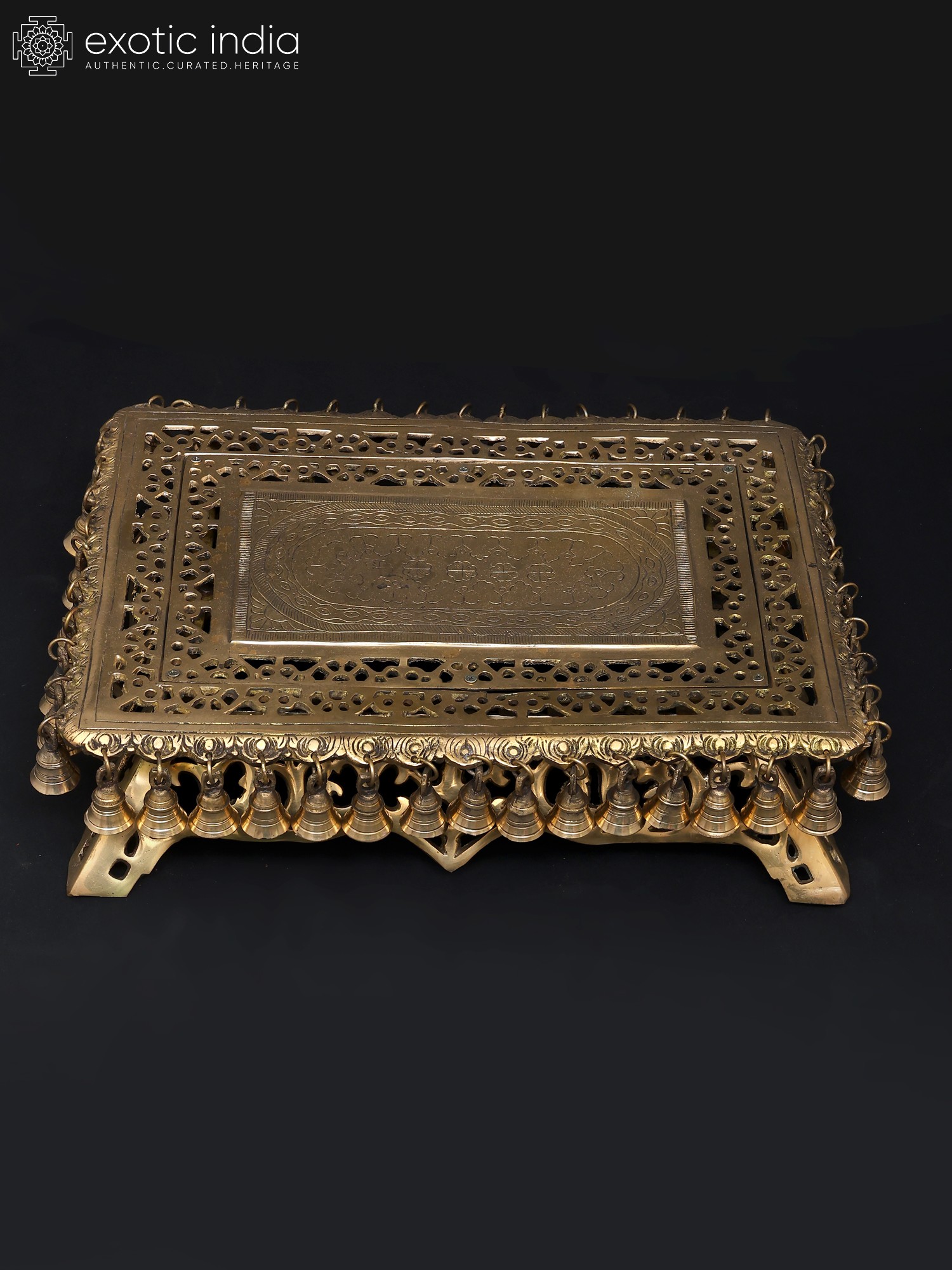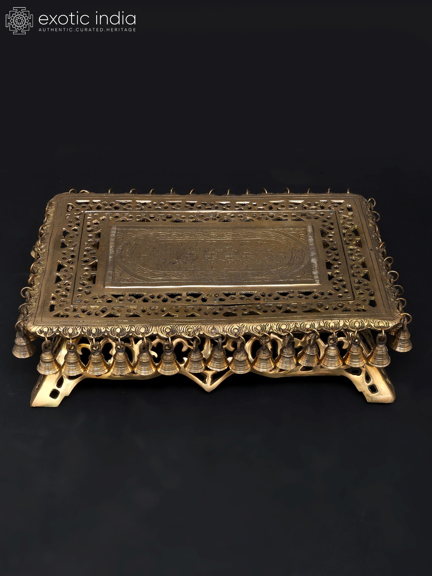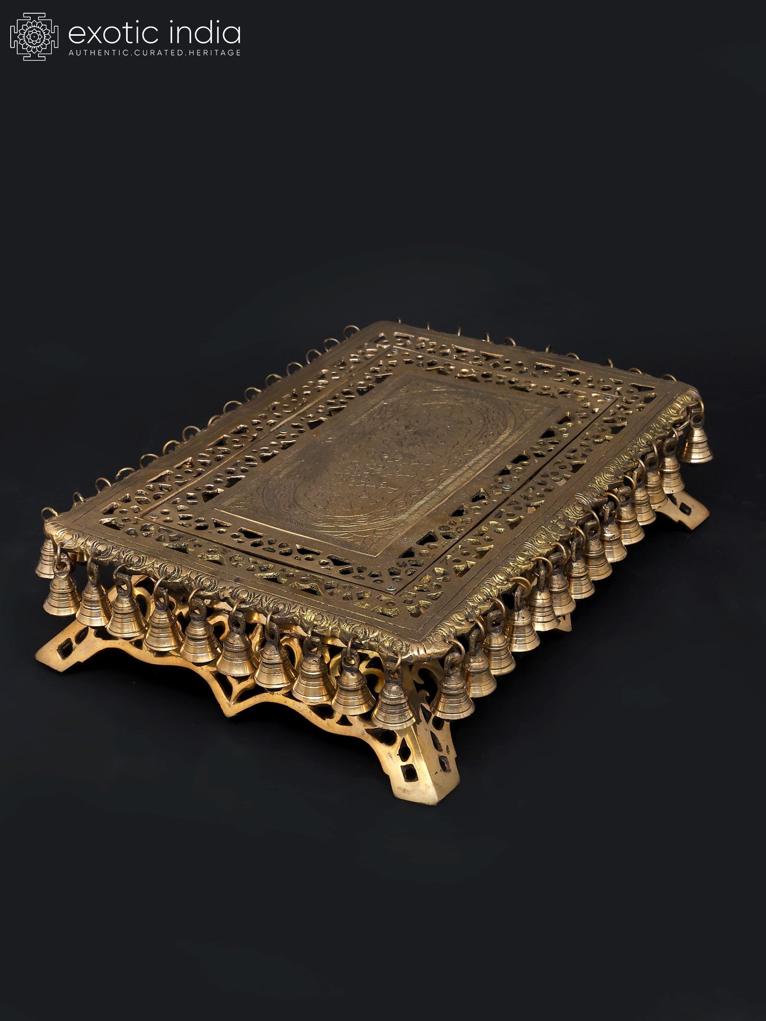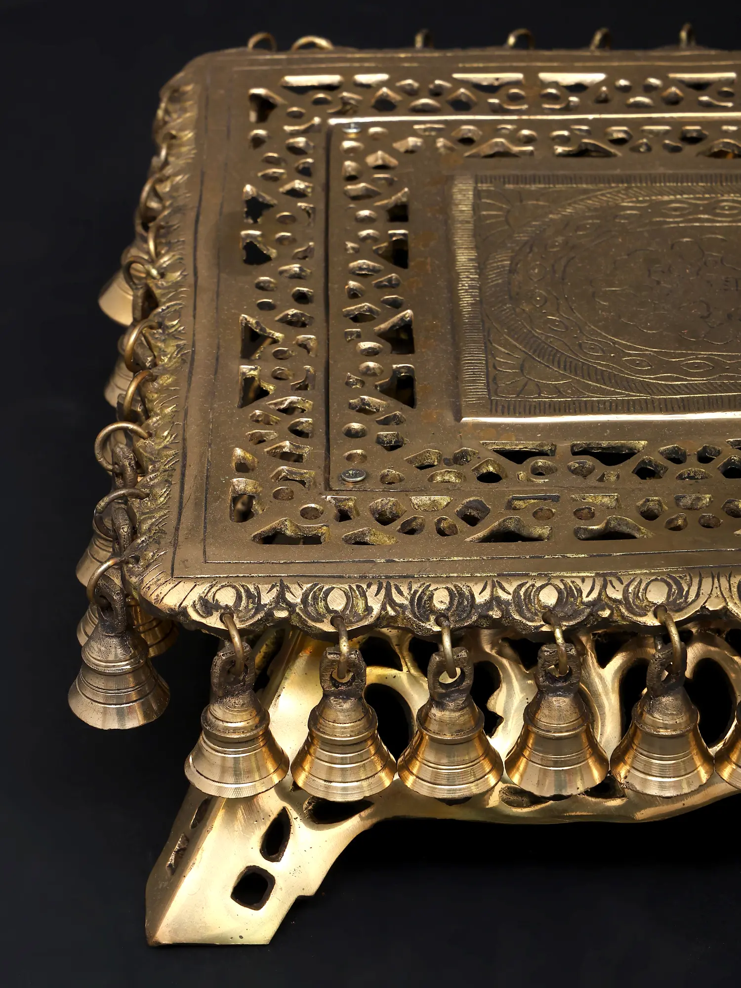 15" Designer Chowki with Dangling Ghungroos | Wooden Pedestal | Handmade Pelli