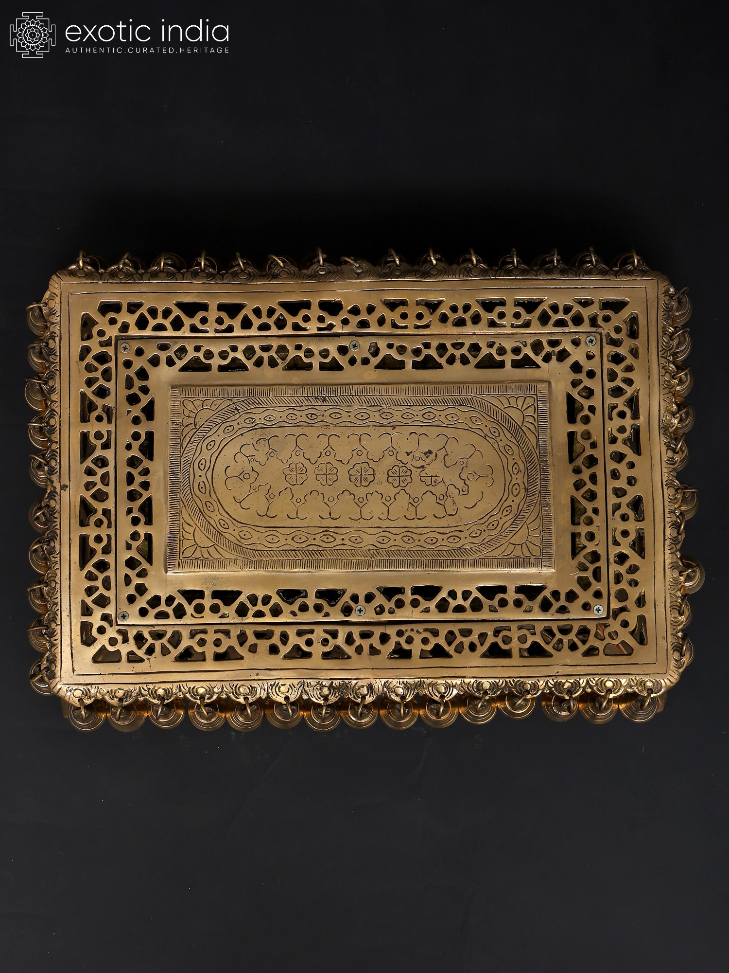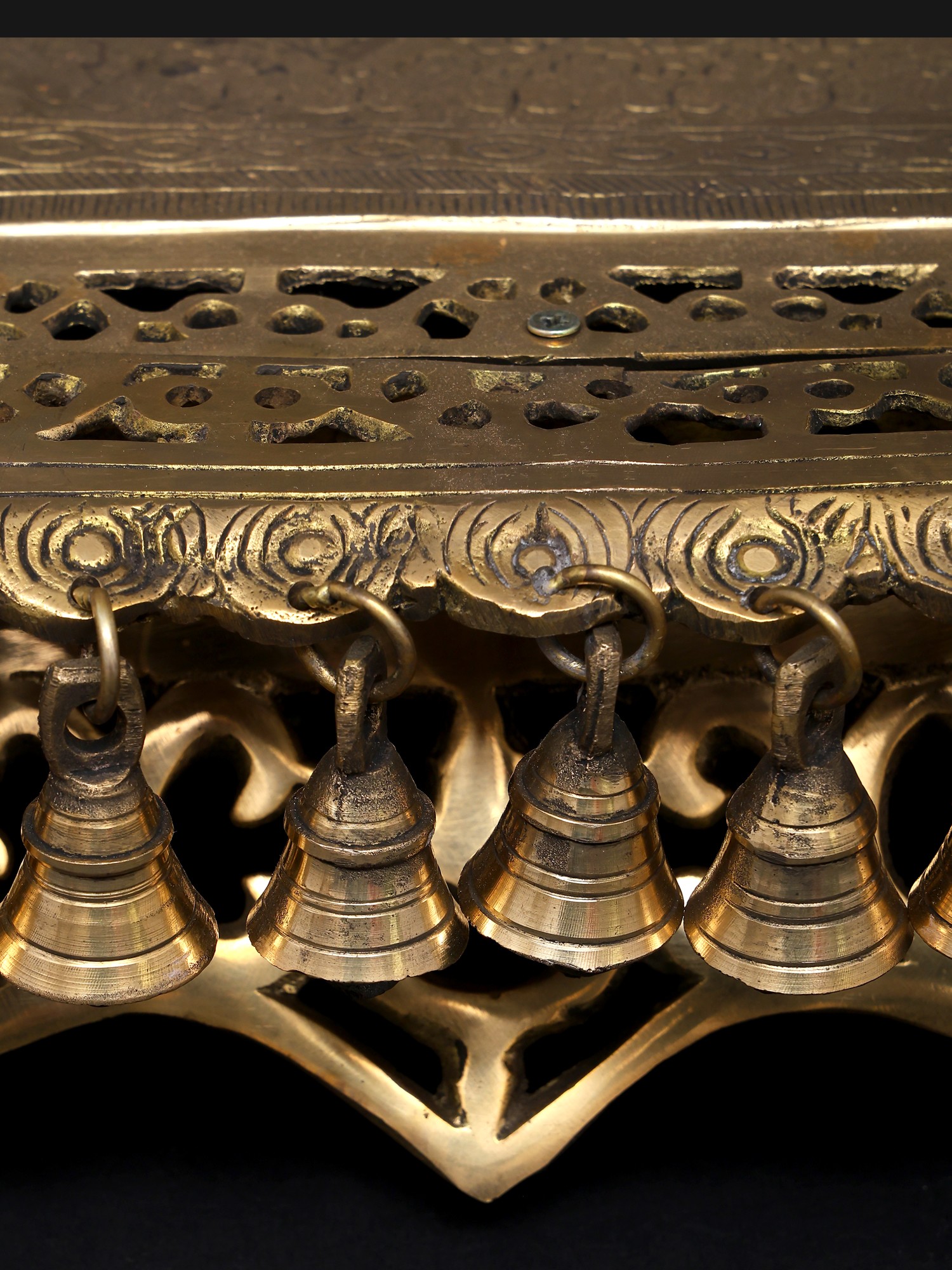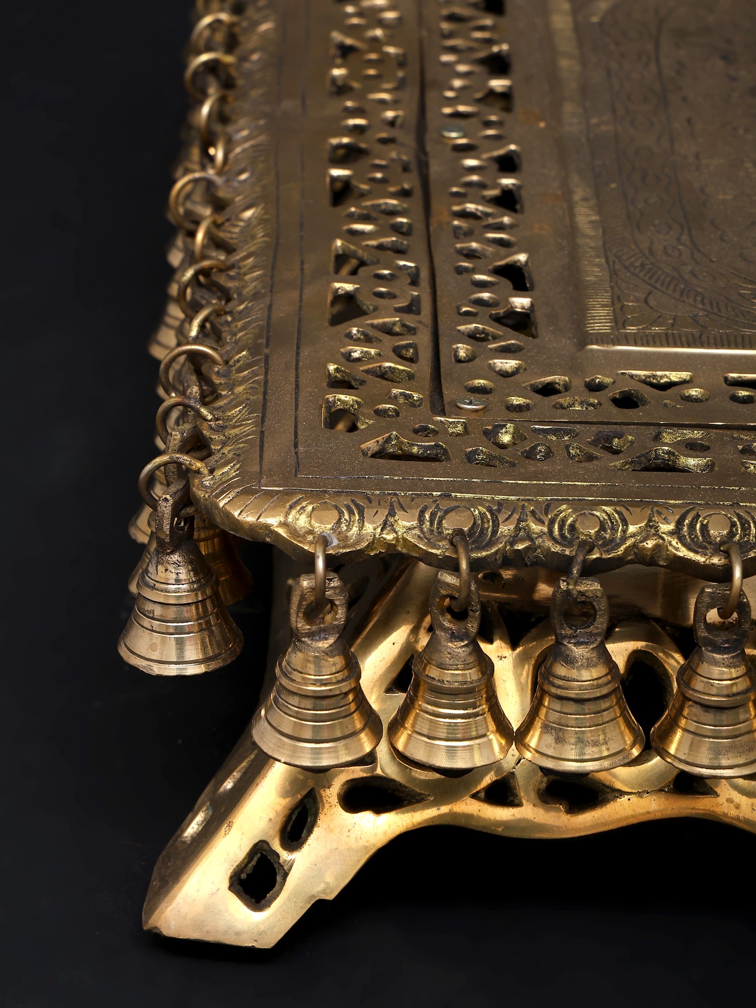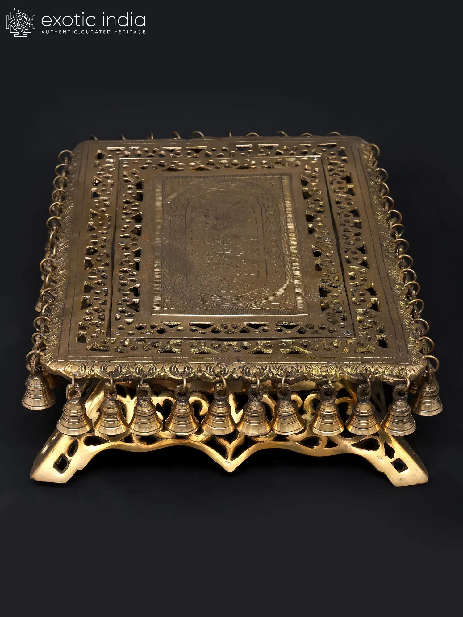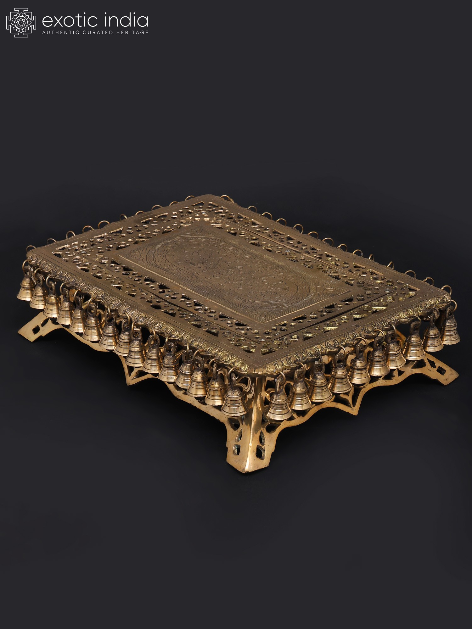 15" Designer Chowki with Dangling Ghungroos | Wooden Pedestal | Handmade Pelli