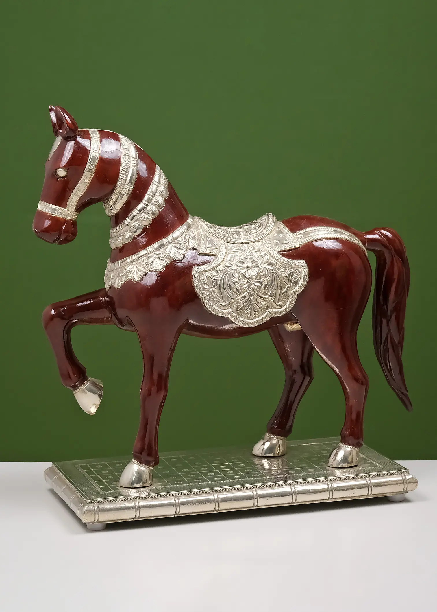 This breathtaking depiction of a galloping horse, adorned with trappings and a majestic “Jhul,” represents freedom, authority, and the pursuit of dreams. Carved with care from wood, it emanates eternal beauty and refinement, making it a compelling complement to any decor. Whether displayed in your home, enterprise, or gallery, this artwork serves as a reminder of nature’s splendour and perseverance.