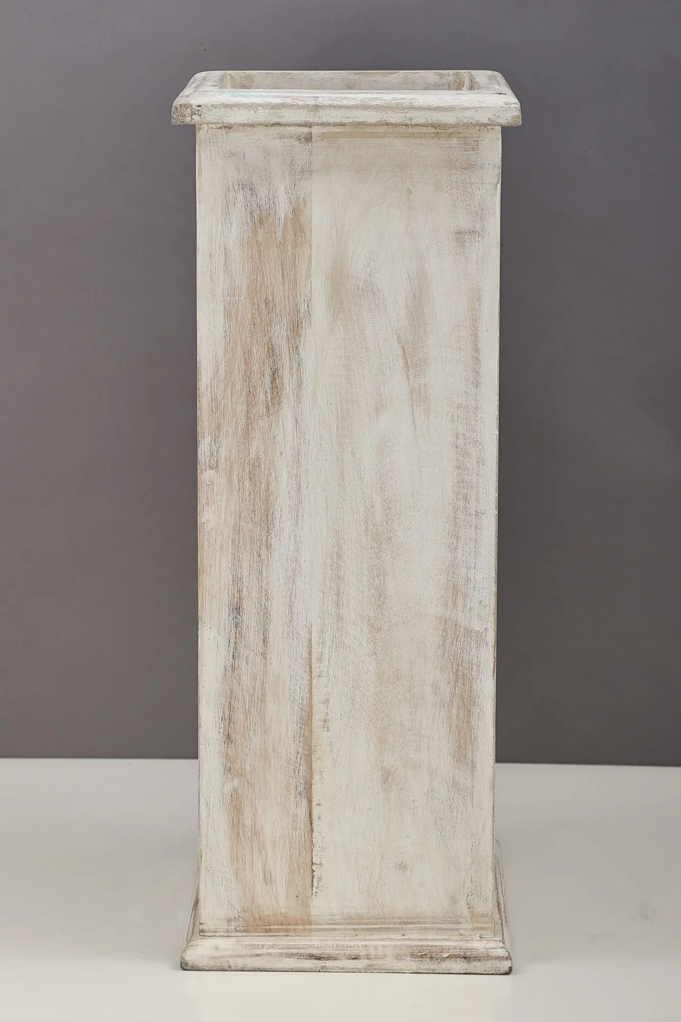 This elegant Wooden Planter perfectly blends functionality and aesthetics. Painted in pristine white, its rectangular shape exudes a timeless charm. This versatile planter becomes a canvas for your botanical creativity, accommodating both longitudinal plants and brass flowers with grace. The crisp white hue complements any decor style, adding a touch of sophistication to your indoor or outdoor space. Embrace the simplicity of design and the potential for botanical beauty as this wooden planter becomes a canvas for your gardening aspirations, transforming any corner into a serene oasis of natural elegance.