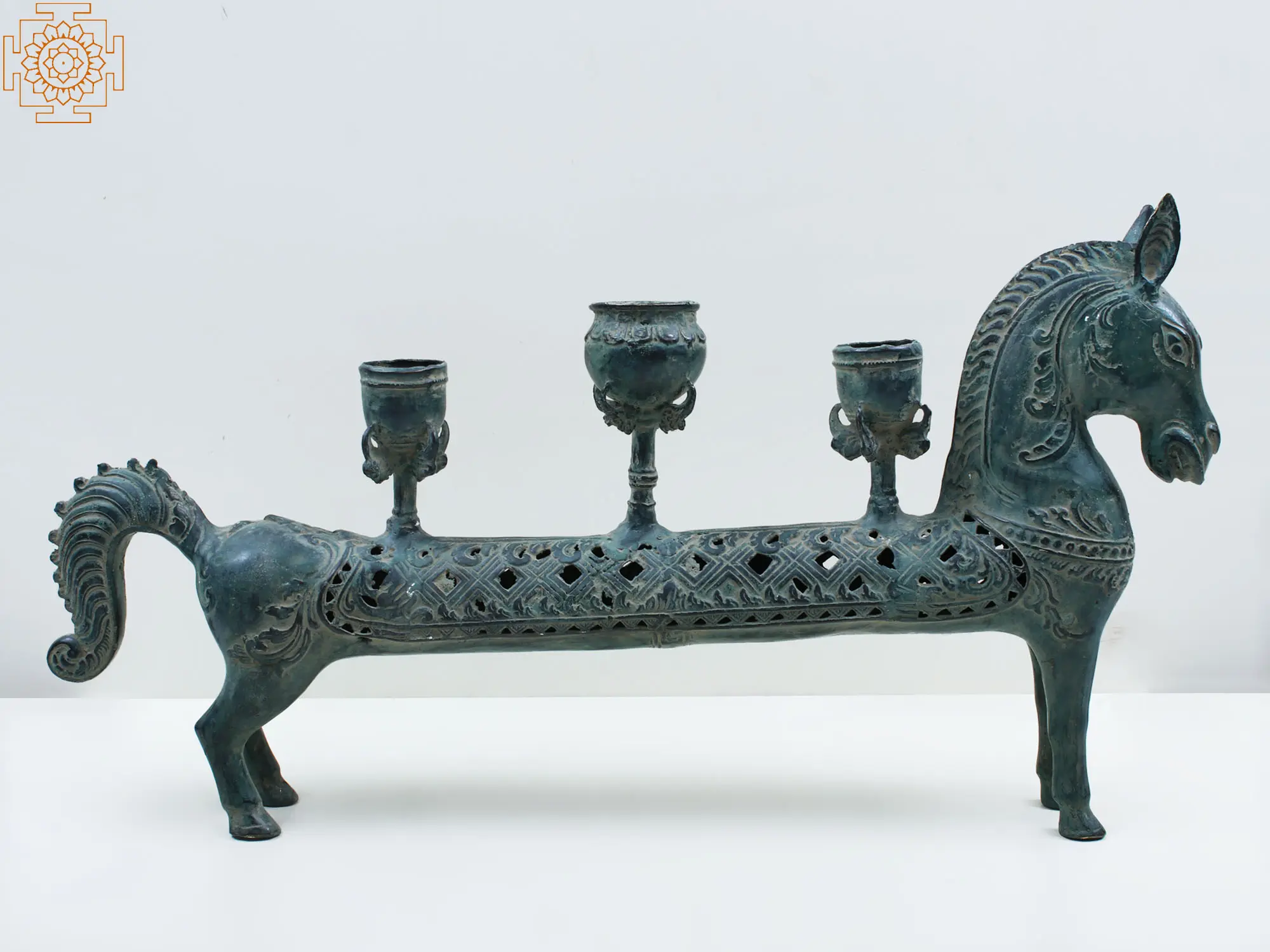 This gorgeous decorative horse with candle holders is a wonderful combination of style and utility. This masterpiece, sculpted from brass, represents power, grace, and everlasting beauty. The artistically carved horse, with its magnificent stance, also serves as a refined candle holder, bringing a warm and appealing illumination to any space.