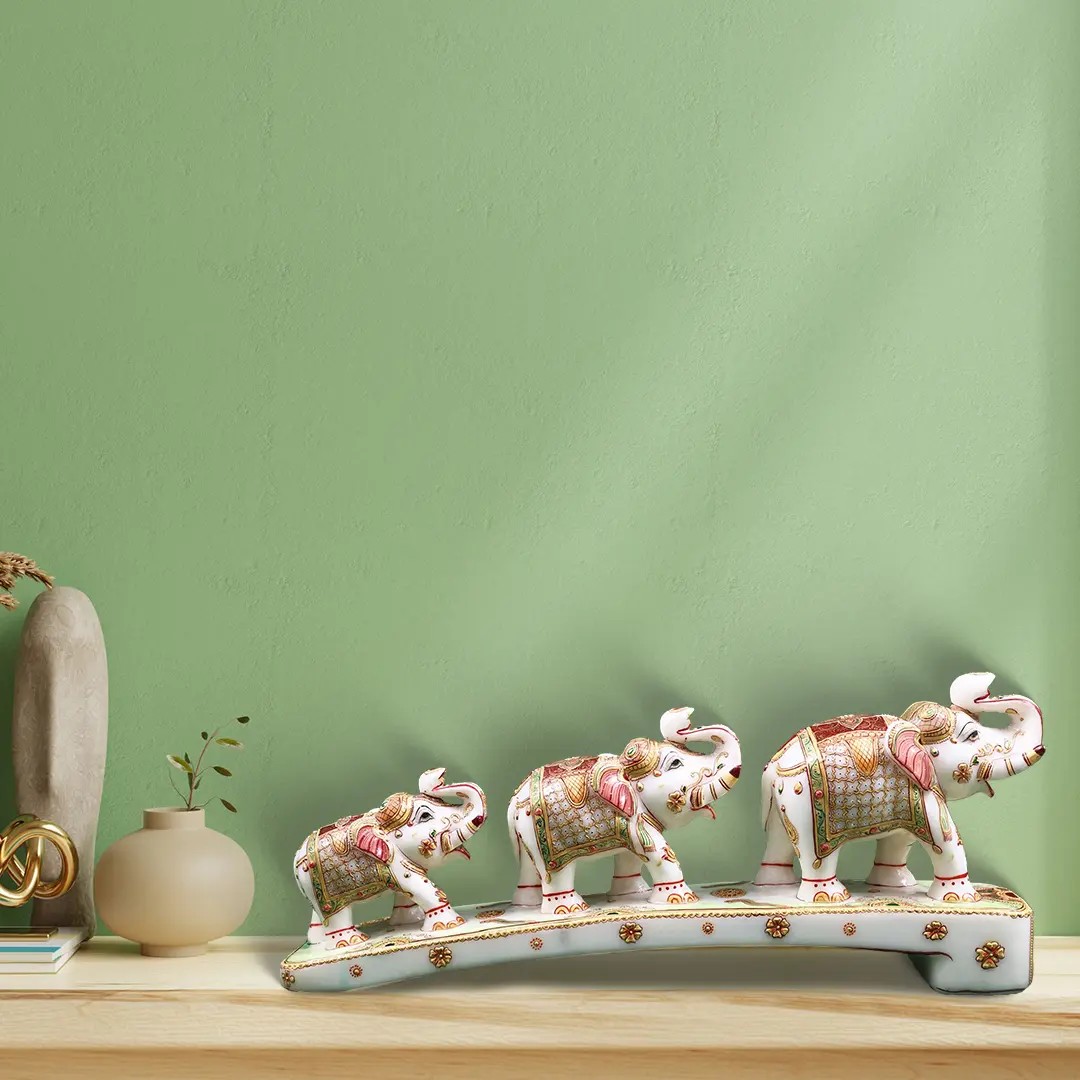 The painstaking artistry and use of premium white marble assure long-lasting beauty and elegance. This stunning elephant family statue, a mesmerizing expression of tradition and creativity, will instill a sense of harmony and elegance in your surroundings.
