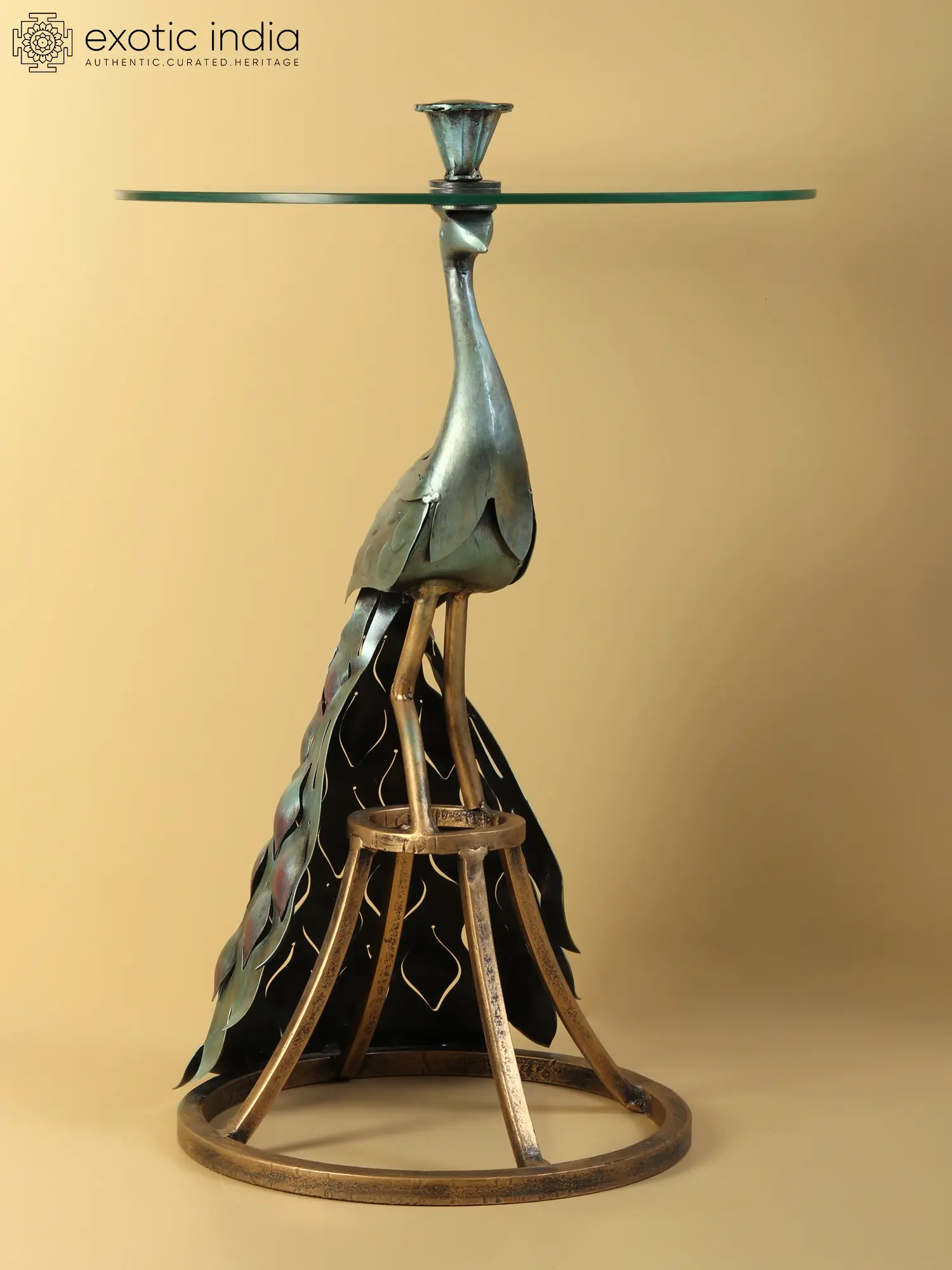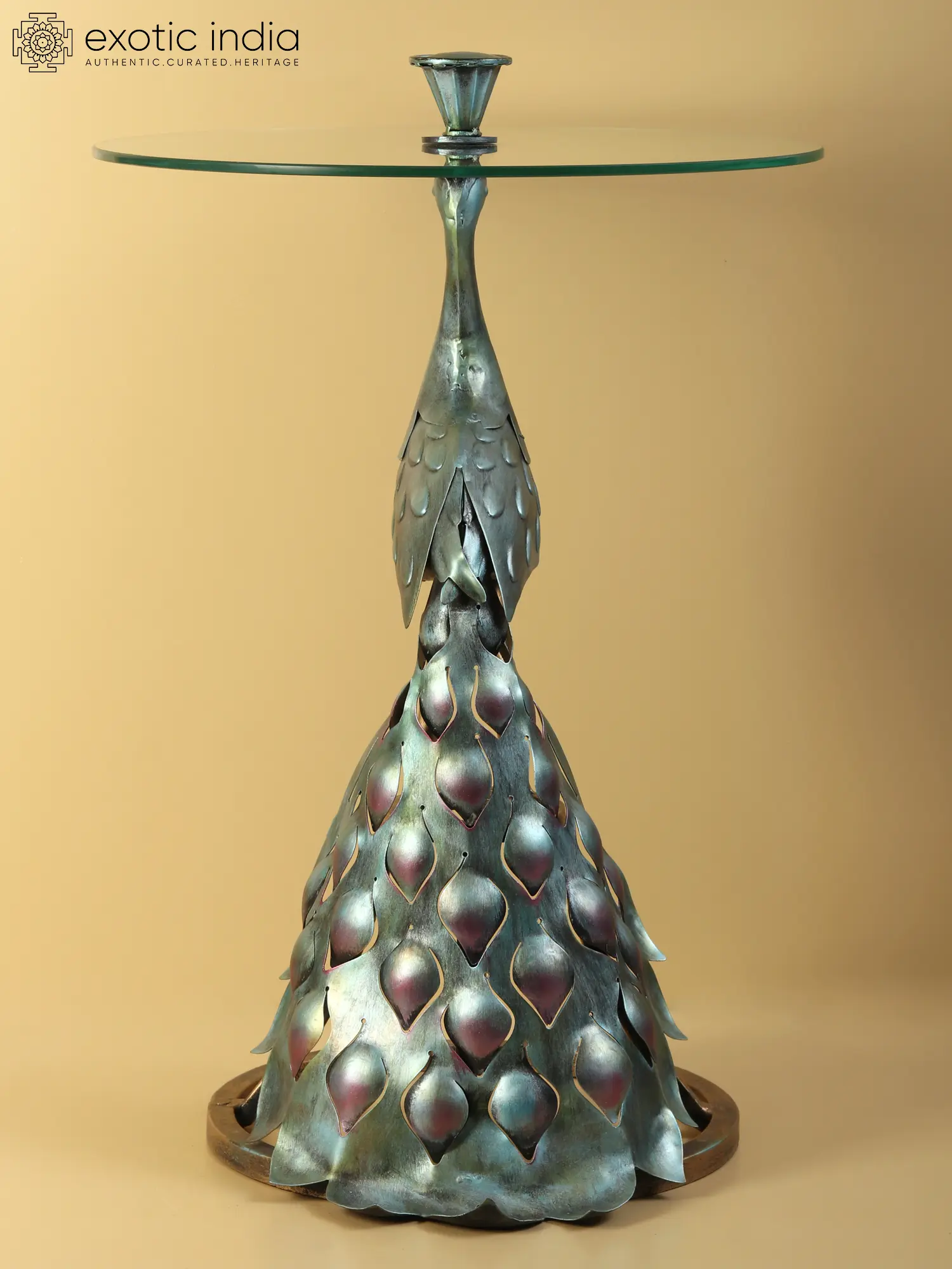 Chasing after the elusive Mayura becomes a futile pursuit upon encountering the mesmerizing Designer Peacock Table, where the majestic bird is immortalized in iron and glass. Poised gracefully on an iron stand, the Mayura exudes regal confidence, its steel grey tail unfurling with unparalleled beauty. Delicate pink dots adorning its form mimic the intricate feather patterns, while the glass tabletop, balanced atop its head, adds a touch of ethereal elegance. With a decorative flourish crowning its head, the table not only captivates with its creativity but also maintains a poetic reverence for the avian muse.