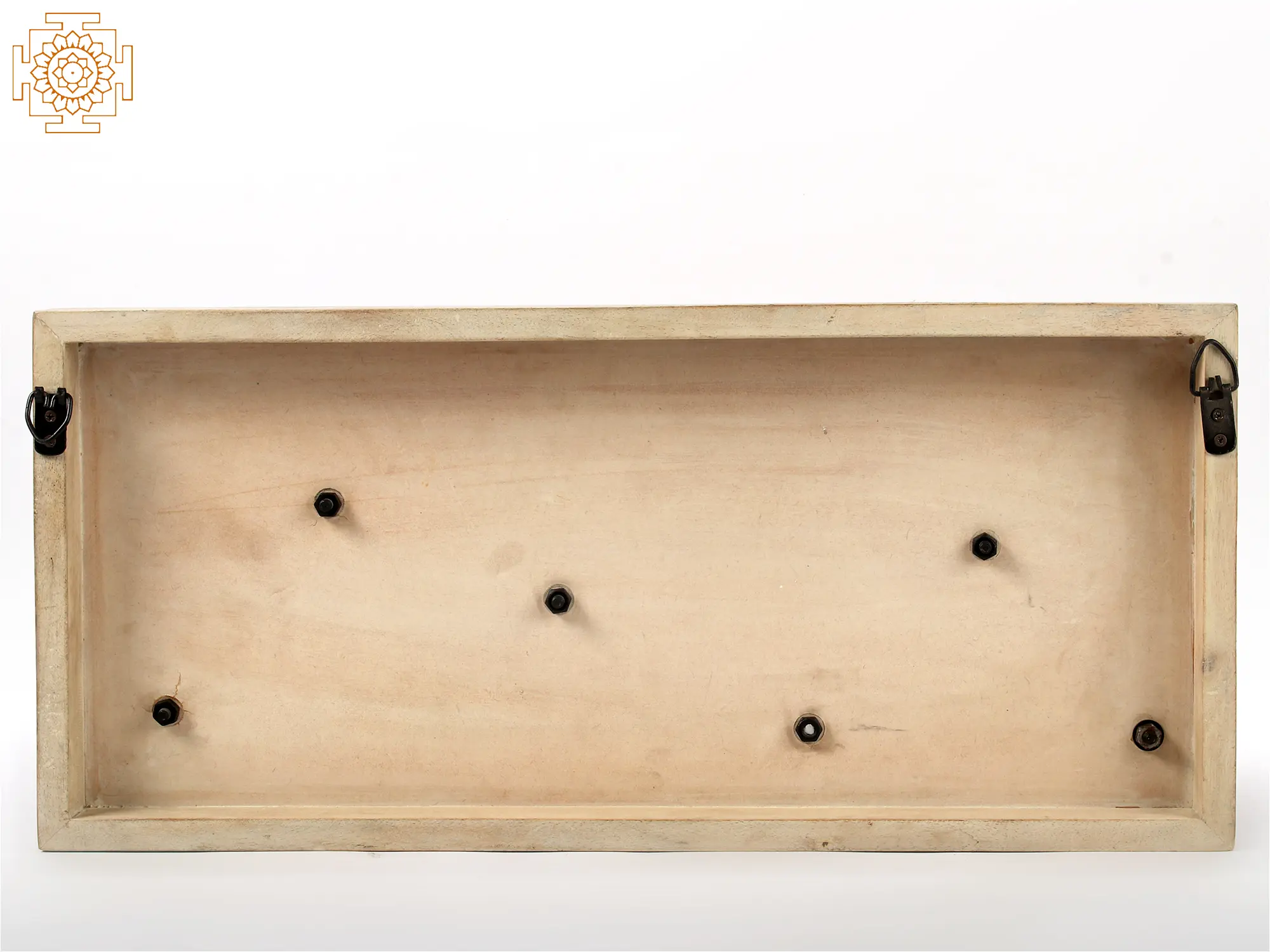 The generous width of this decor piece makes it a statement item, capable of handling multiple items without looking overcrowded. Its construction from high-quality wood and iron ensures durability and longevity, promising to be a valuable part of your home decor for years to come. The unique distressed finish means that no two pieces are exactly alike, giving your home a truly personalized touch. It seamlessly blends into a variety of interior design styles, from farmhouse and bohemian to shabby chic and even modern eclectic. It’s a piece that invites touch and admiration, adding personality to any wall it adorns. Consider this a functional piece of art that enhances both the beauty and organization of your living space.