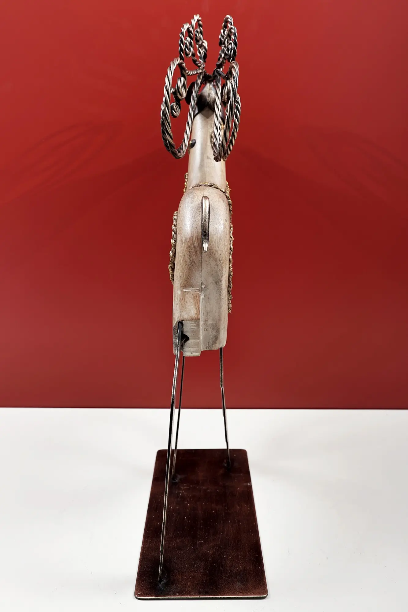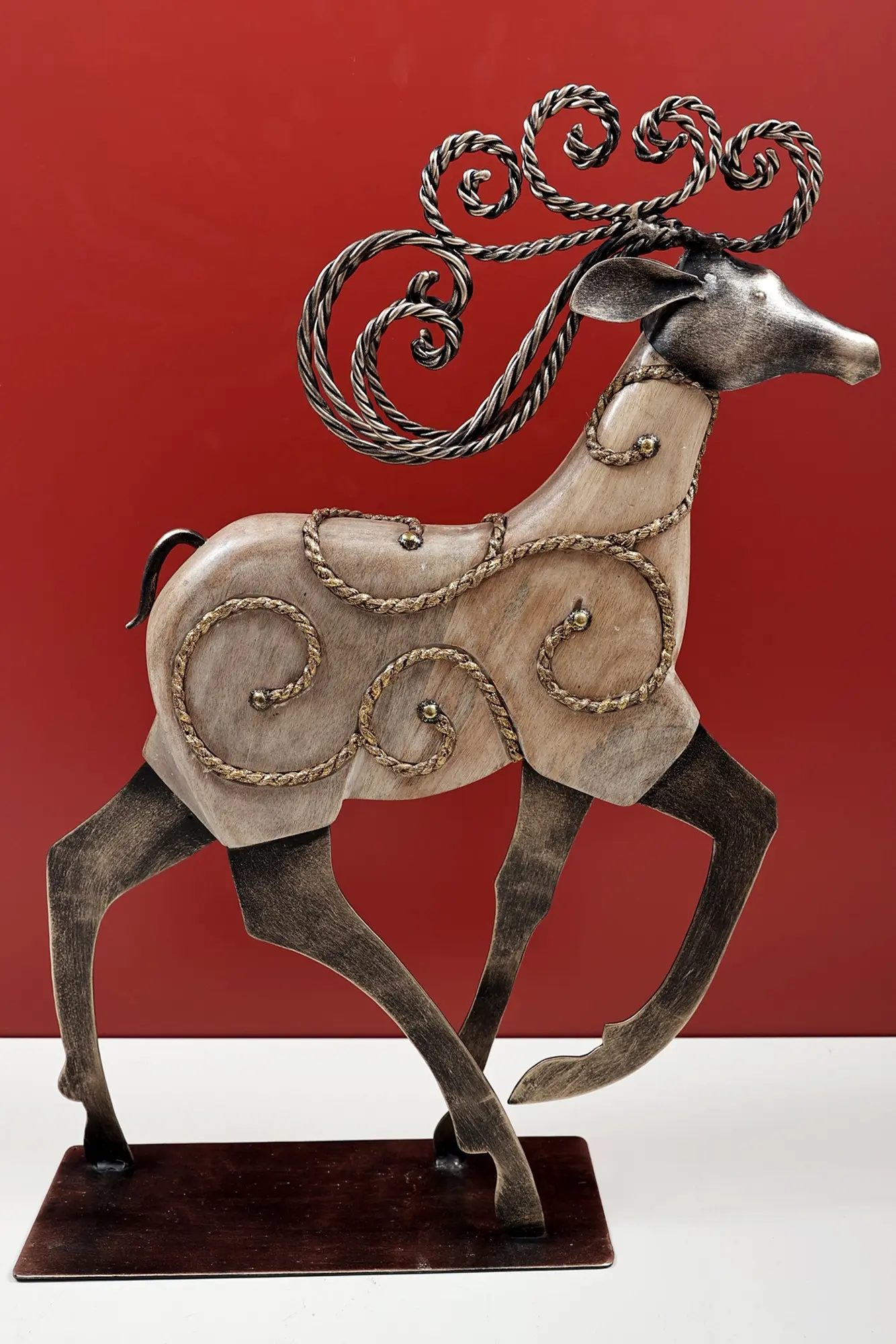 Evoke a sparkly ambience with this golden reindeer environed in wood and iron. This refined décor is built of enchanting wood from the forest beauty. With its outstanding compelling appeal and understated elegance, this piece instantly adds character to any area. Notice the curvaceous antlers that grow with season looks exquisite in design. Enhance your living room with an auriferous theme decor that is designed to meet the classiness of your living room. Allow the tranquil reindeer to reenergize your Christmas spirit which would engage you with your festive mood.