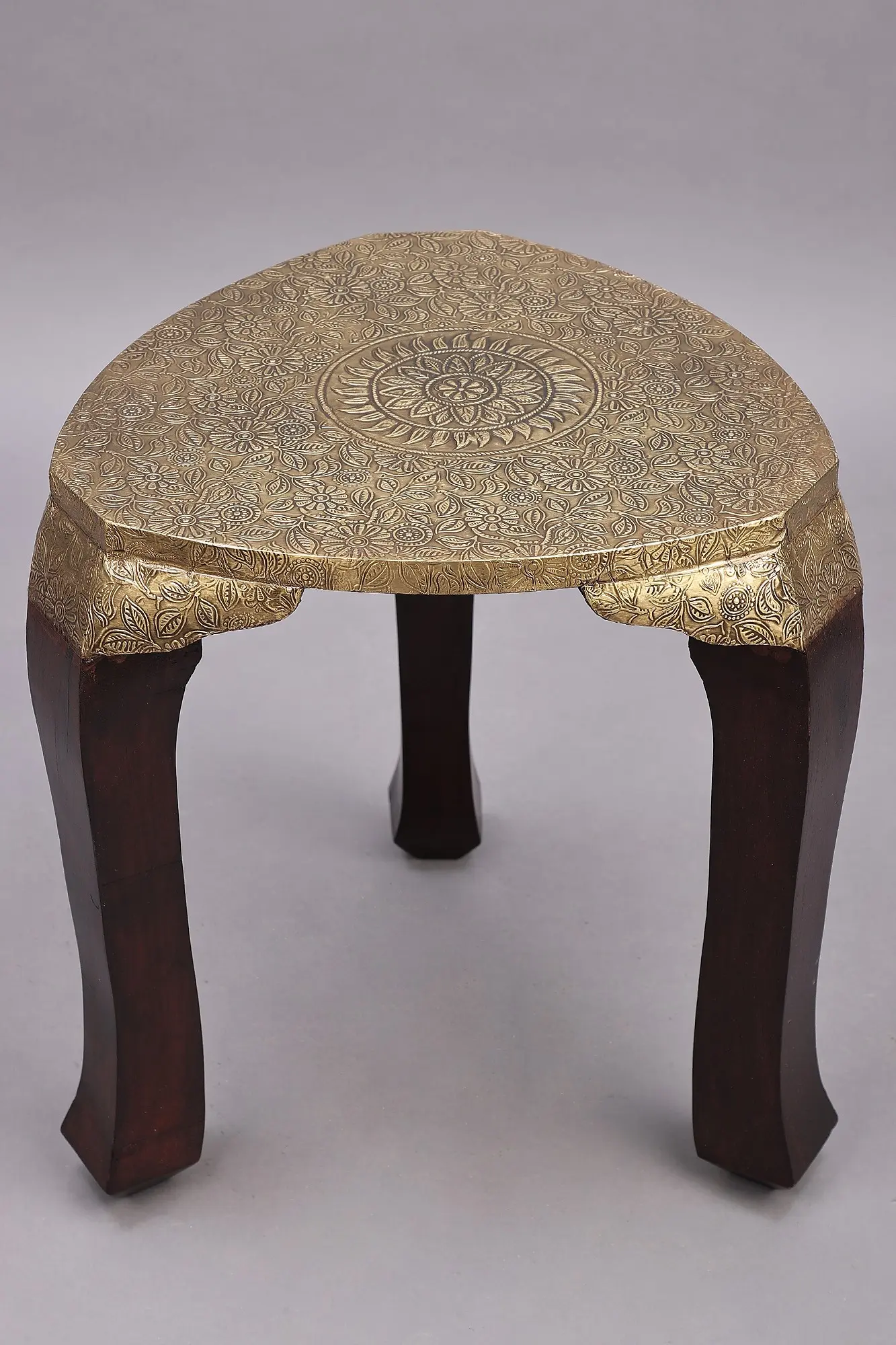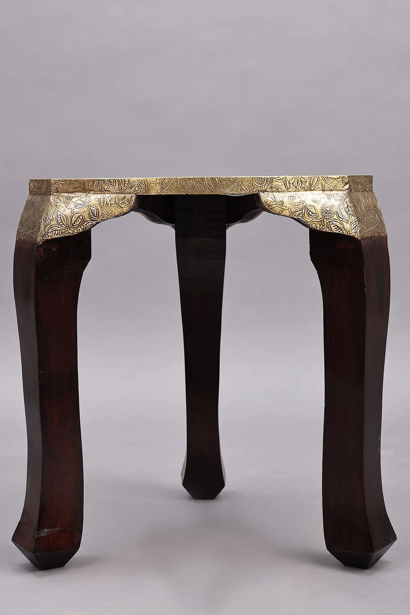 Experience the beauty and tradition of Indian craftsmanship with this intricately designed piece. Handcrafted by skilled artisans, this item is more than just a functional object; it's a testament to the enduring art forms passed down through generations. The rich, warm tones of the wood are beautifully complemented by the gleaming brass embellishments, creating a stunning visual contrast that is both elegant and eye-catching. Every detail, from the smooth curves of the legs to the carefully etched patterns on the brass, speaks to the dedication and artistry poured into its creation.