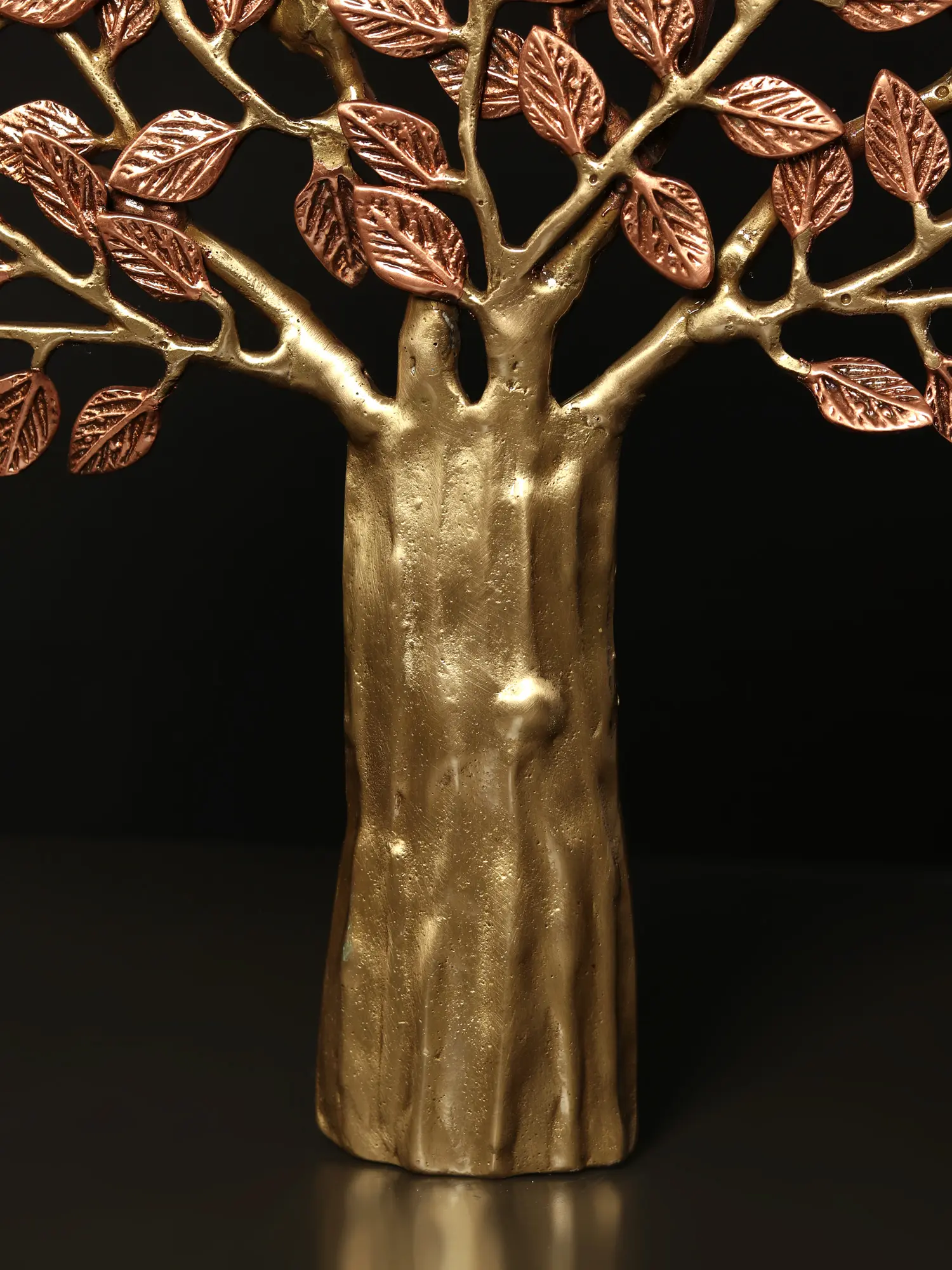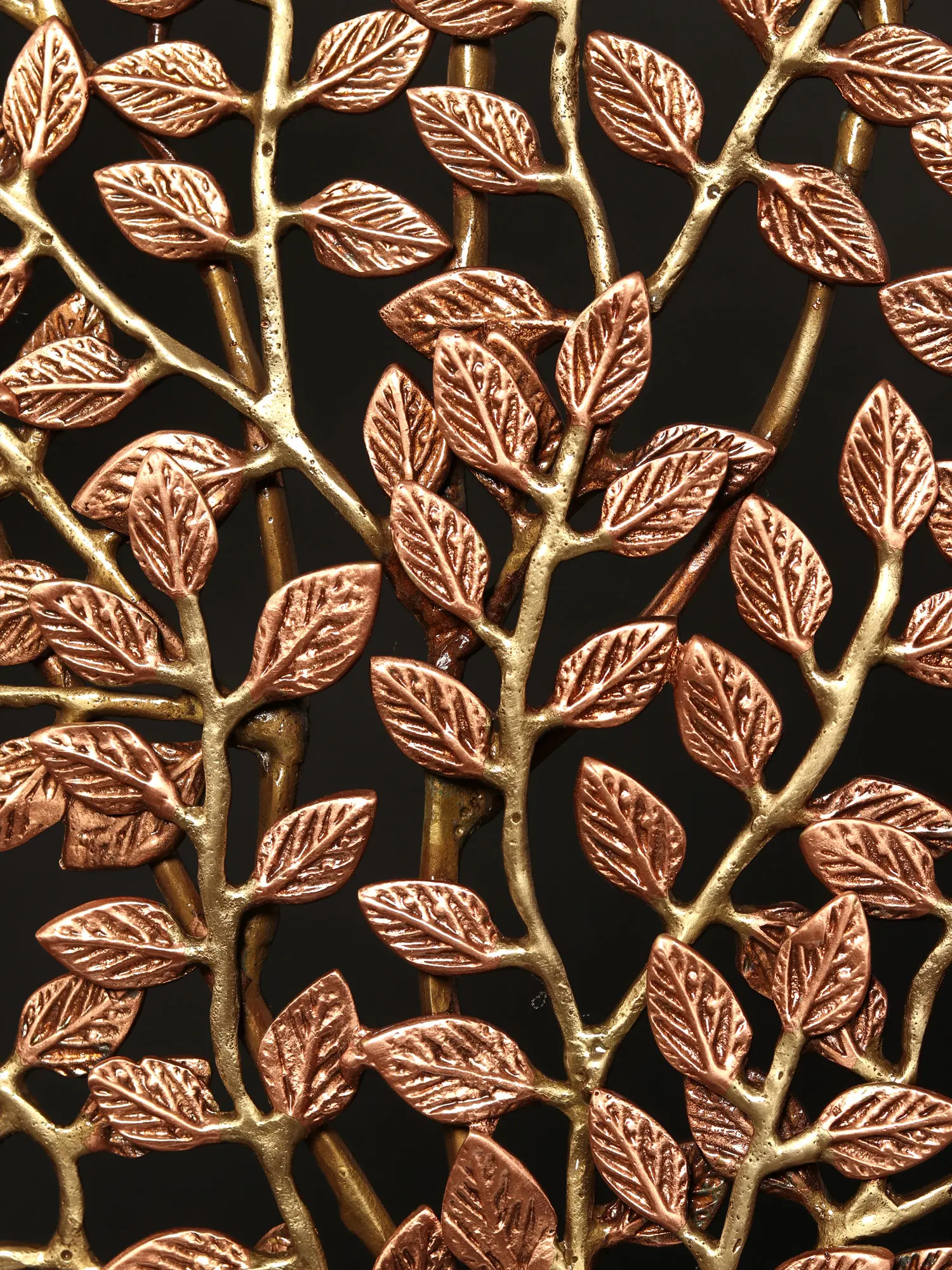 This Wall Mounted Tree of Life made of Brass and with 24 Karat Rose Gold Plating is a tribute to the magnificence of the Banyan tree. It is skilfully crafted by the artisans through various processes. This wall hanging is a piece that attracts contemplation and deserves to be placed in an area that deals with spiritual conversation or Yoga practices.