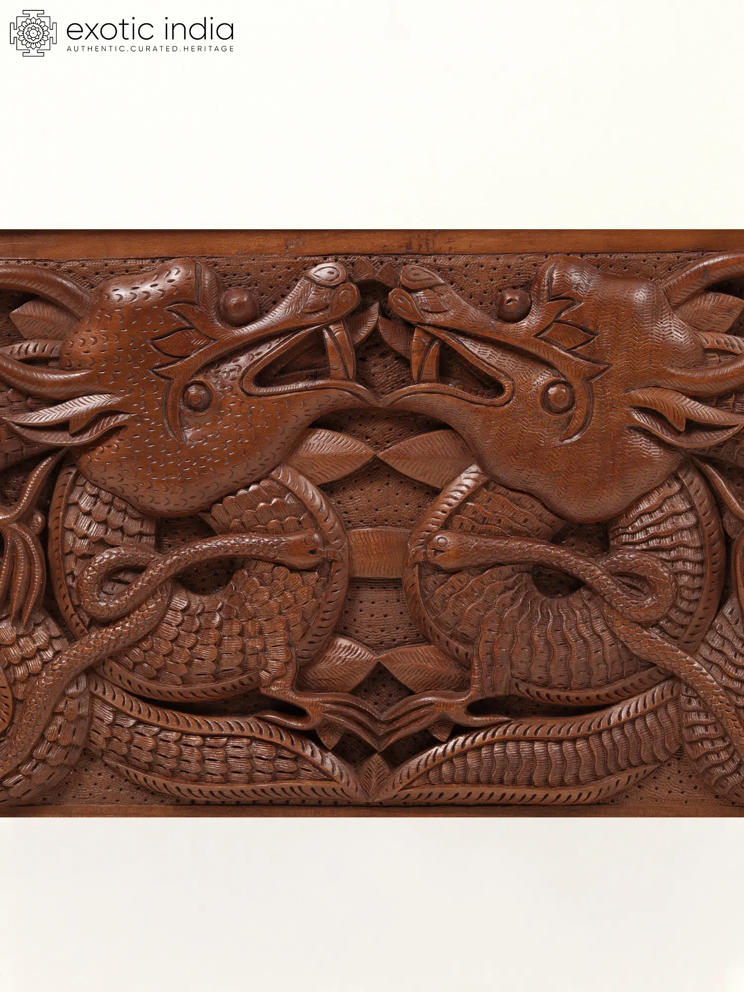 Elevate your decor with the timeless allure of Kashmiri Walnut wood craftsmanship. Carved to perfection, Vaboraveth or Deep Carving techniques create intricate designs, with dragons as a prominent motif. These exquisite wooden planks boast carvings up to 5 inches deep, lending a sculpted elegance to your space.