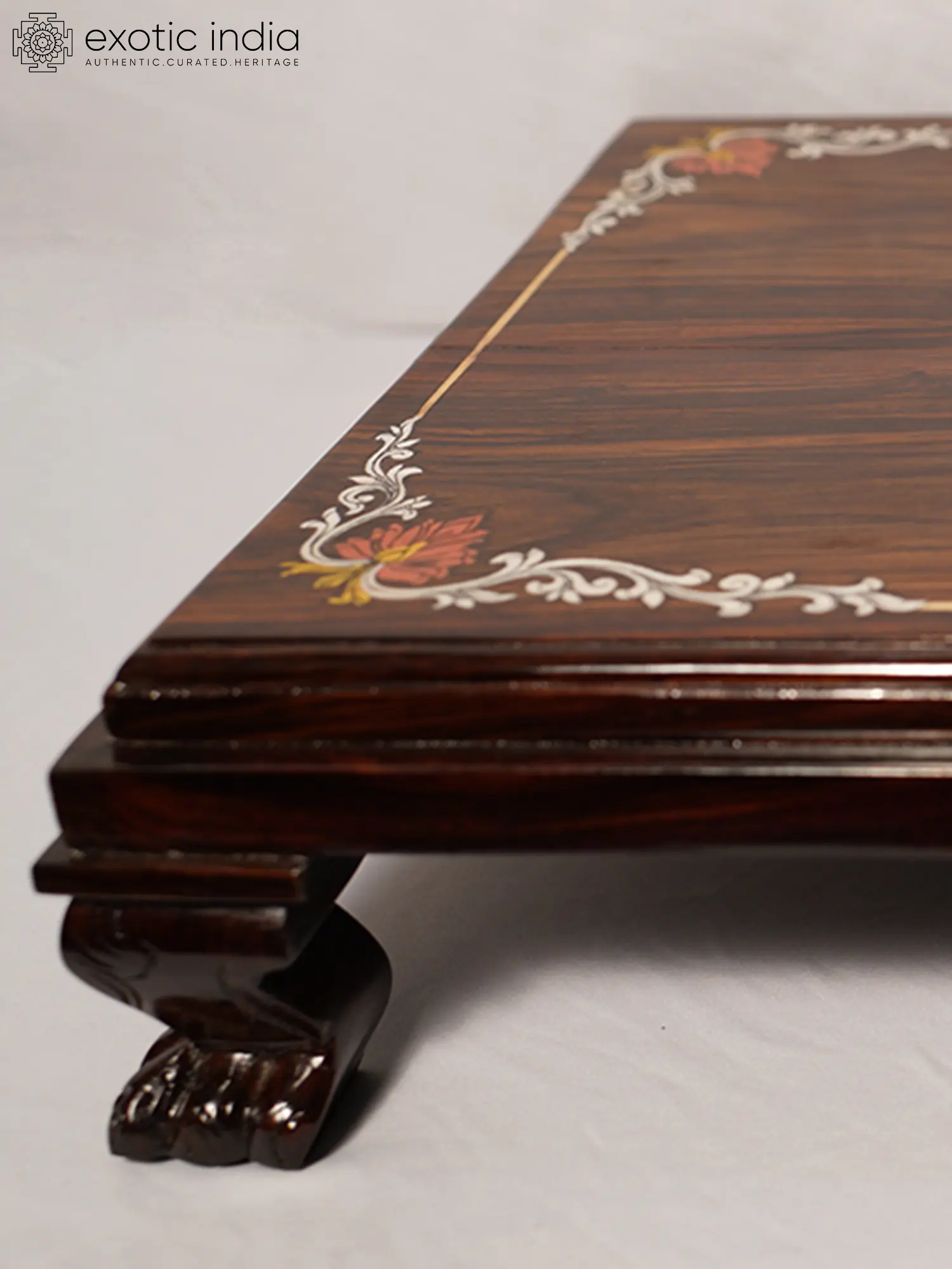 8" Square Shape Lotus Design Brass Chowki/Pedestal