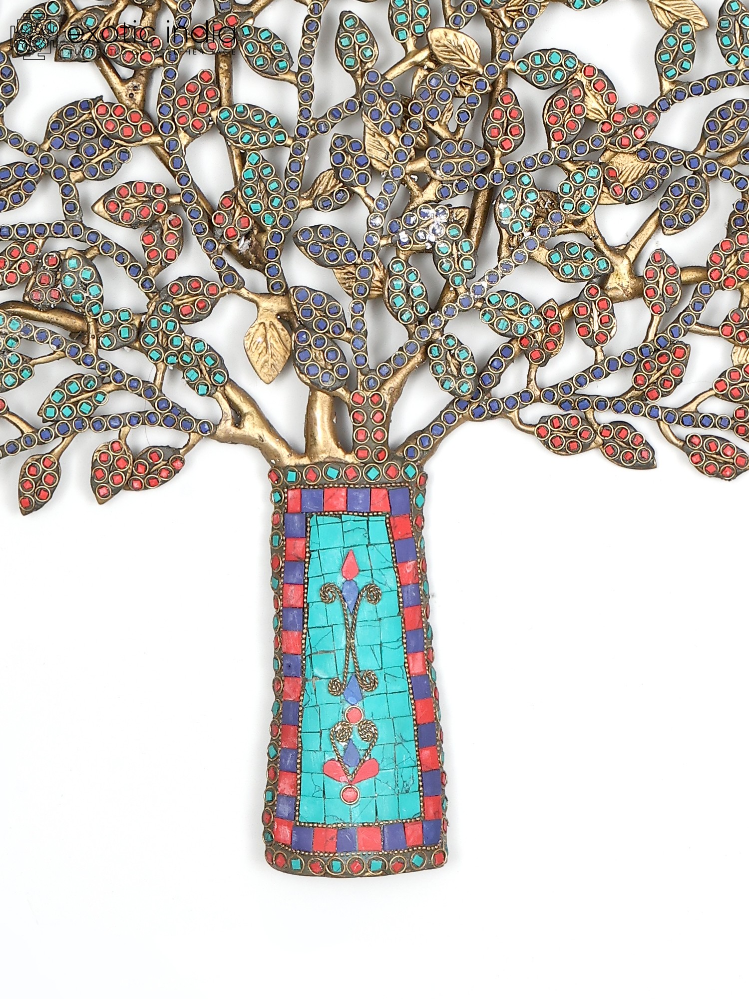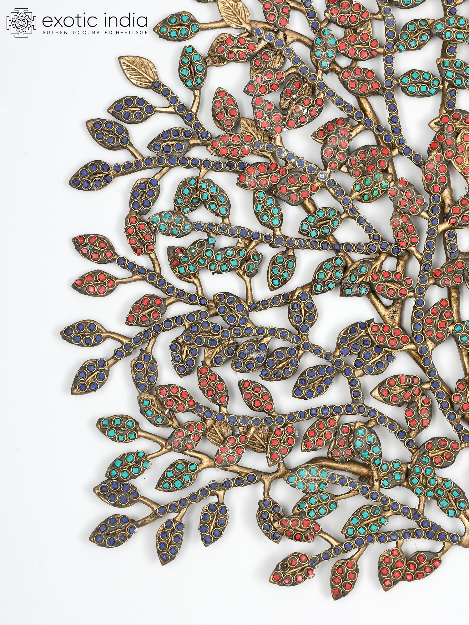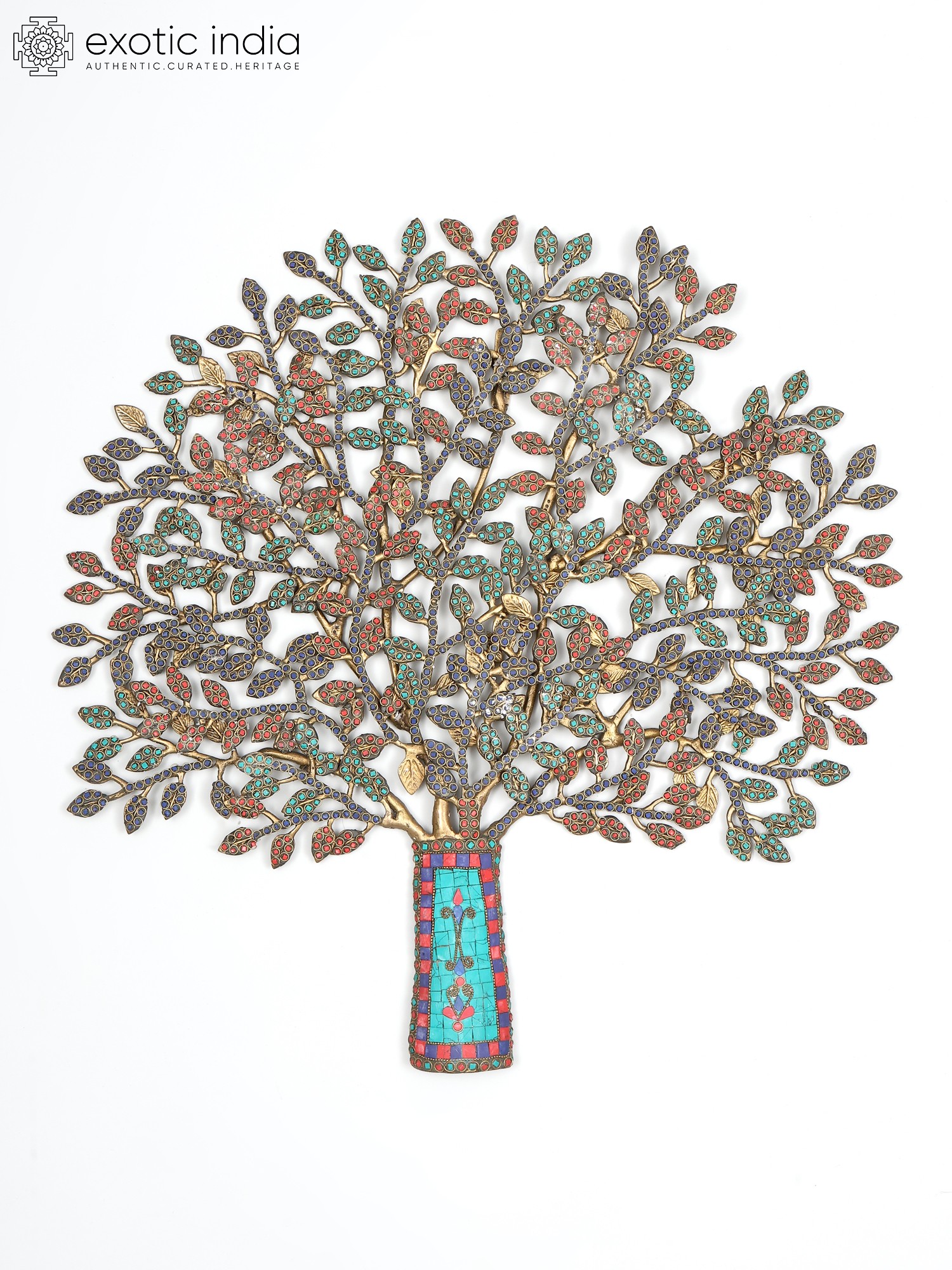 51" Large Wall Hanging Tree of Life with Beautiful Birds | Brass with Inlay Work