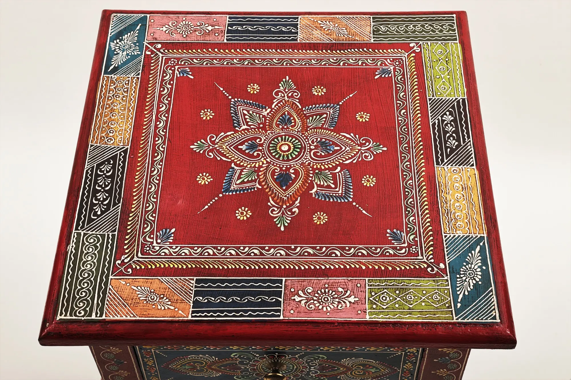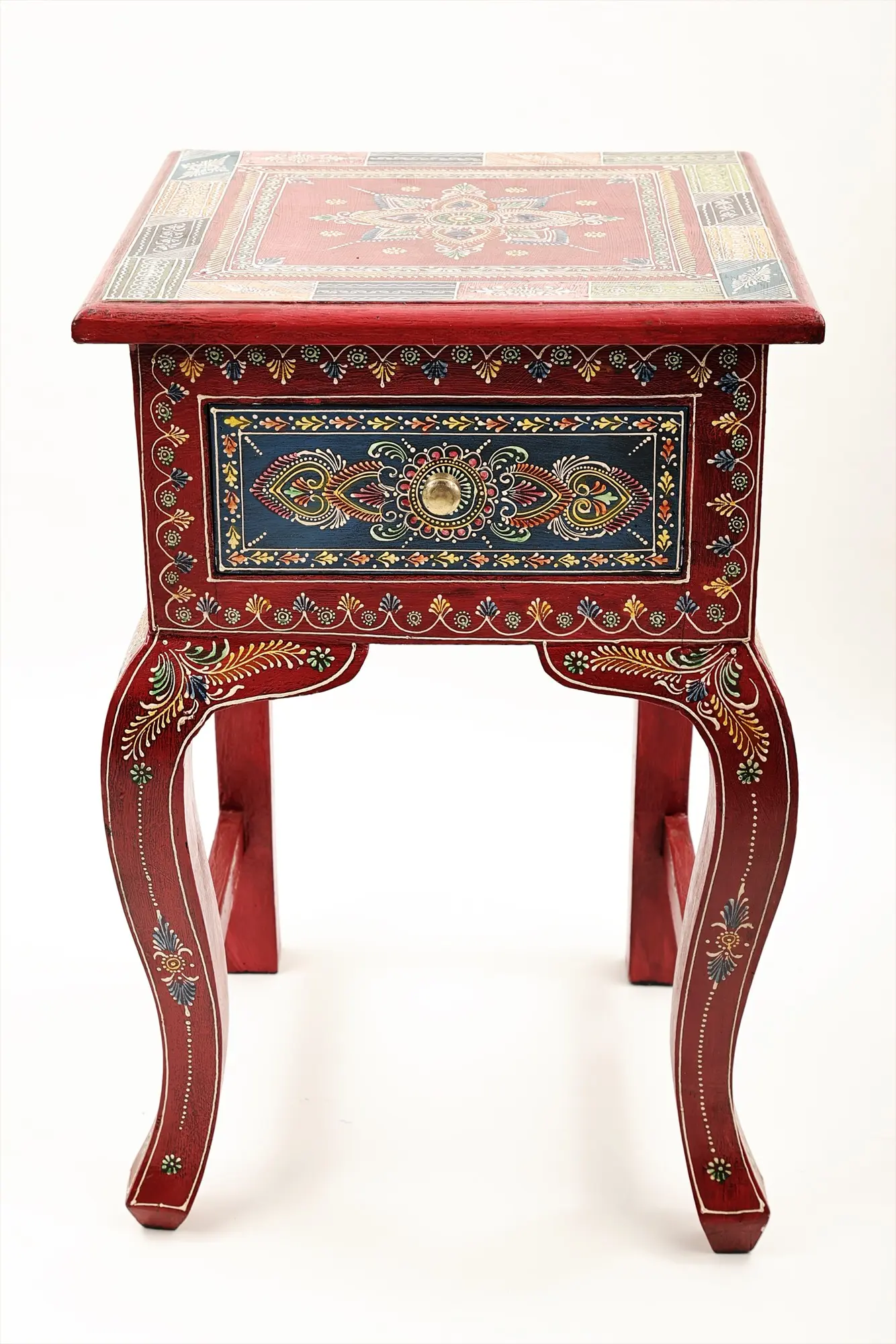 24" Decorative Hand Painted Wooden Side Table with Drawer | Wooden Side Table | Handmade | Made In India