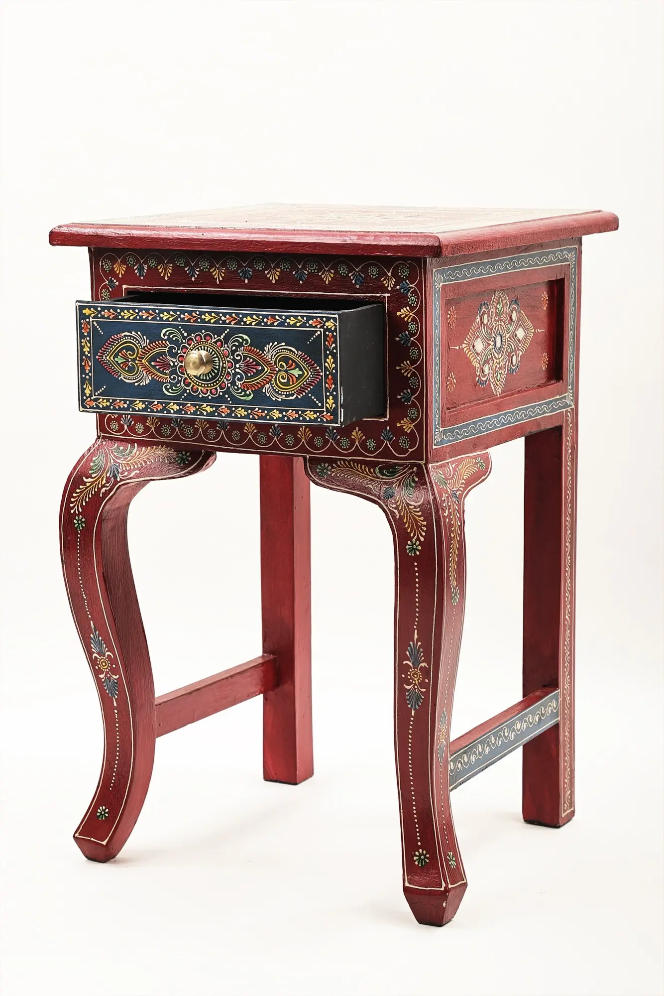 Infuse your living space with the vibrant beauty of handcrafted artistry. This exquisite side table is more than just a functional piece; it's a celebration of traditional techniques and a testament to the skill of artisans. Each brushstroke tells a story, adding character and personality to your home. The rich, warm tones of the finish create a welcoming ambiance, while the intricate hand-painted designs draw the eye and spark conversation.