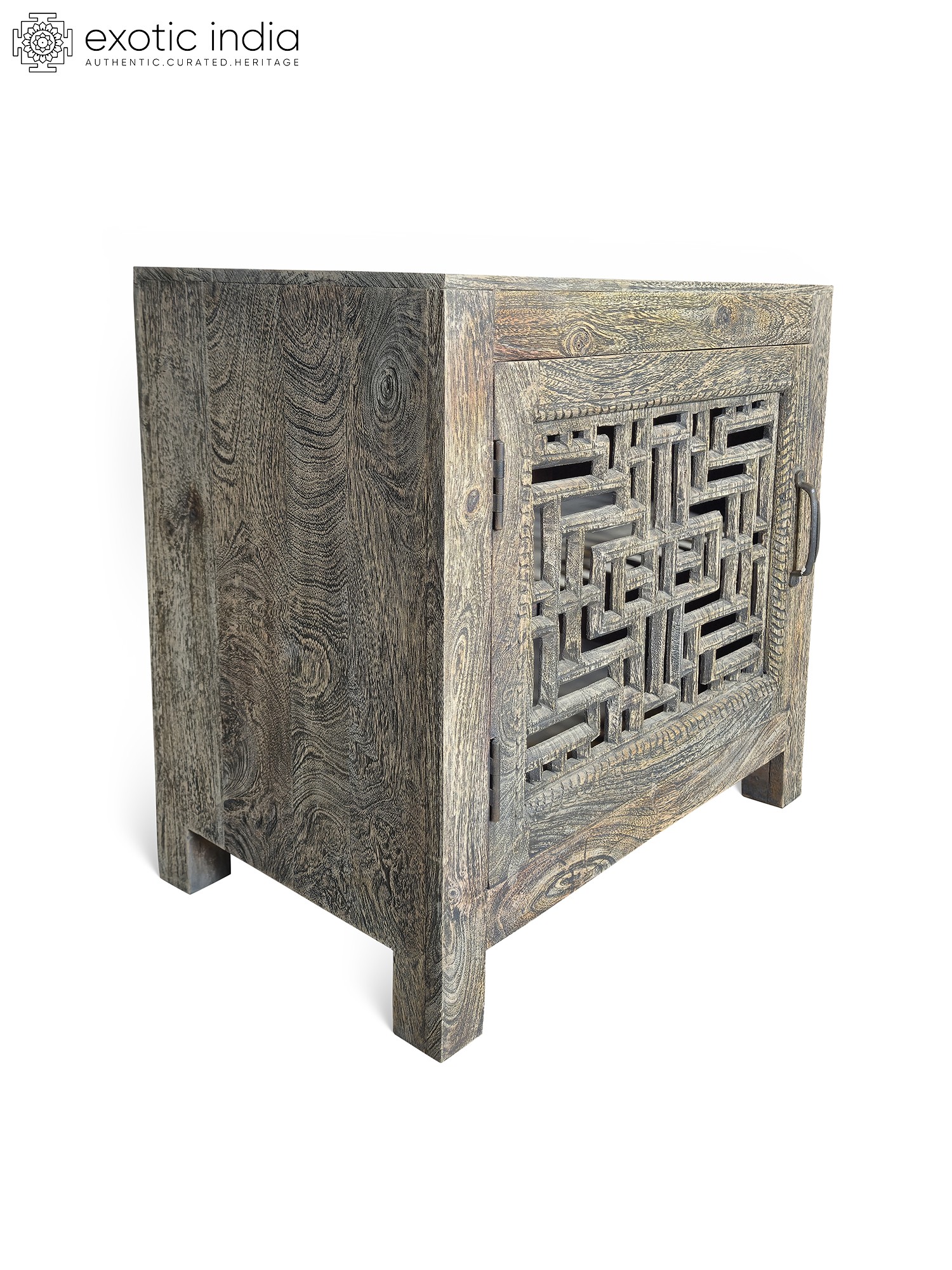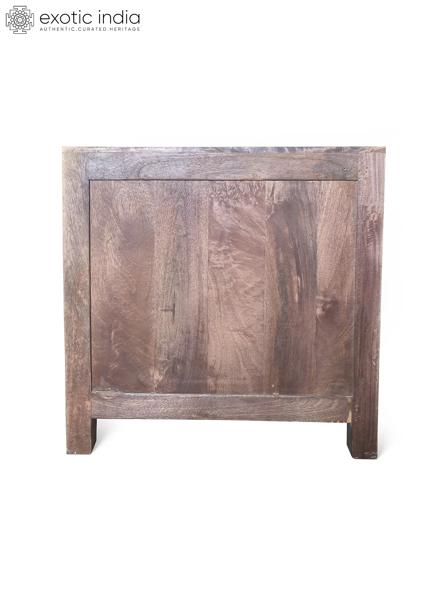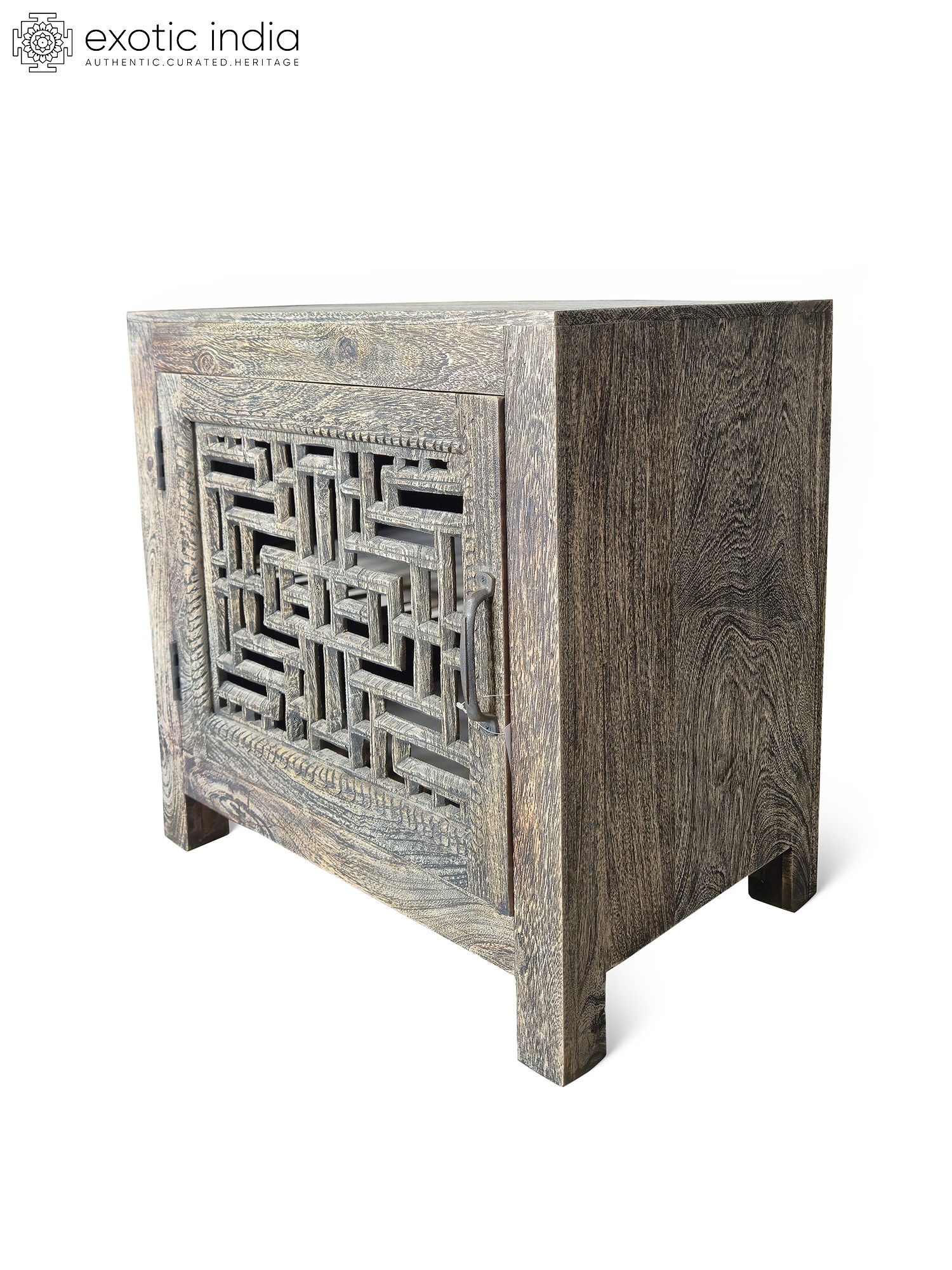 44" Geometric Handcrafted Traditional Indian Mango Wood Double Door Cabinet