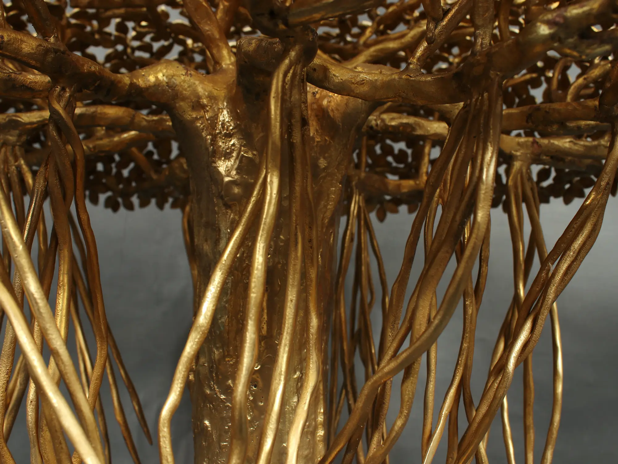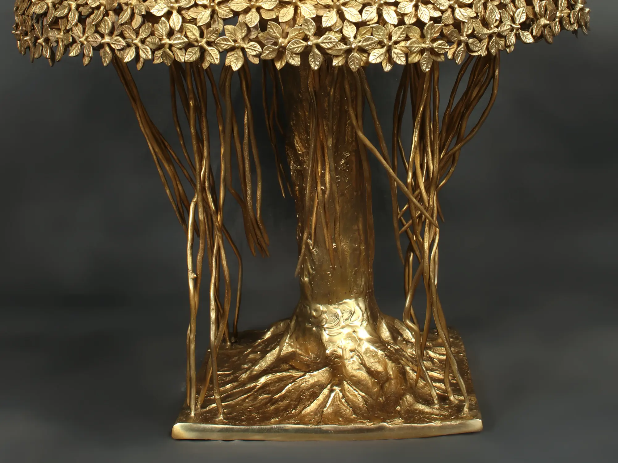 Brought to you from our exclusive collection of brass decor, this banyan tree is a gorgeous showpiece to keep. With an umbrella-like canopy of star-shaped leaves spread in the shed, extends a trunk of continuity as the aerial roots hang all the way down from branches that symbolize the naturalistic principle of universal connectivity - where only the depth of roots takes you to the heights of seven skies!