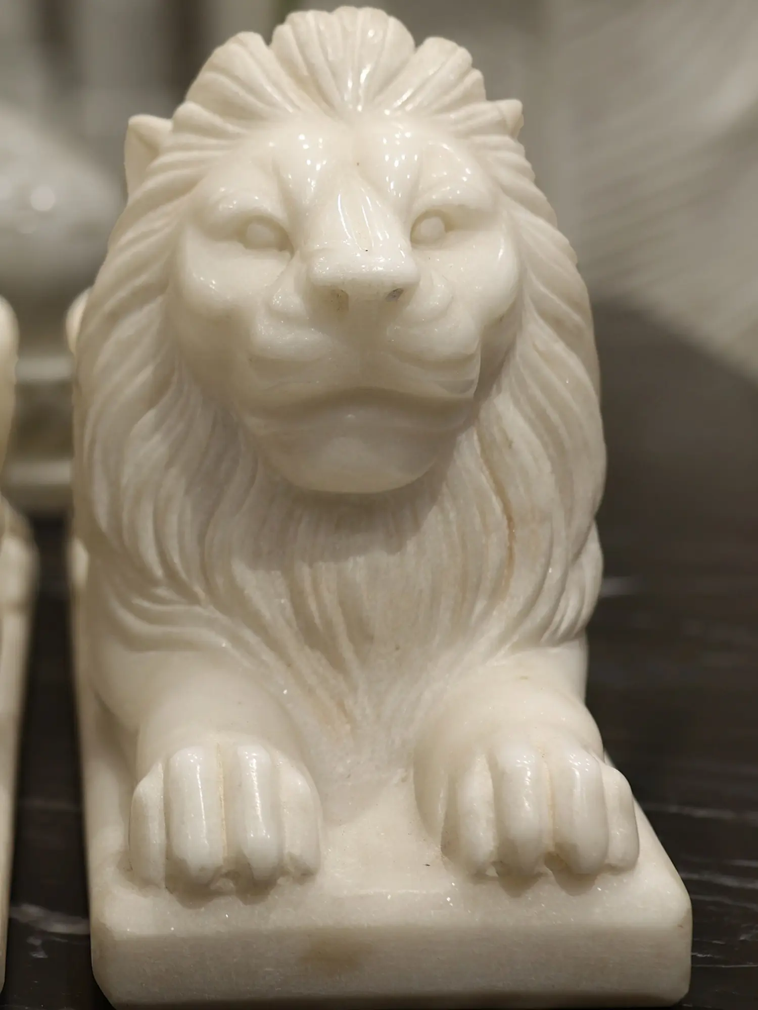 Hailing from India, a land steeped in rich artistic traditions, these lion sculptures are a testament to the enduring skill of master artisans. The carving process, passed down through generations, ensures that each piece is not merely an object but a work of art, imbued with soul and narrative. The choice of white marble adds a timeless elegance, allowing the inherent beauty of the material to complement the powerful form of the lions. Whether placed as sentinel figures at an entrance, as commanding accents on a mantelpiece, or as distinguished additions to a curated collection, these statues are sure to captivate and inspire.