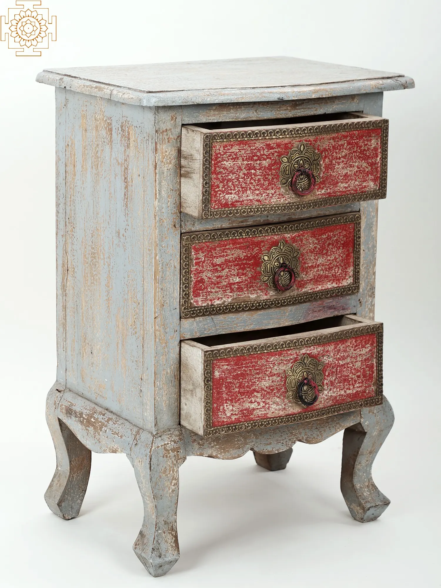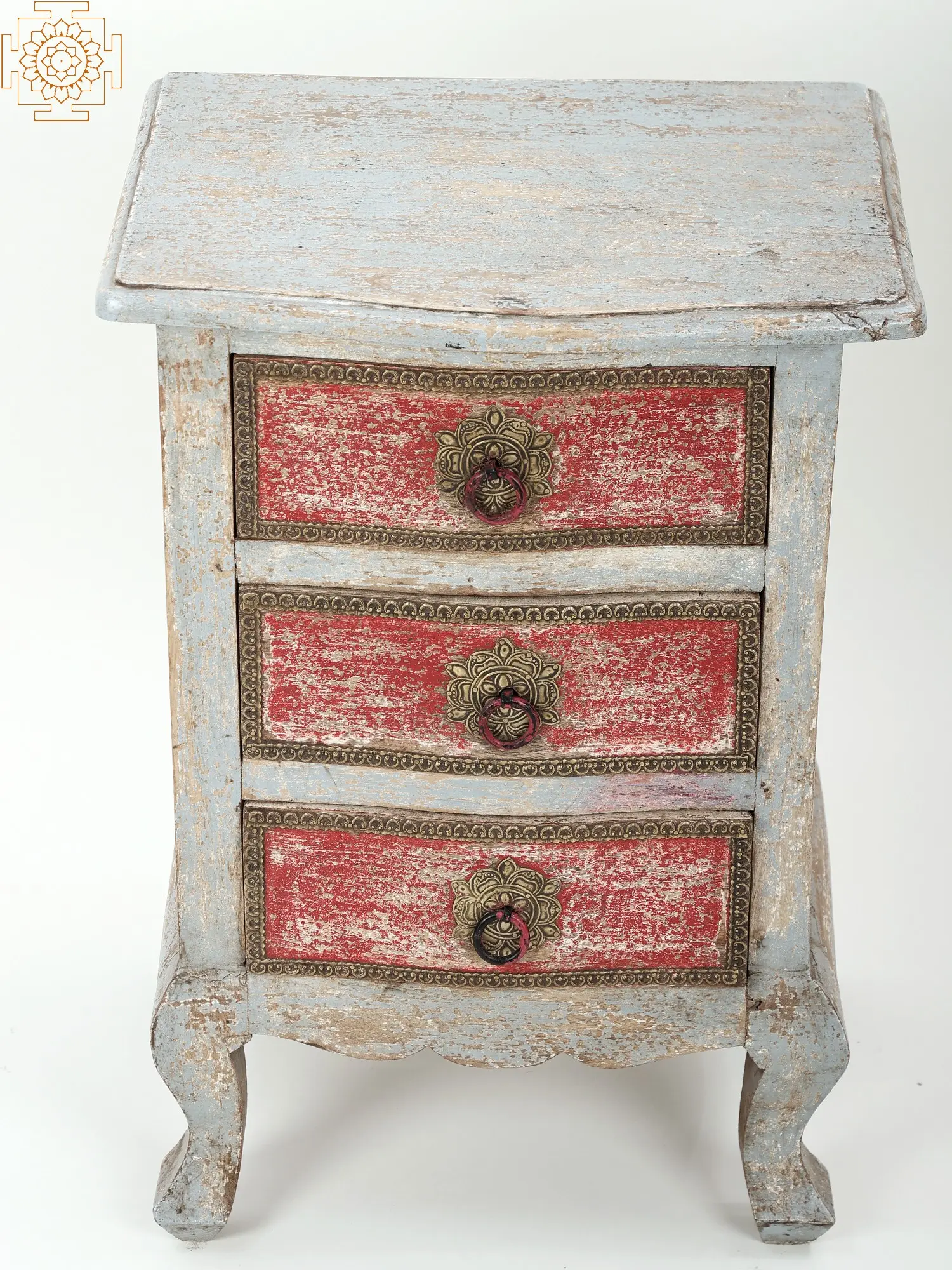Enhance your living space with the elegance of our Wooden Side Table, a handmade piece that seamlessly blends functionality with Indian design aesthetics. This side table is not just furniture; it's a statement of art and practicality. The wooden construction, blend of passionate red - passive white and three drawers add a touch of traditional Indian design to your decor. Let this piece speak function and style to your living room or bedroom, showcasing the beauty of Indian craftsmanship.