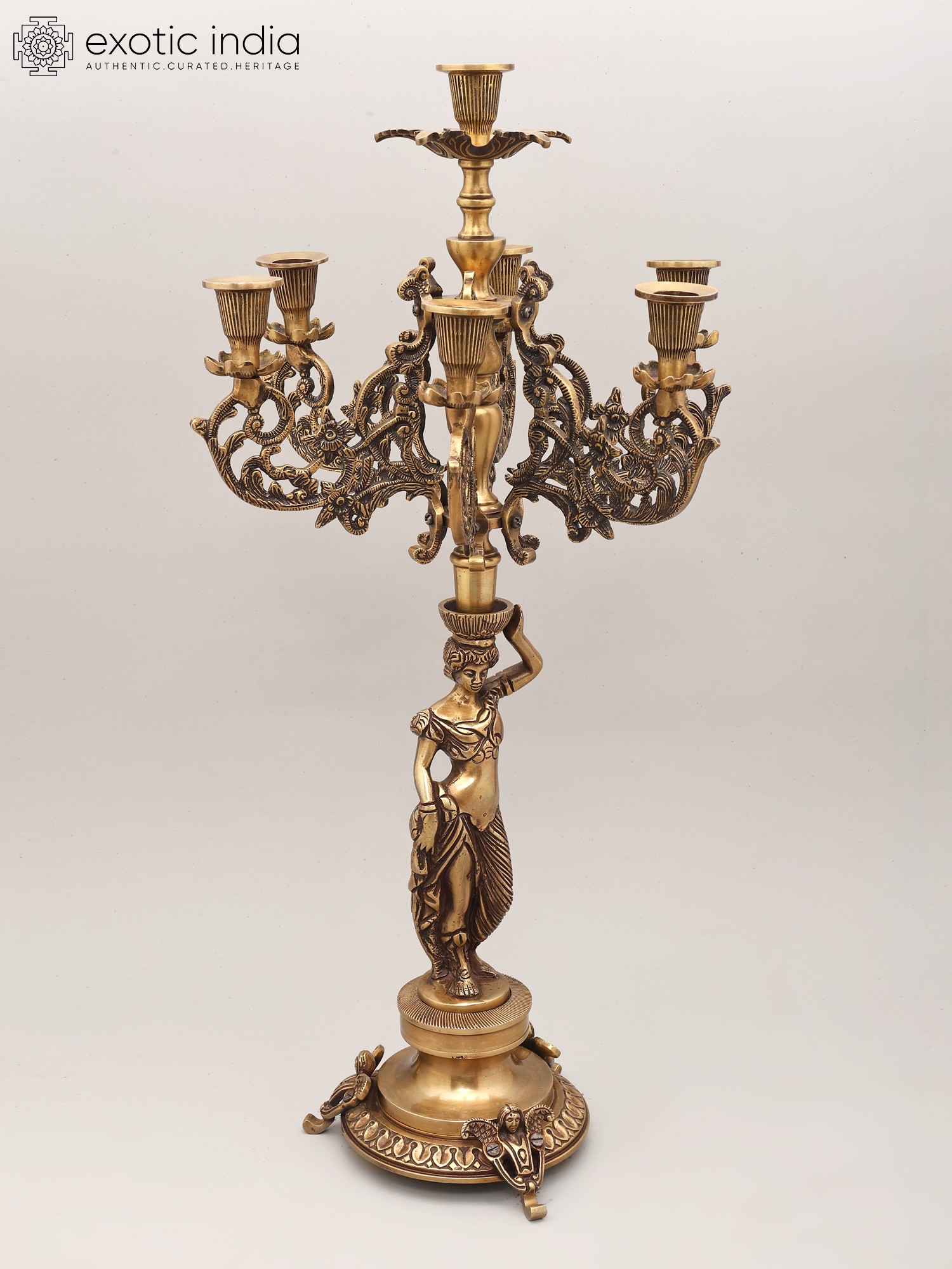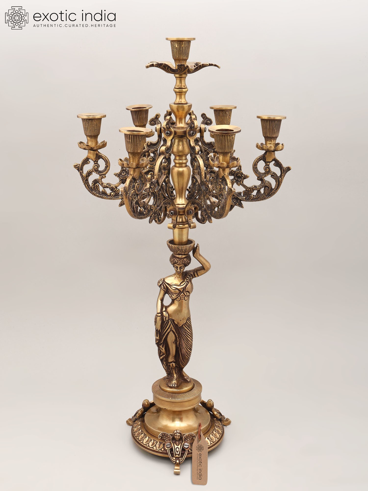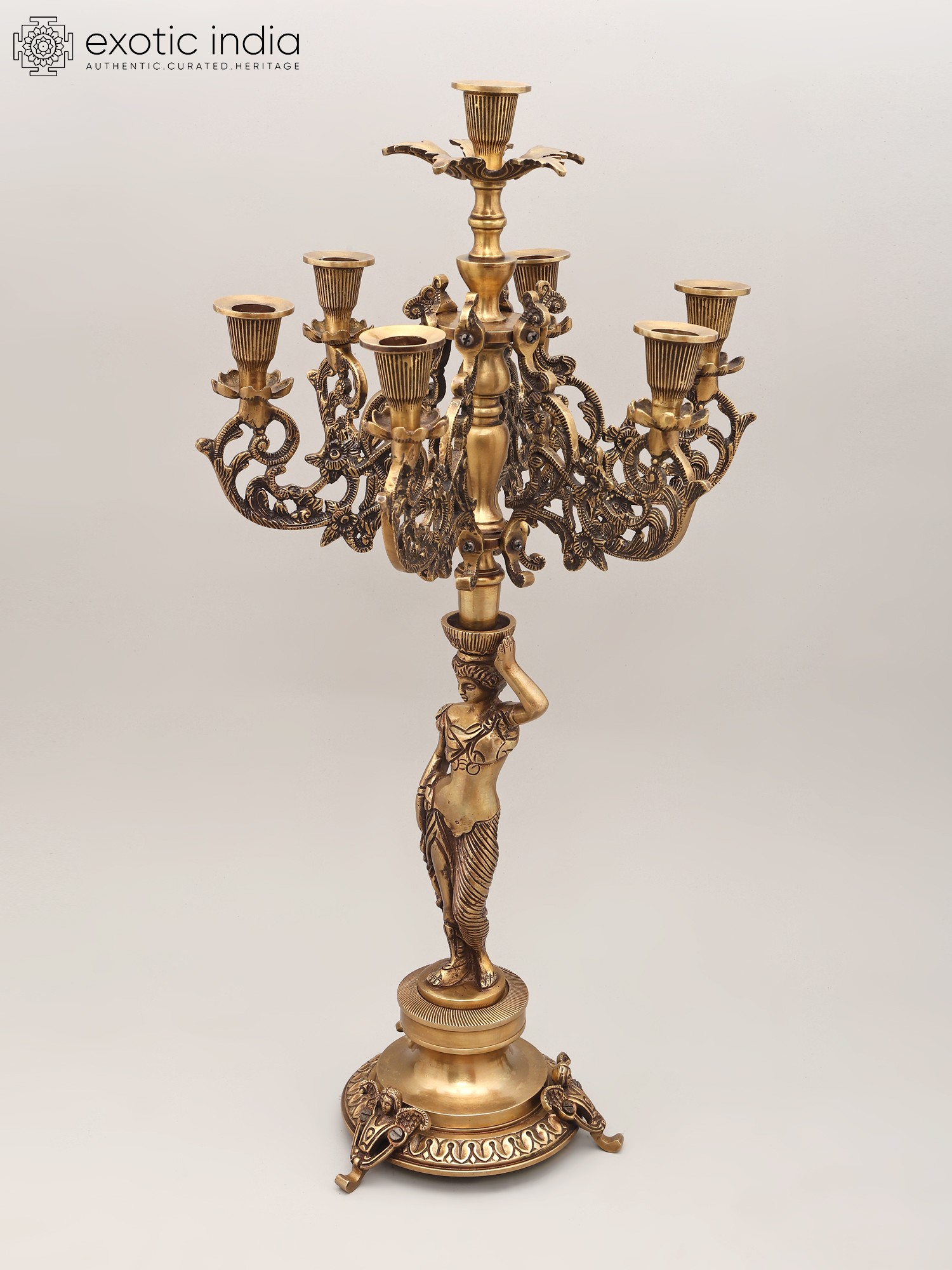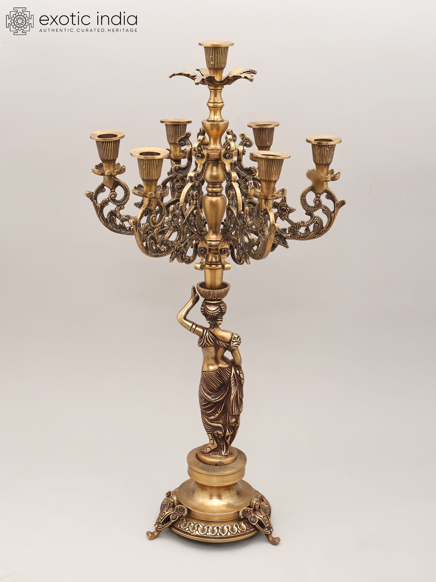 11" Handcrafted Brass Designer Candle Holder | Home Decor