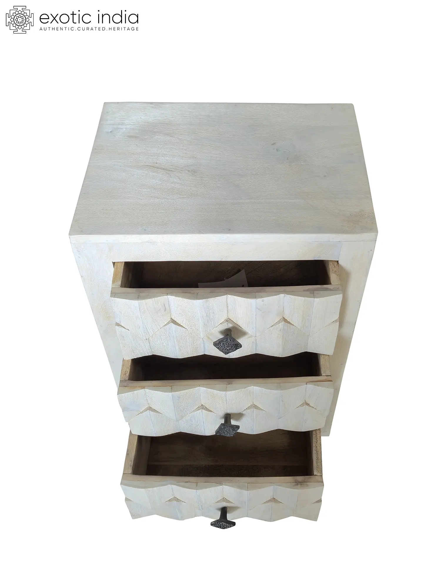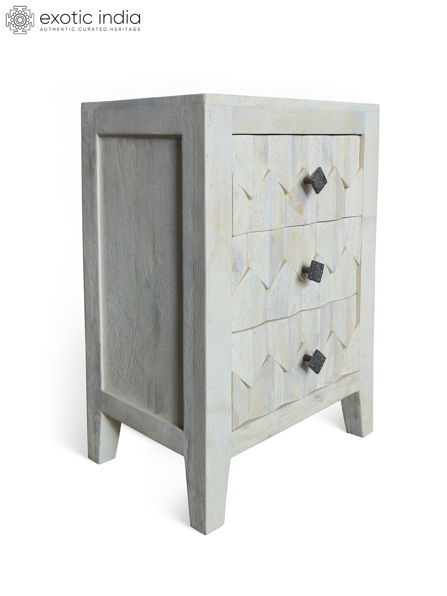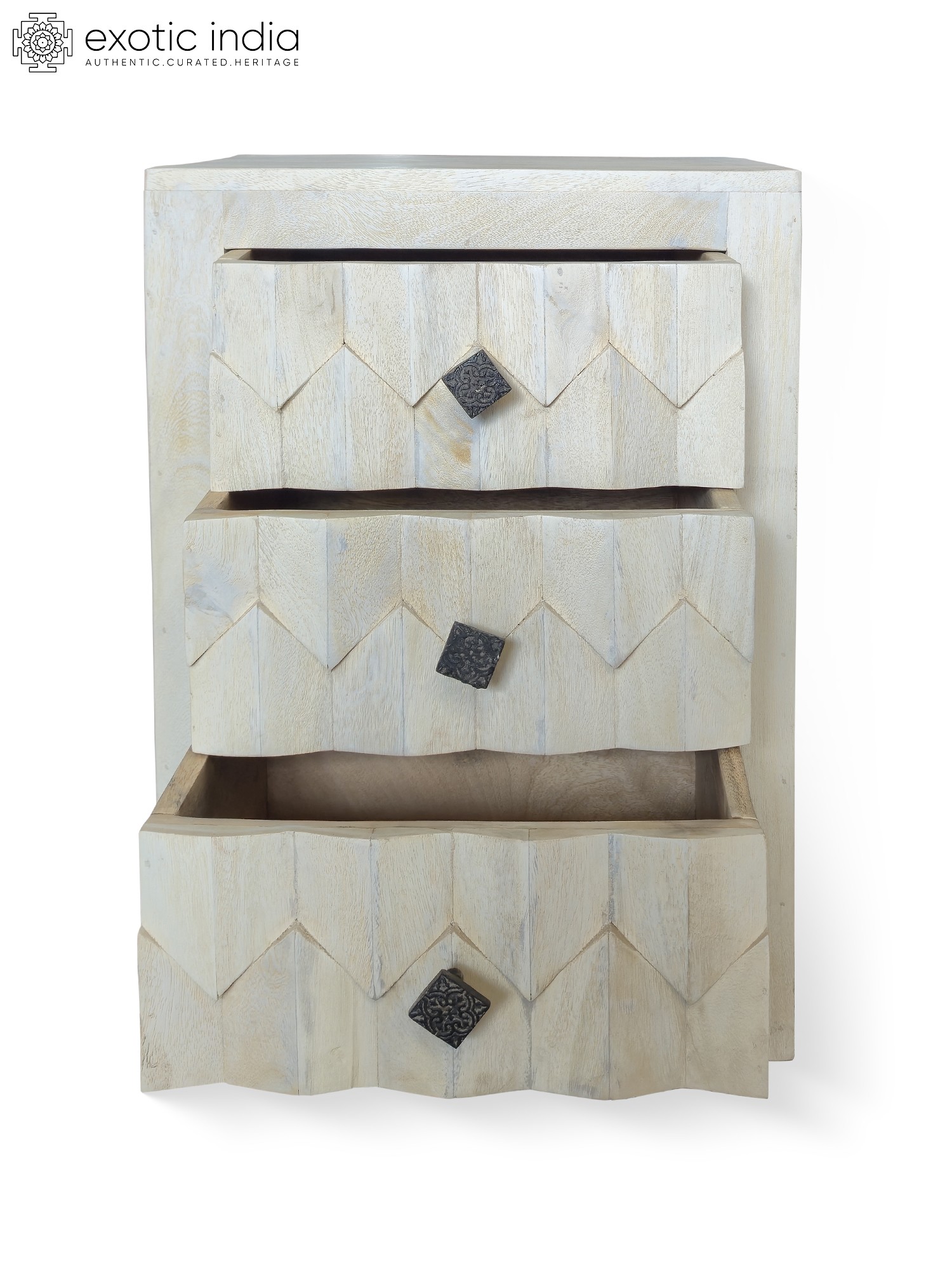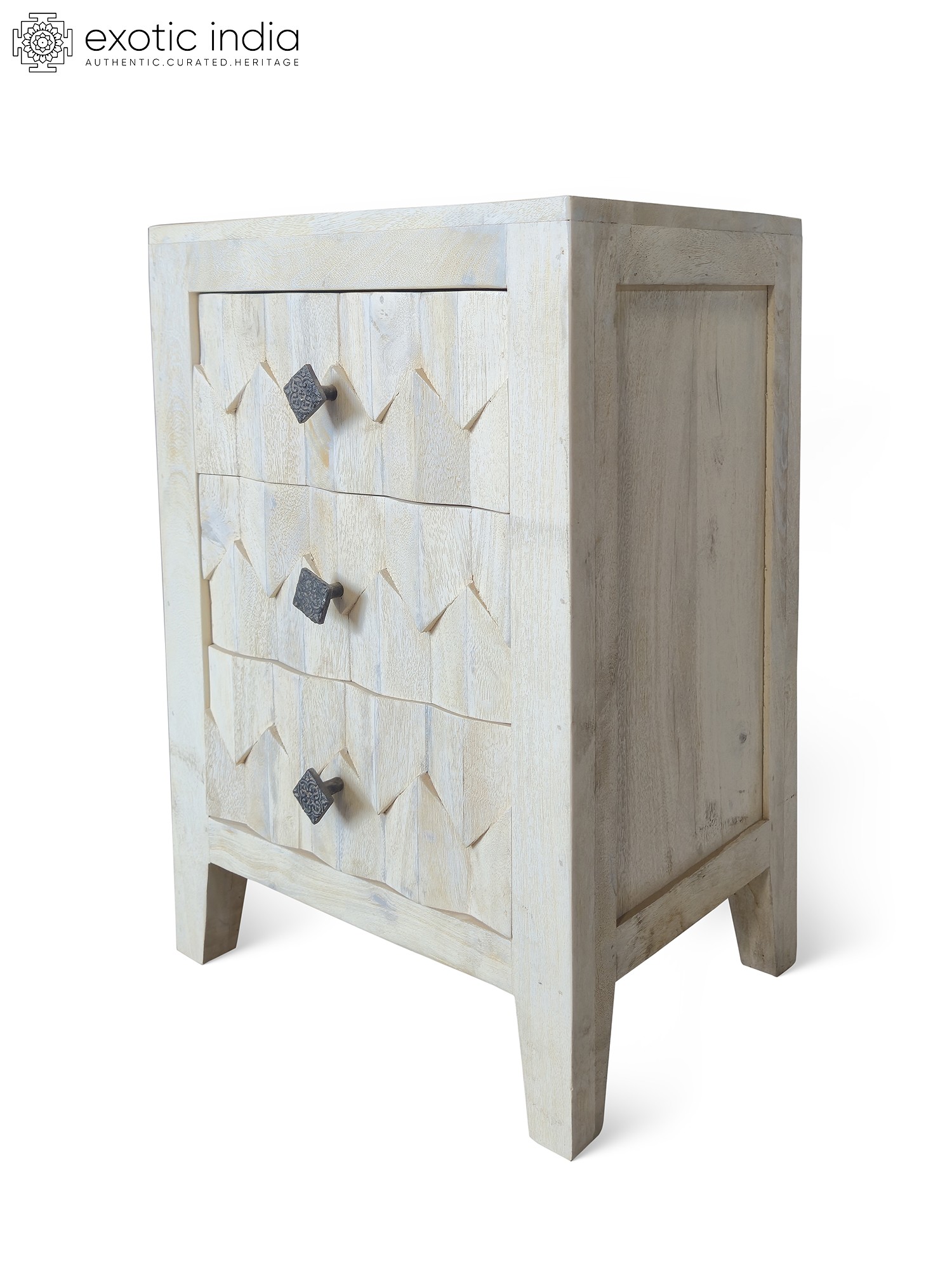26" Traditional Design Hand Carved Floral Motifs Mango Wood Cabinet