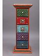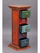 Jodhpur is a place that has cradled a huge amount of crafts. Here, people find the most unique art pieces that can be used as home decor or collectibles. This Decorative Hand Painted Wooden Side Table with Drawers is a fine example of Jodhpur craftsmanship. The Drawer is painted in bright colors and is decorated with different patterns with different colors on each drawer. The top of the table is decorated with a fine pattern typical of the Jodhpur style of painting on furniture. The patterns resemble the Aipan art of Uttarakhand and Alpona of West Bengal. The fine white lines and dots create a beautiful image on the colorful background. This table with drawers is a useful home decor item that can also qualify as an art piece.