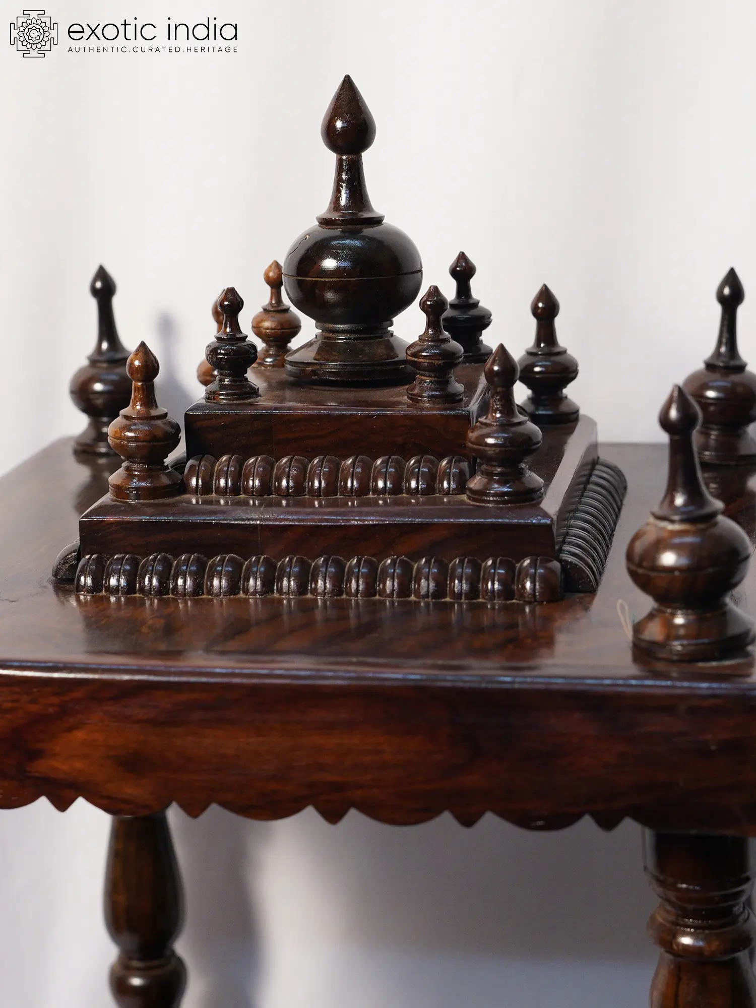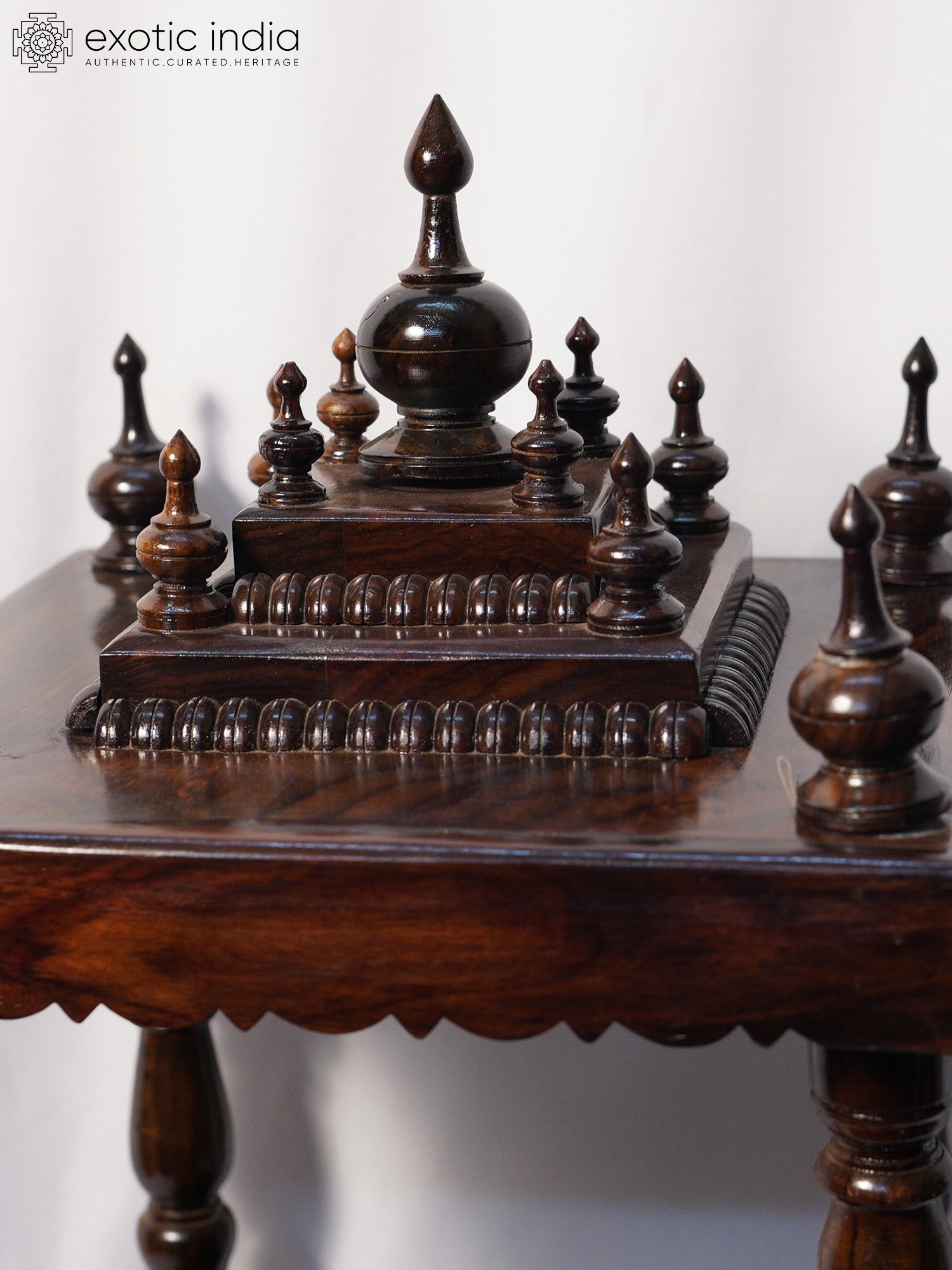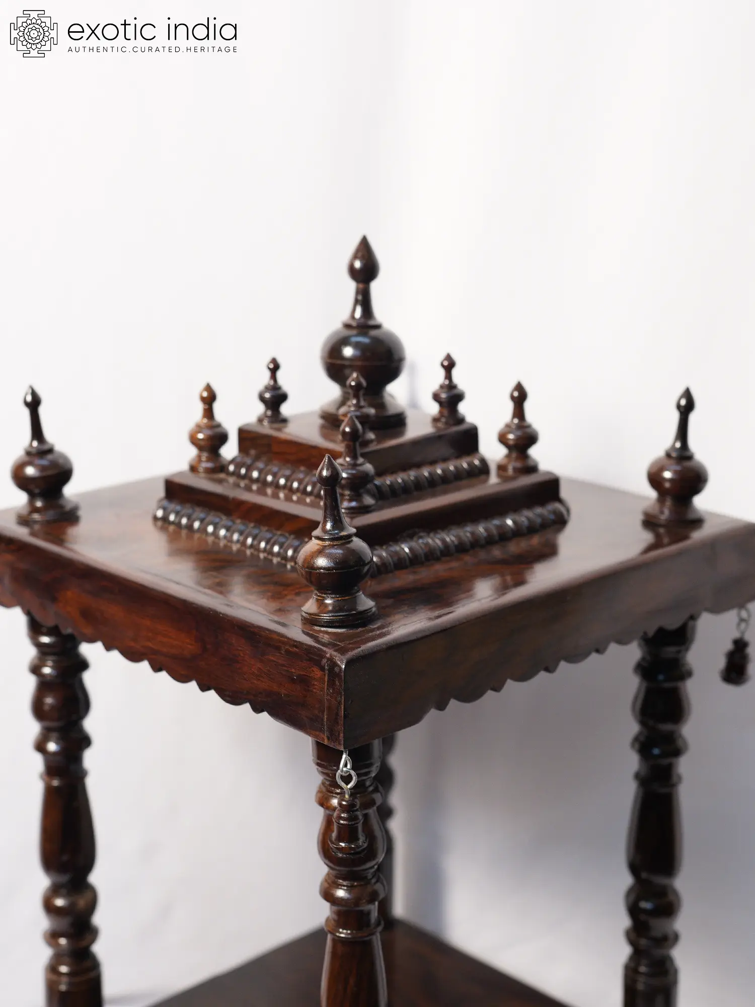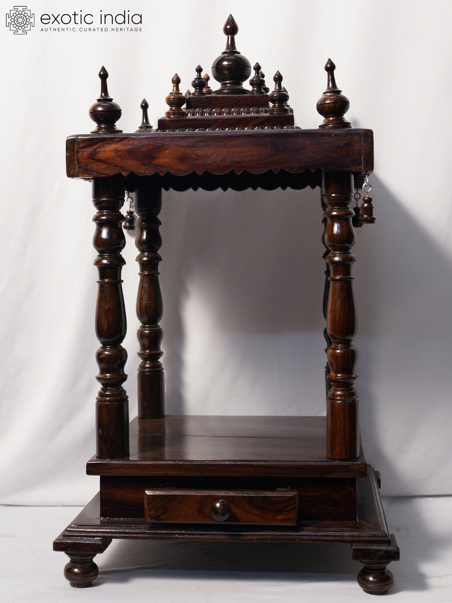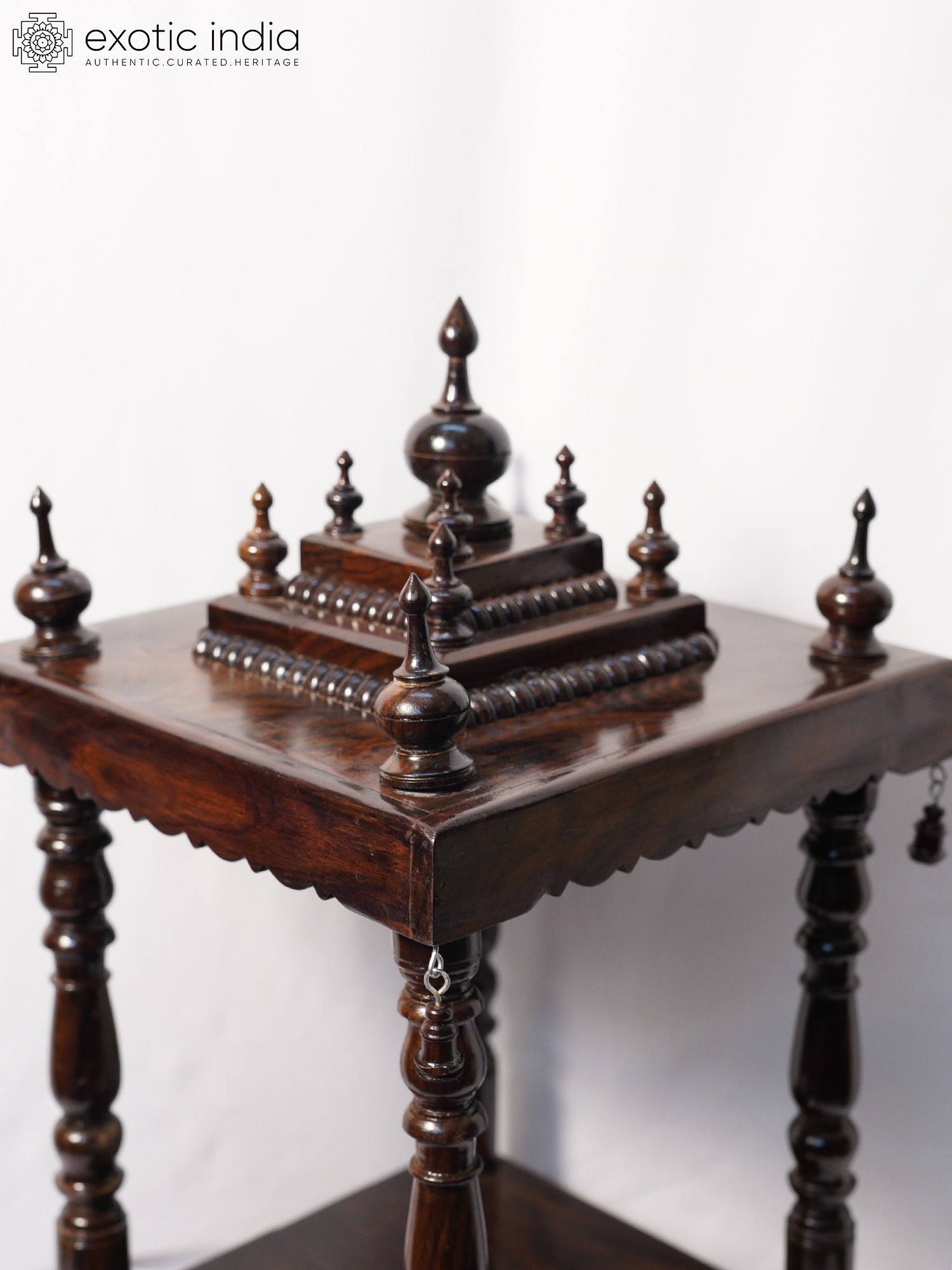 The rich, warm tones of rosewood enhance the beauty and longevity of this temple. Rosewood, known for its durability and fine grain, has been meticulously shaped and polished to create a stunning visual centerpiece. The open design invites natural light and allows for easy placement of idols and ritual items, creating an inviting and harmonious worship space. Each curve, carving, and contour reflects the artisan’s dedication to creating a sacred object of lasting value.