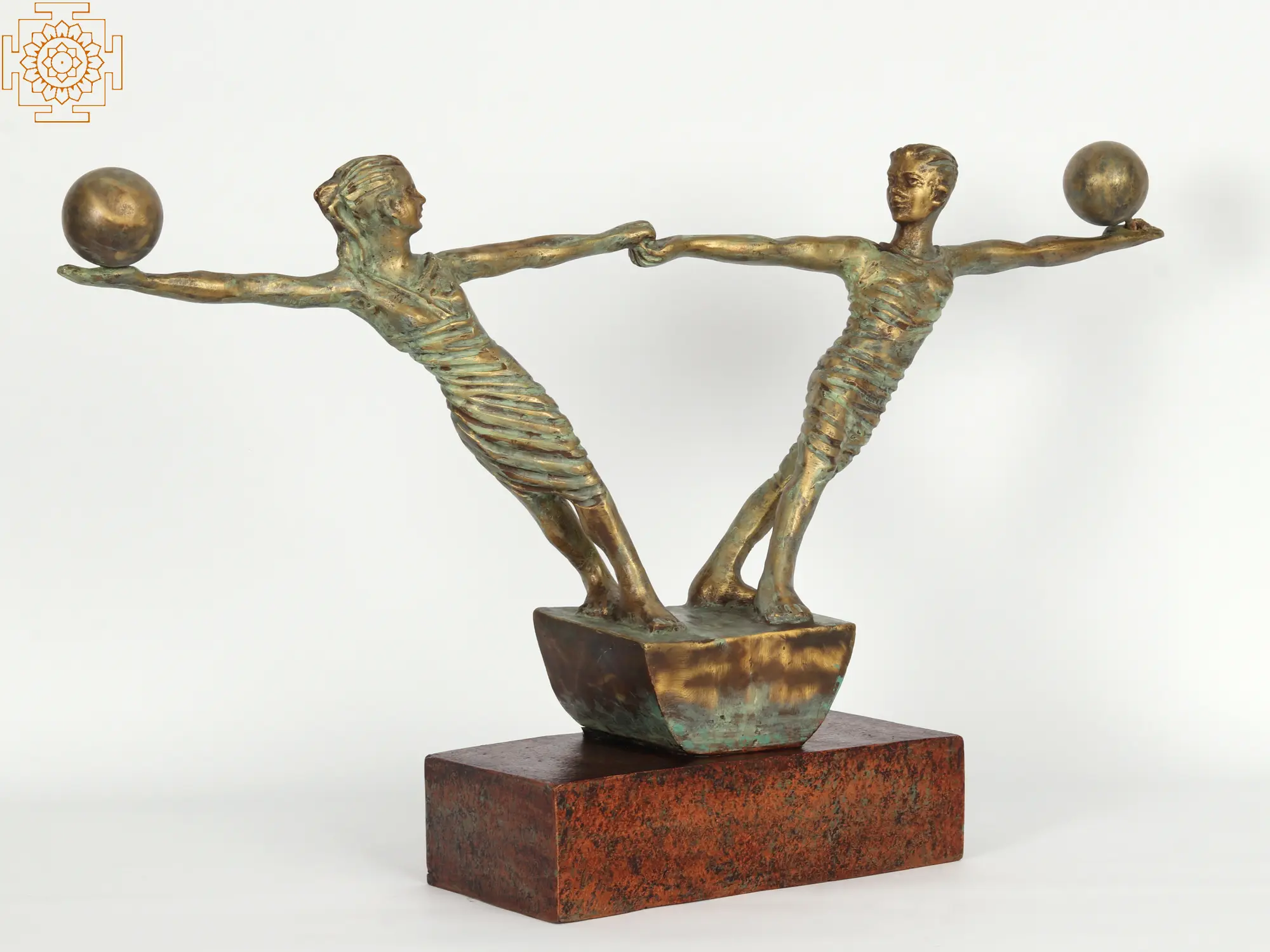 Through this enchanting bronze sculpture, experience the essence of eternal love shared by two souls who are intertwined with each other. Despite life's responsibilities and challenges, they always find time for one another, never letting go of each other's hands. This beautiful representation of unwavering love depicts a strong couple united in their journey of life. The male and female statues, slightly leaning towards each other with a ball in their hands, symbolize their shared responsibilities in life. Yet, their hands remain tightly held, signifying the unbreakable bond they share. This statue is a timeless symbol of true love, a reminder that no matter what hurdles come their way, their love will always prevail.