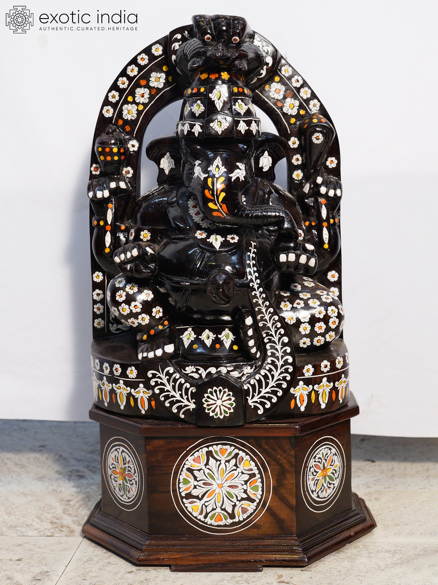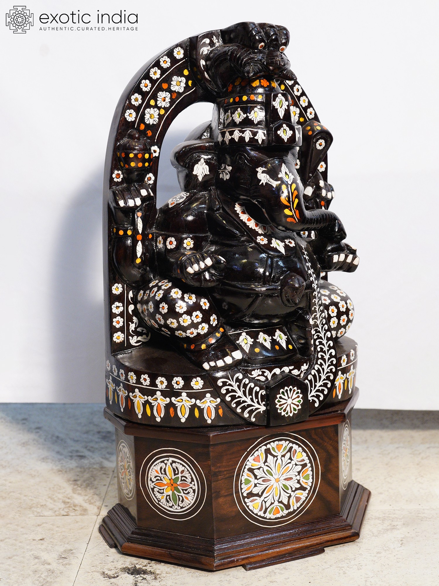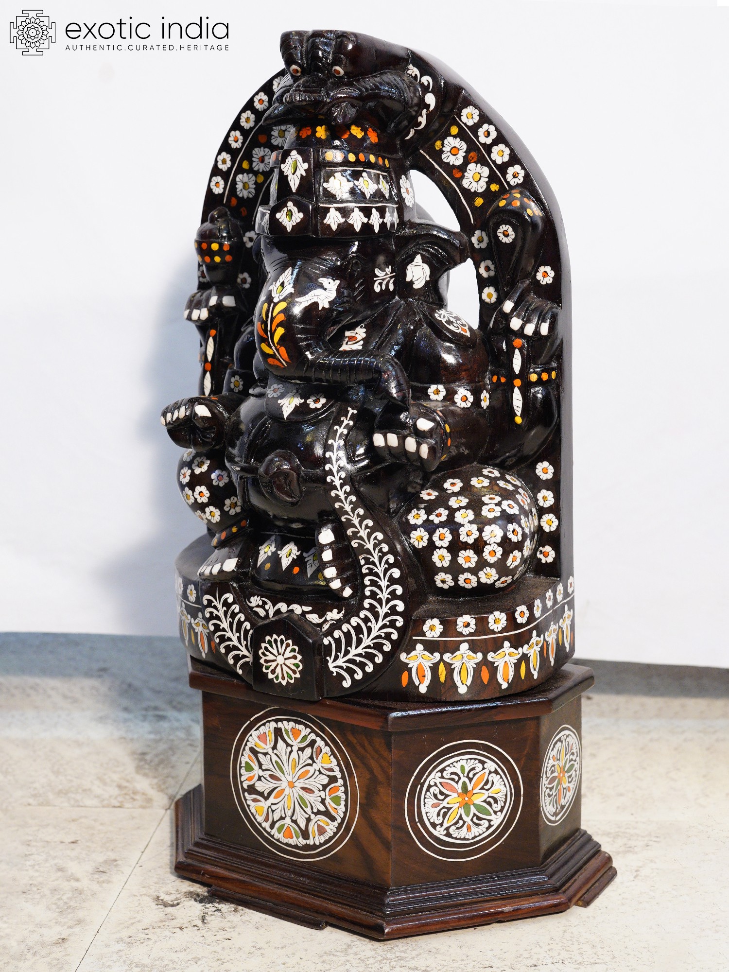 Decorated Royal Elephant with Pedestal (Saddle Carved with Antelope and Floral Motifs)