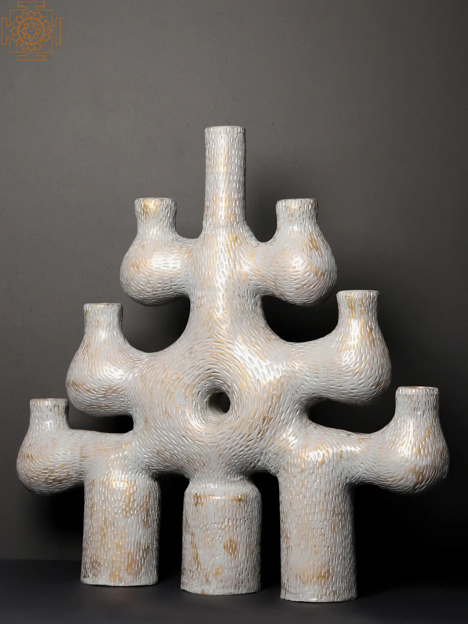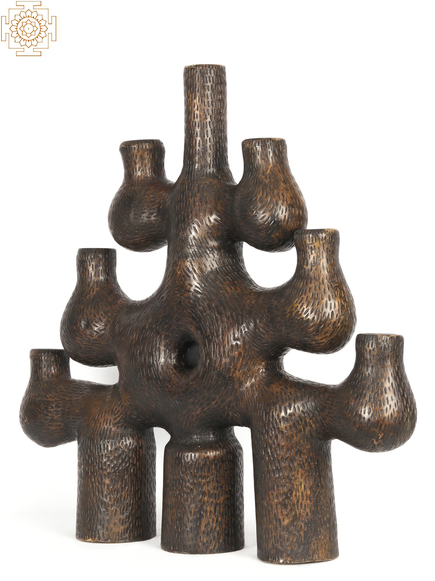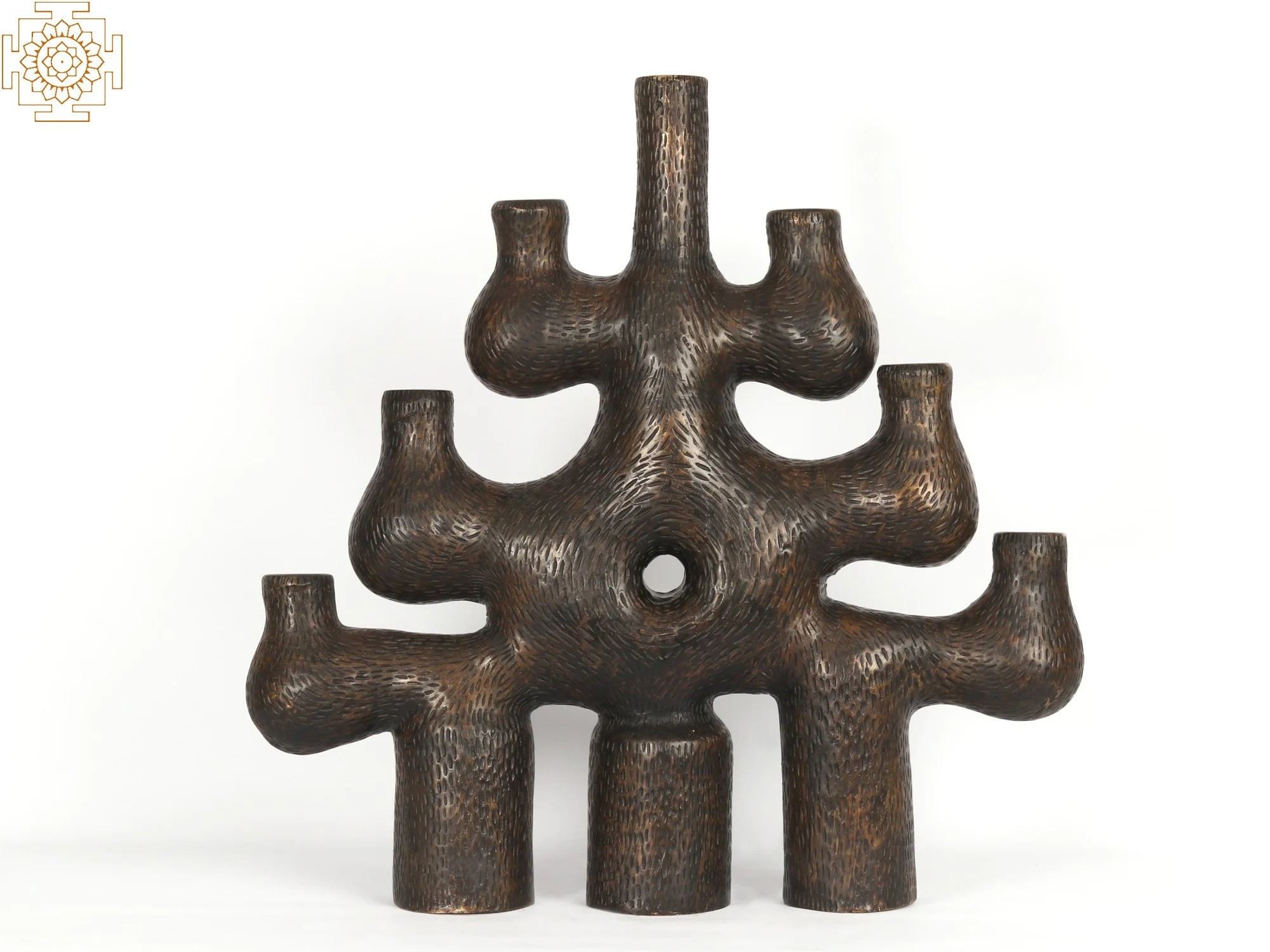 This creative brass candle holder is designed to look like a beautiful tree and has been precisely constructed to reflect elegance and artistic refinement. Its structure is reminiscent of a tree with upward branches, emphasizing grace and upward expansion. Because there are no leaves, the candlelight may throw stunning patterns and create a compelling environment. The lines on the trunk that resemble natural tree patterns add to the candle holder's aesthetic appeal. This one-of-a-kind sculpture combines nature-inspired design with functional beauty, making it a visually appealing centerpiece or decorative addition in any area. The brass candle holder's tree-like shape promotes contemplation and celebrates the inherent beauty of simplicity and organic shapes.