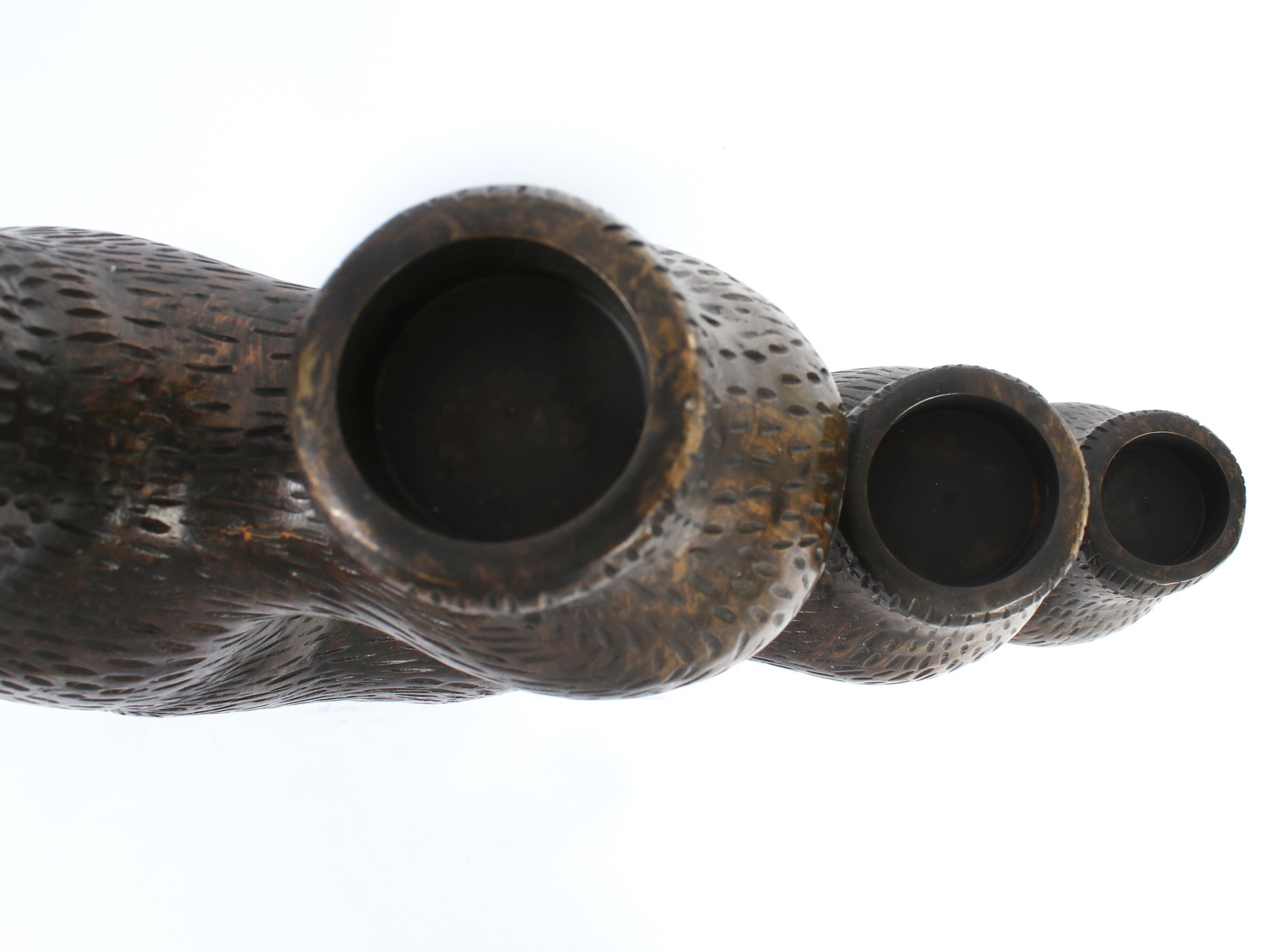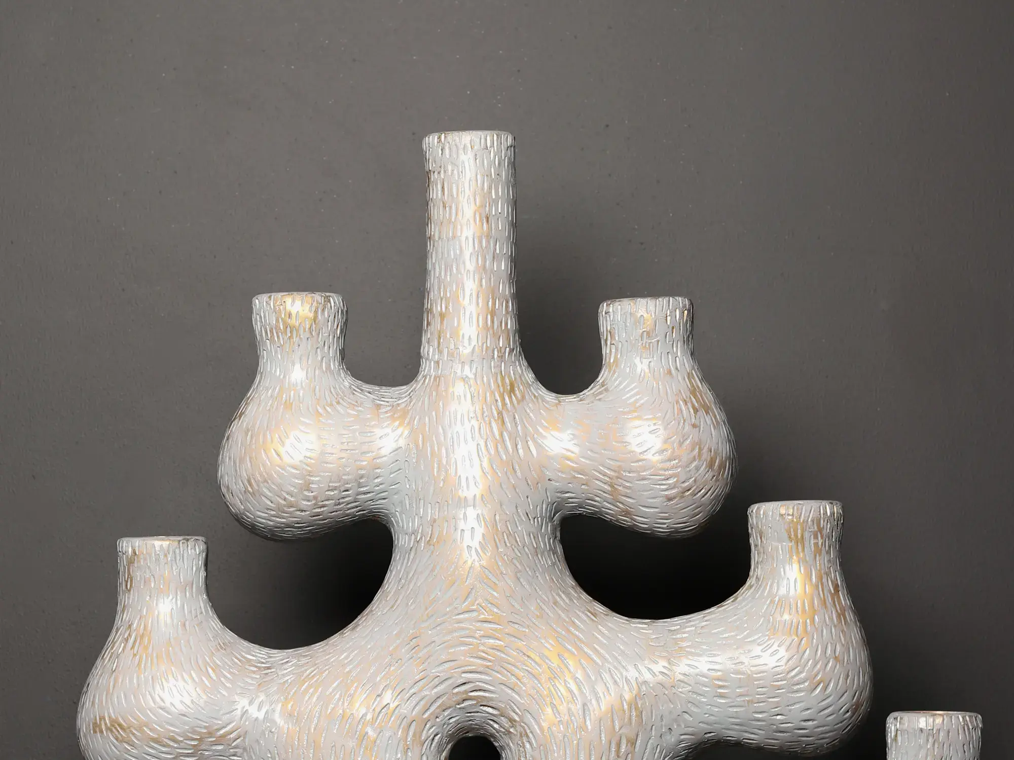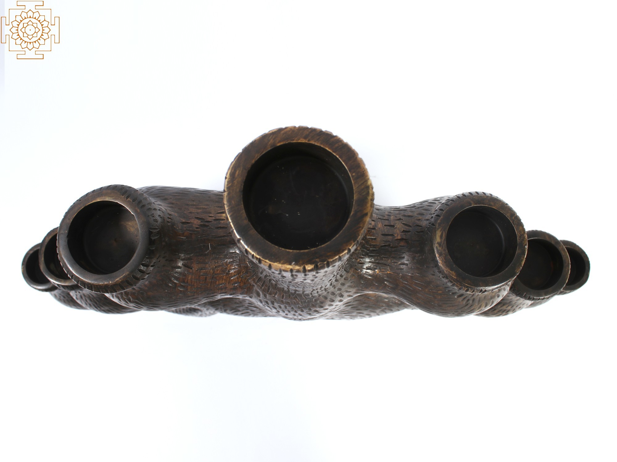 This creative brass candle holder is designed to look like a beautiful tree and has been precisely constructed to reflect elegance and artistic refinement. Its structure is reminiscent of a tree with upward branches, emphasizing grace and upward expansion. Because there are no leaves, the candlelight may throw stunning patterns and create a compelling environment. The lines on the trunk that resemble natural tree patterns add to the candle holder's aesthetic appeal. This one-of-a-kind sculpture combines nature-inspired design with functional beauty, making it a visually appealing centerpiece or decorative addition in any area. The brass candle holder's tree-like shape promotes contemplation and celebrates the inherent beauty of simplicity and organic shapes.