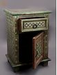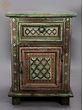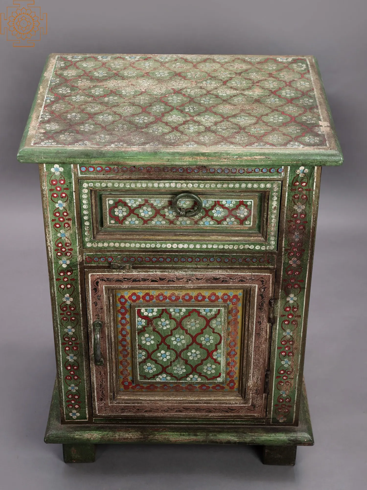 The compact yet substantial size of this cabinet makes it incredibly versatile. It’s perfectly suited as a bedside table, offering a convenient surface for a lamp, book, and your nighttime essentials. Alternatively, place it in your living room as an accent piece to store remote controls, coasters, or other living room accouterments. In an entryway, it can serve as a welcoming touch, holding keys, mail, or decorative accents. Its vibrant yet understated color palette and intricate detailing allow it to seamlessly integrate with a variety of décor styles, from bohemian and eclectic to rustic and traditional. This hand-painted wooden cabinet is not merely furniture; it's a piece of art that brings warmth, character, and functional beauty into your living space.