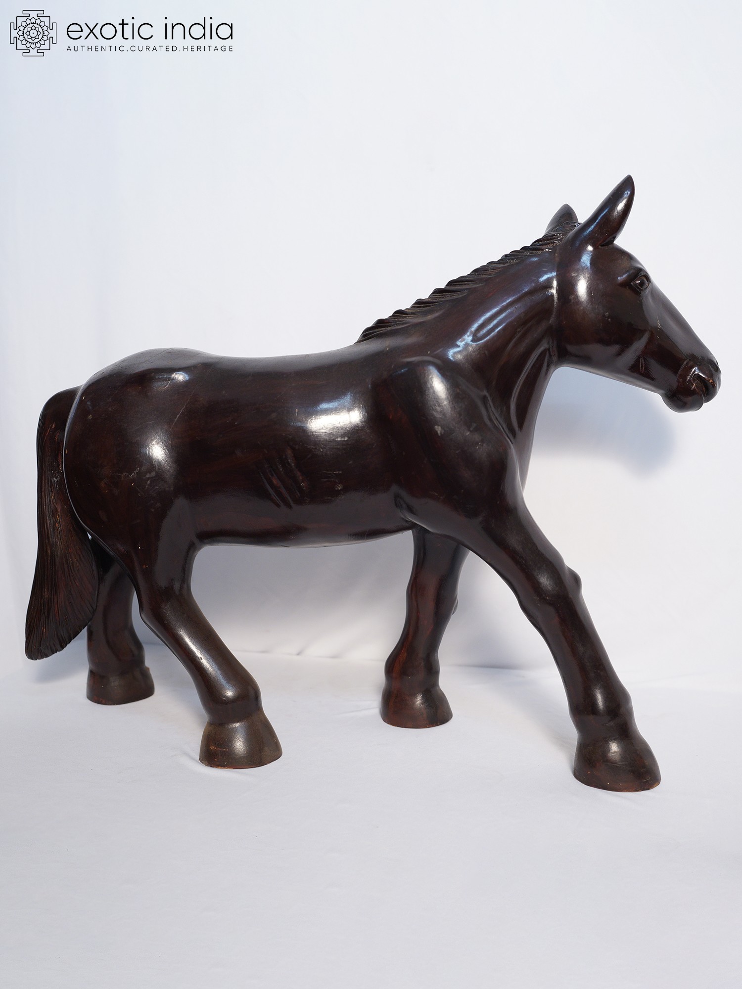 25" Decorative Horse Statue | Wood Carving | Home Decor