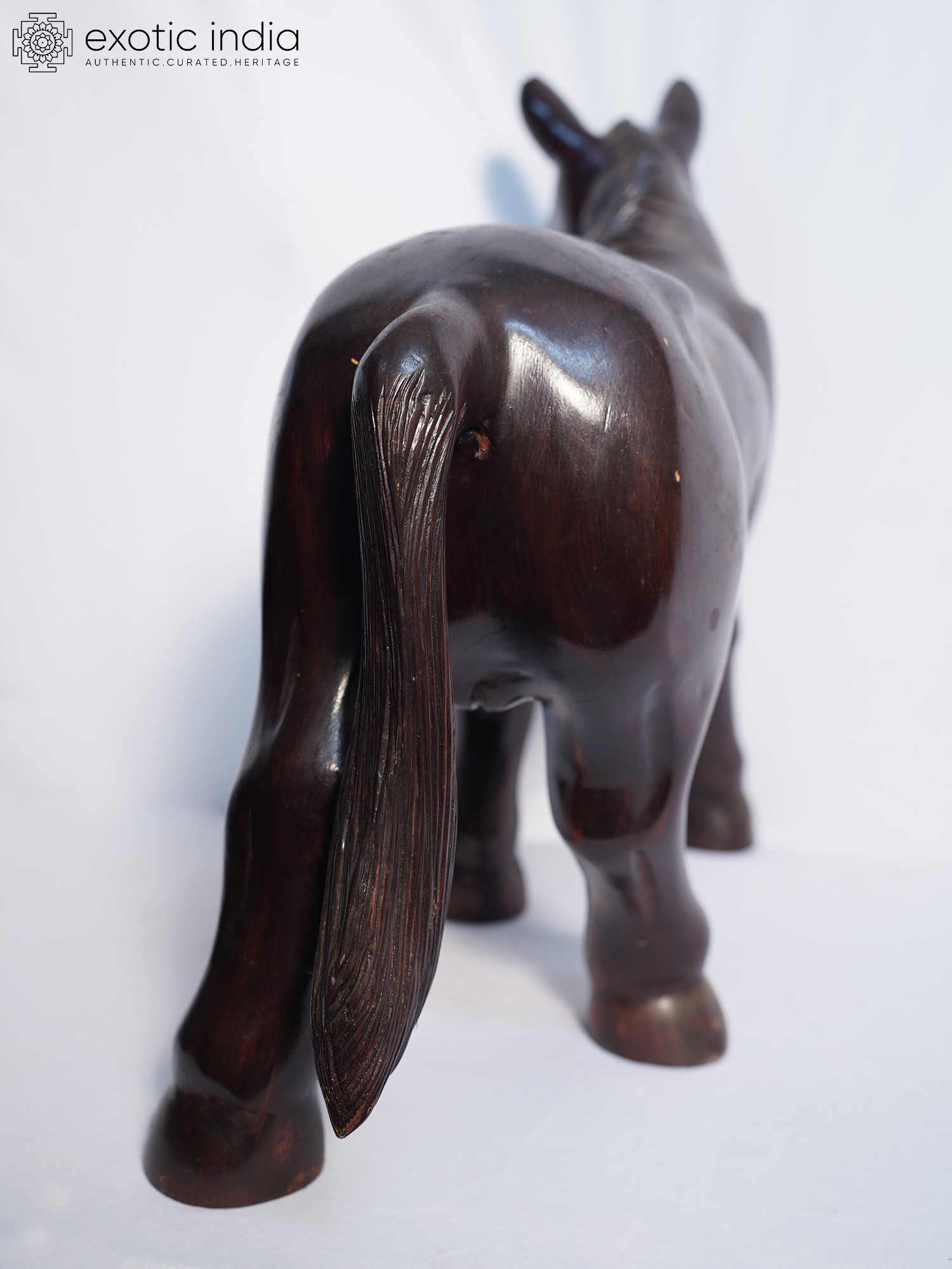 More than a mere decorative object, this exquisitely carved horse figurine captures the essence of equine beauty and power. The rich, deep tones of the rosewood lend an air of sophistication and timelessness to this stunning piece. The horse stands poised, capturing a moment of forward motion, with its head held high and its body radiating a quiet strength. Its confident stance reflects a spirit of freedom and determination. Every curve and contour, from the delicate shaping of its ears to the powerful musculature of its legs, has been rendered with painstaking detail. This is a piece that commands attention and invites admiration, a tribute to the majestic spirit of the horse.